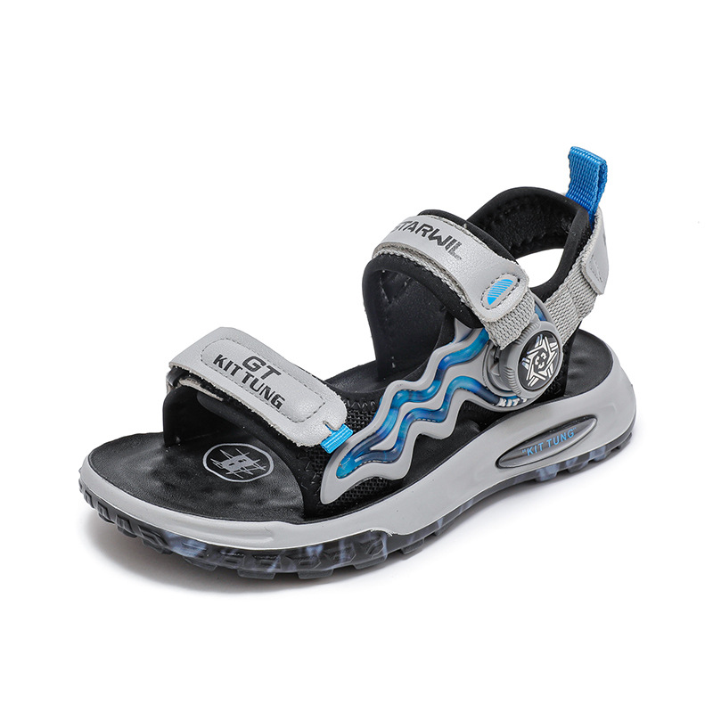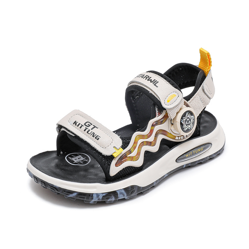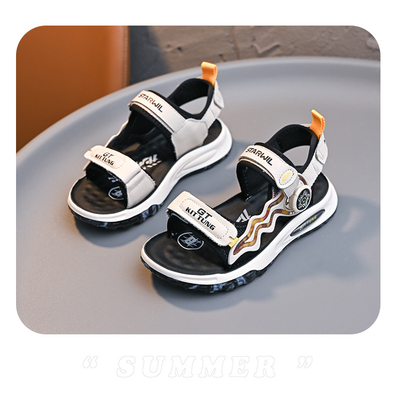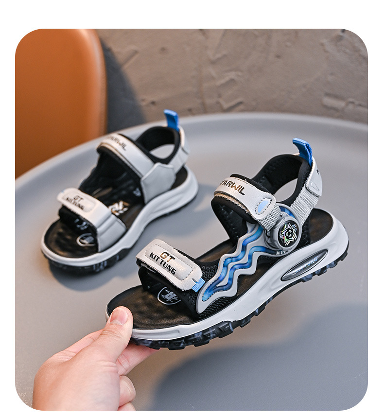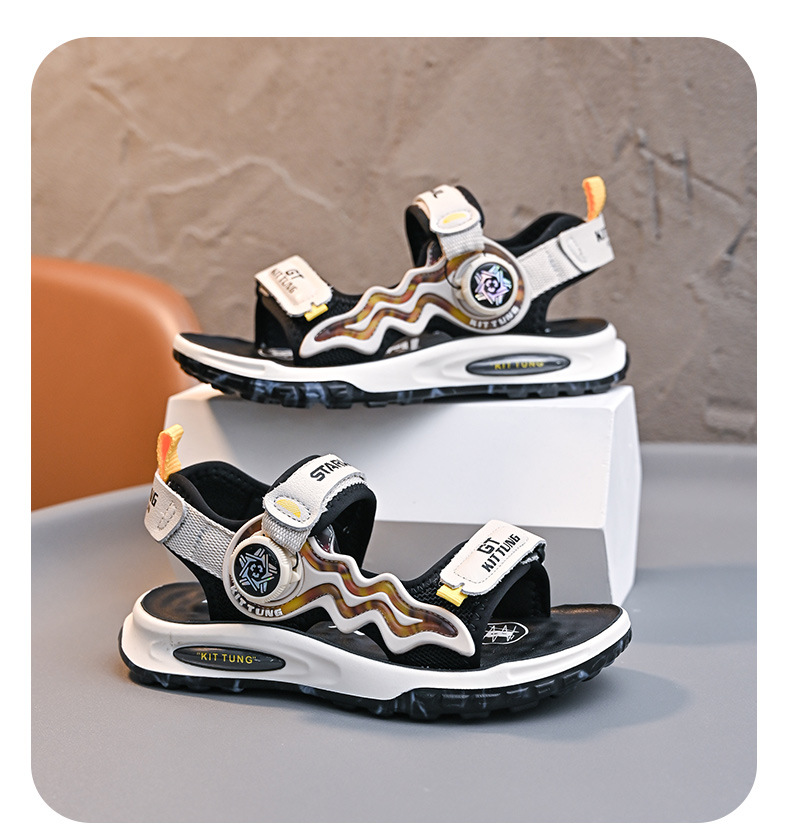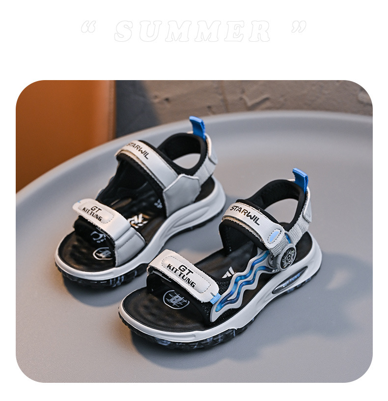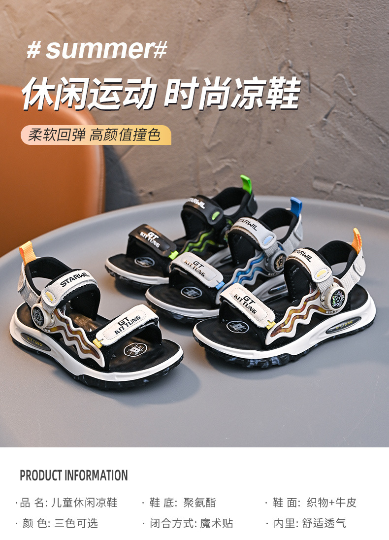 소년 샌들 2024 여름 새로운 패션 한국 스타일 어린이 신발 미디어와 큰 어린이 소년 정품 가죽 비치 슈즈 패션스토어 가기