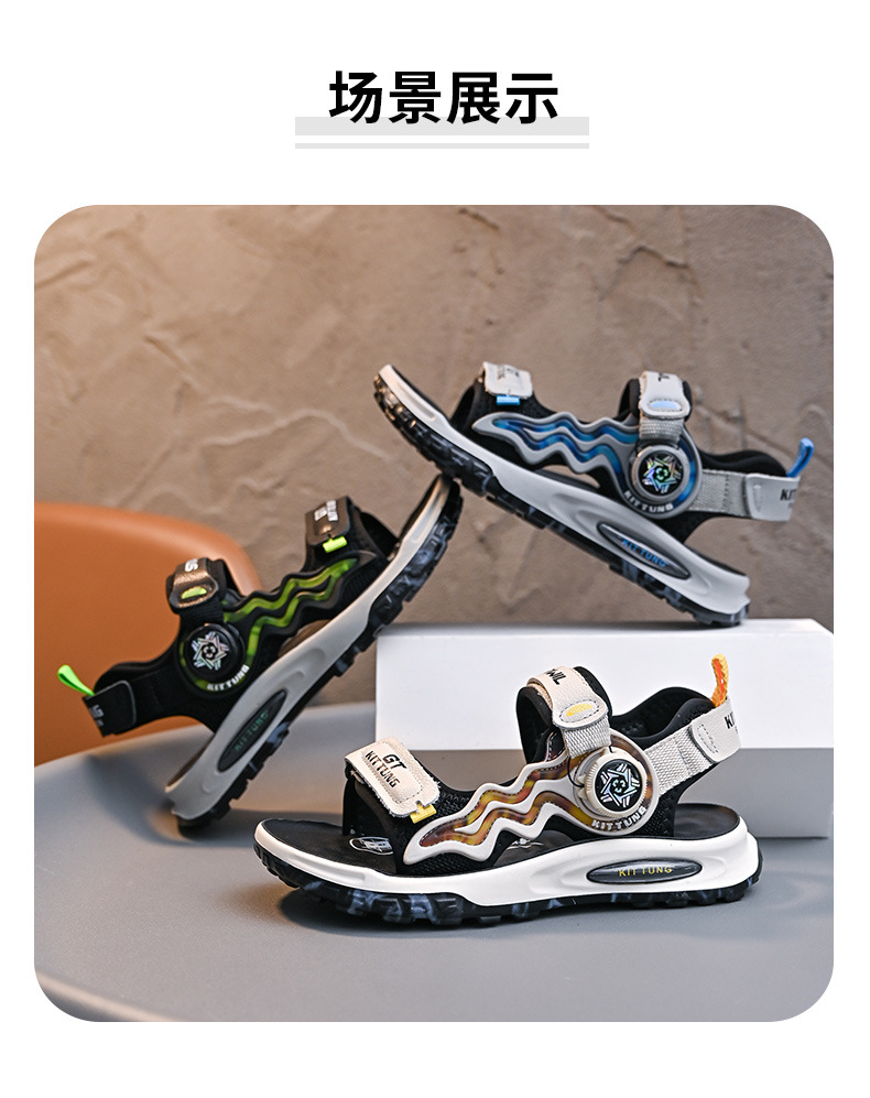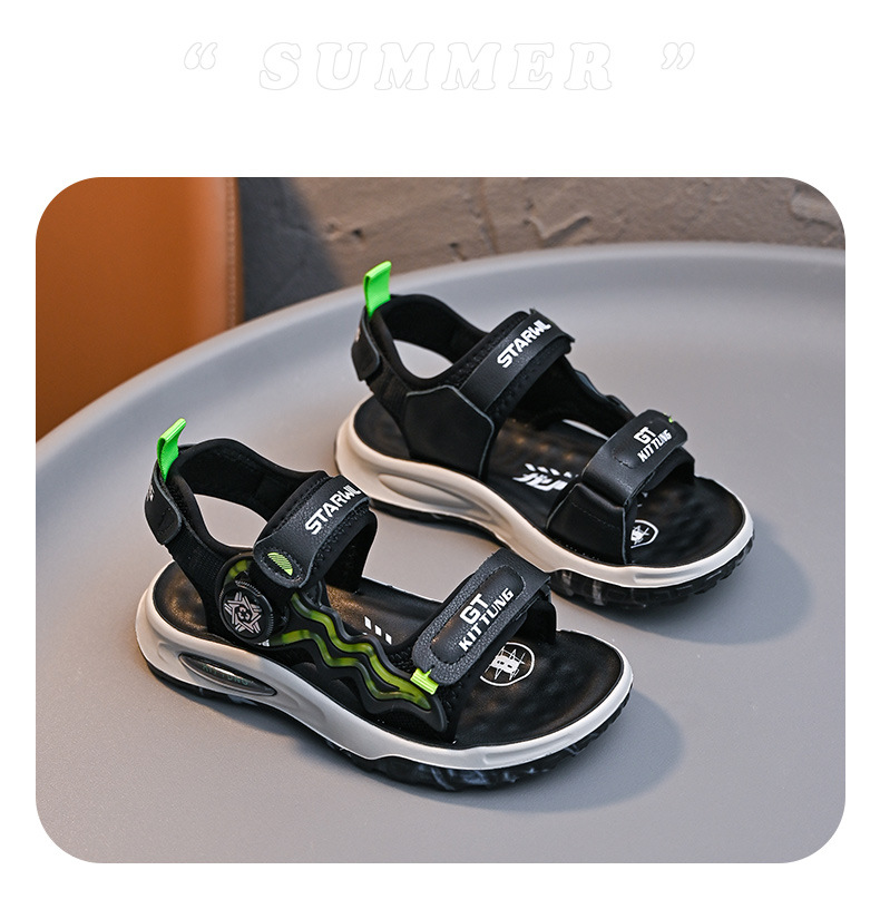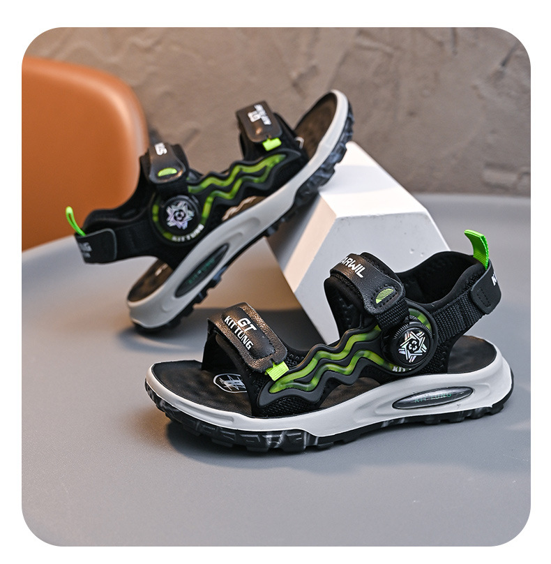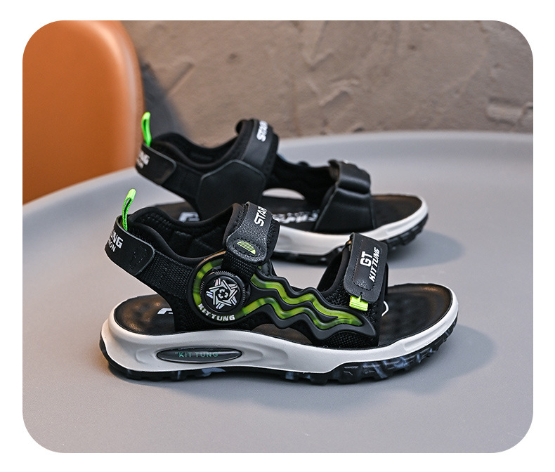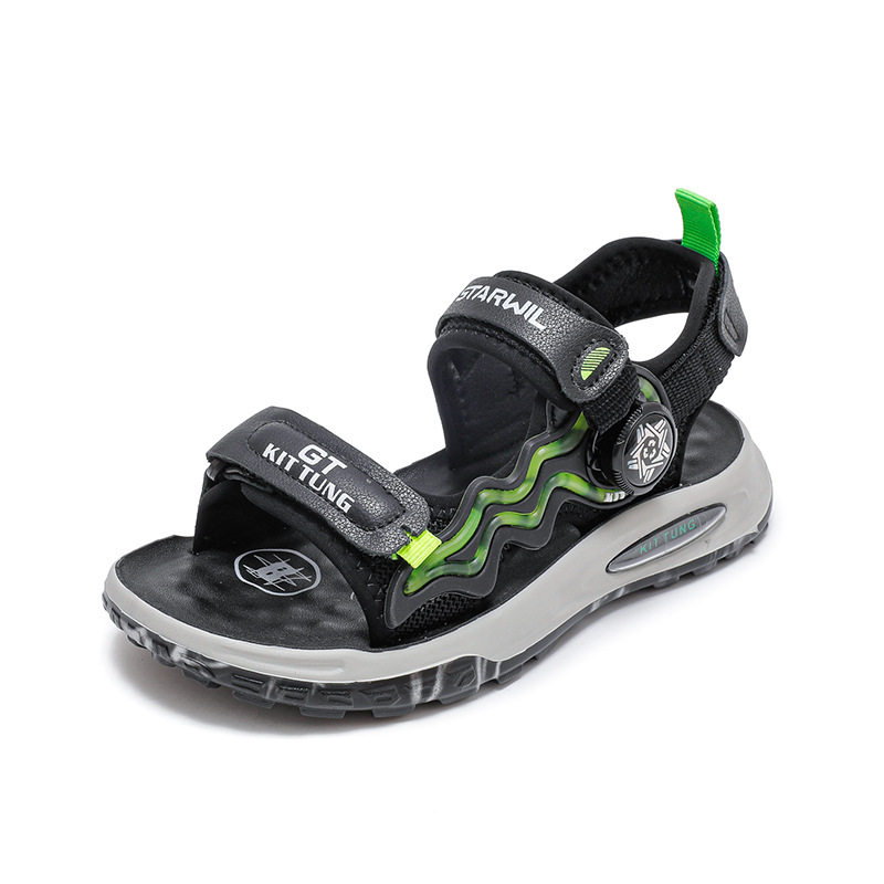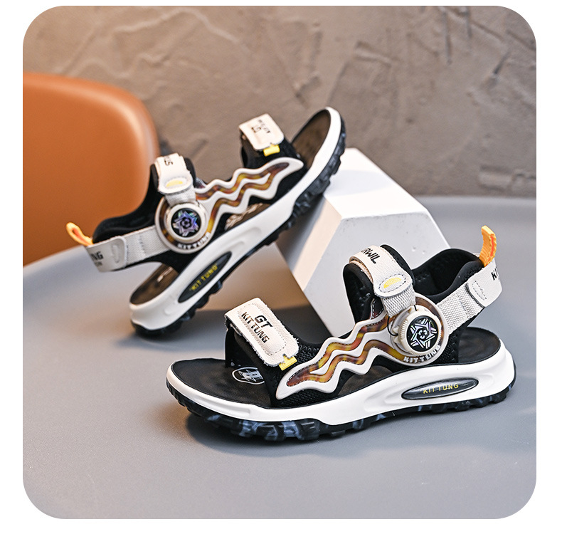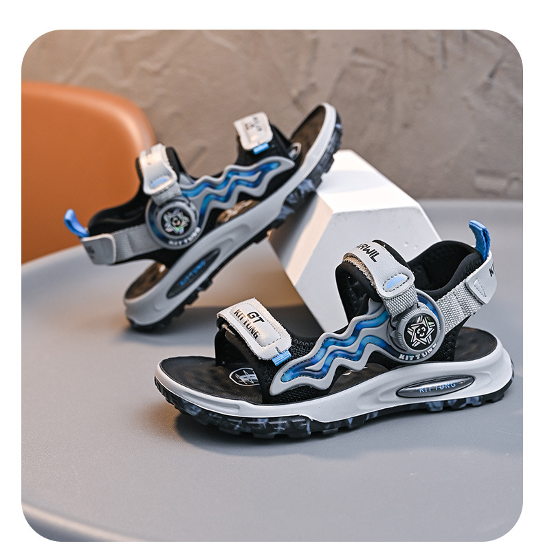 소년 샌들 2024 여름 새로운 패션 한국 스타일 어린이 신발 미디어와 큰 어린이 소년 정품 가죽 비치 슈즈 패션스토어 가기