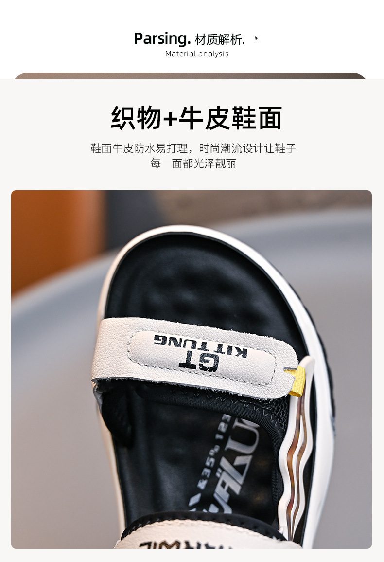 소년 샌들 2024 여름 새로운 패션 한국 스타일 어린이 신발 미디어와 큰 어린이 소년 정품 가죽 비치 슈즈 패션