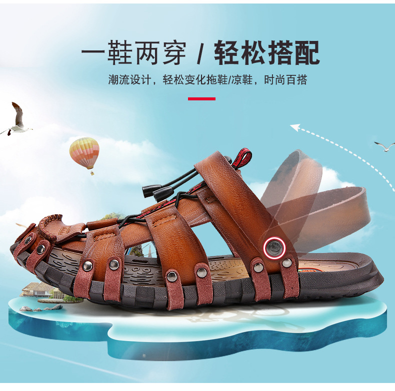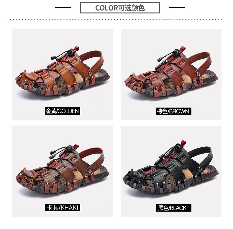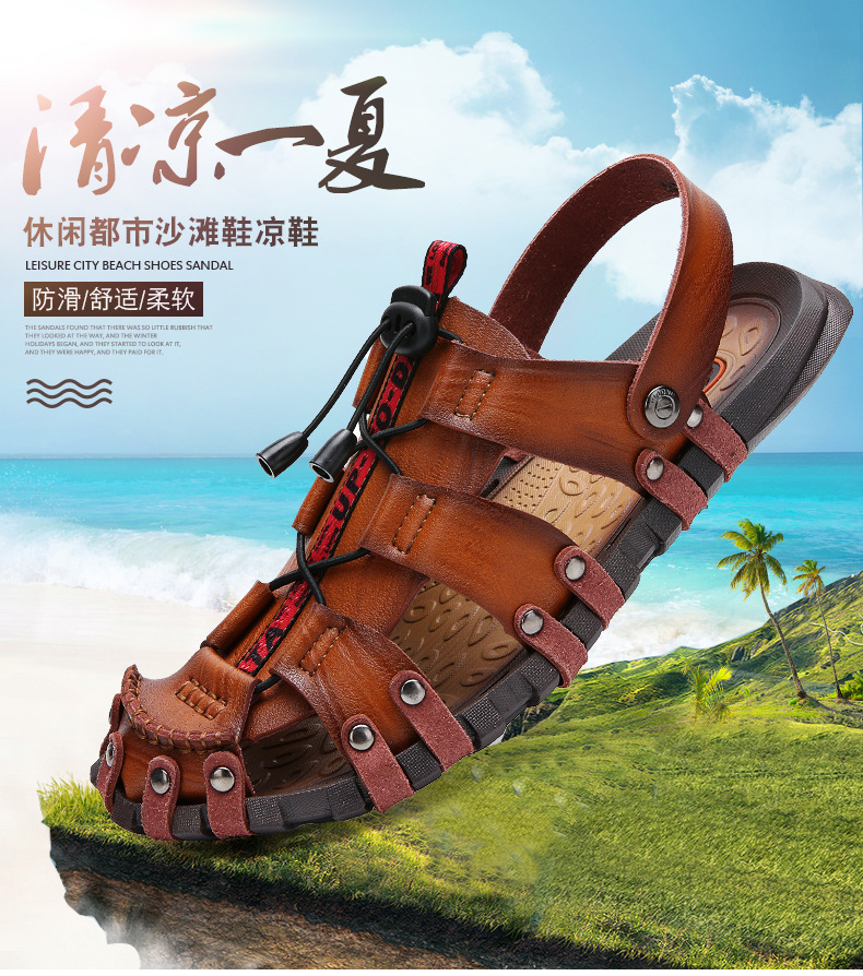 여름 남성 샌들 대외 무역 플러스 사이즈 통기성 샌들 복고풍 국경 남성 가죽 샌들 야외 남성 비치 샌들스토어 가기