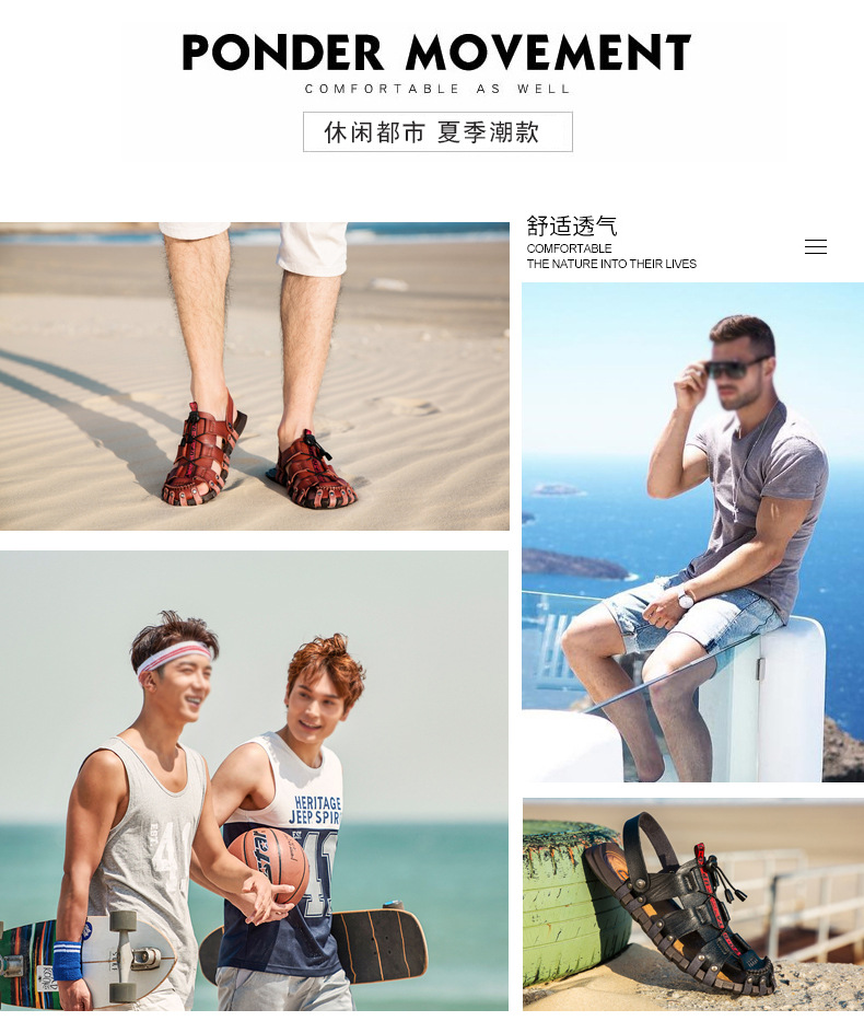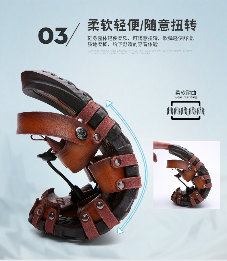 여름 남성 샌들 대외 무역 플러스 사이즈 통기성 샌들 복고풍 국경 남성 가죽 샌들 야외 남성 비치 샌들