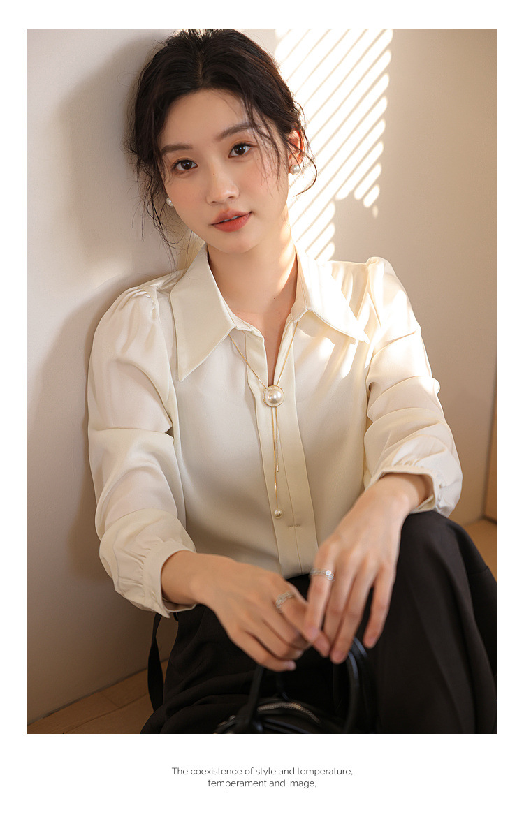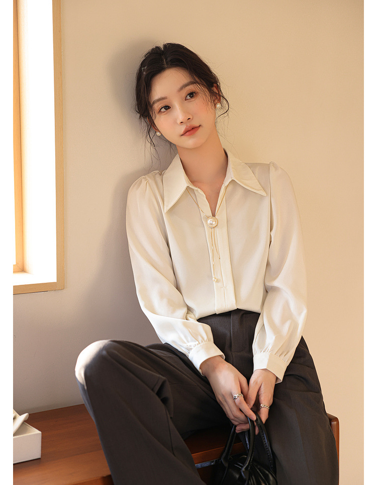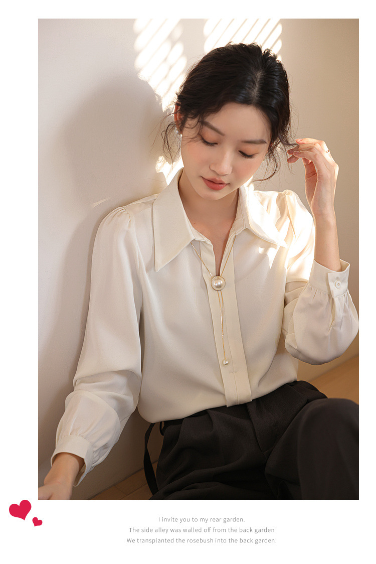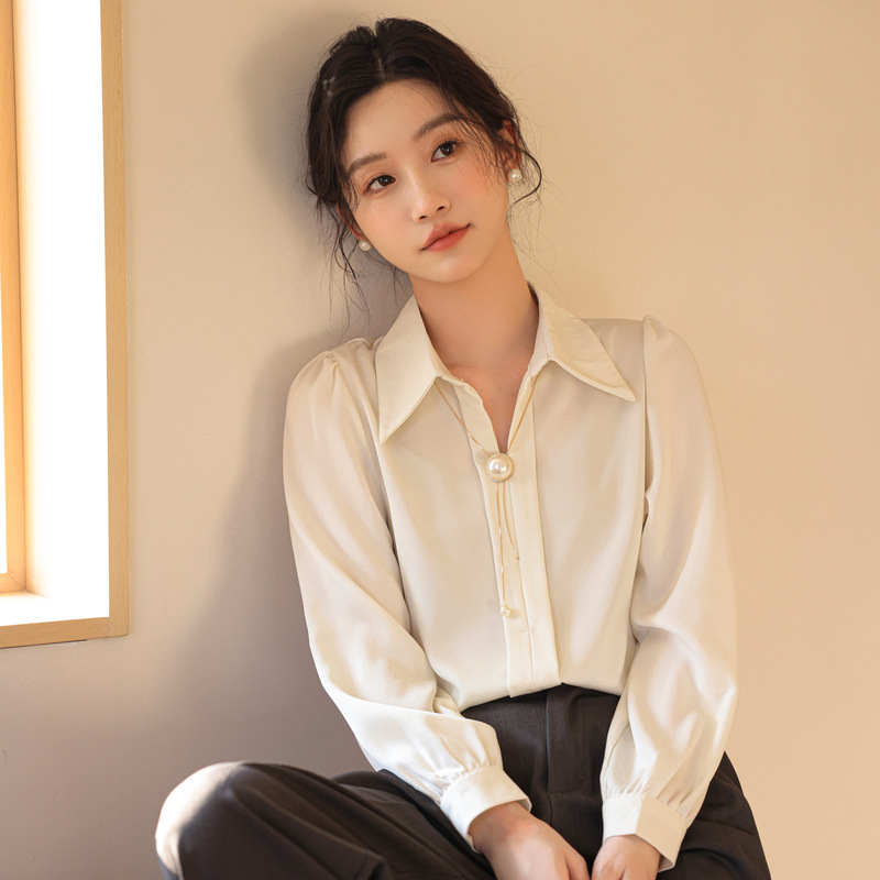 여성을위한 프랑스 쉬폰 긴팔 셔츠 이른 봄 새로운 디자인 감각 틈새 전문 통근 기질 셔츠 도매스토어 가기