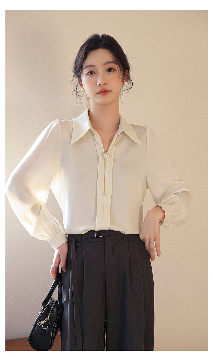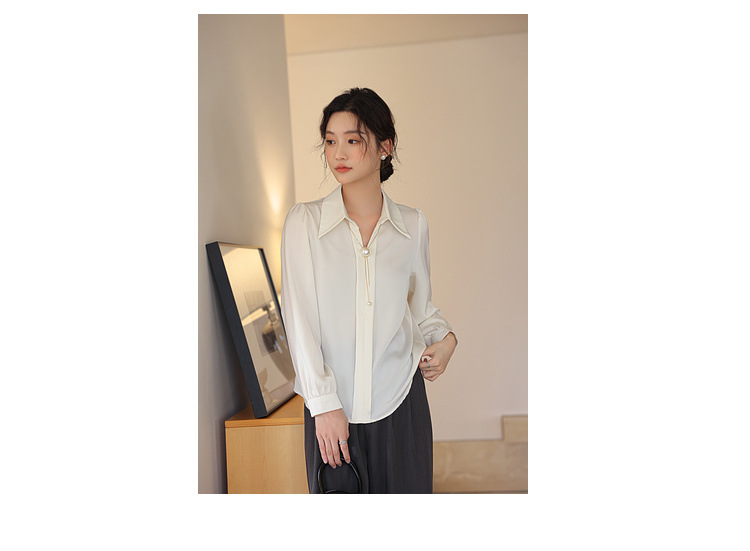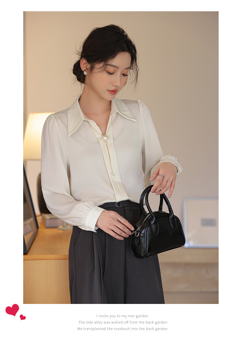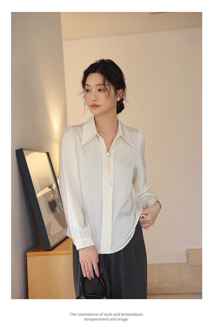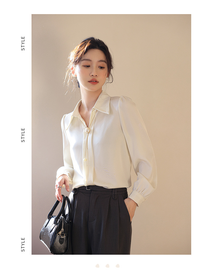 여성을위한 프랑스 쉬폰 긴팔 셔츠 이른 봄 새로운 디자인 감각 틈새 전문 통근 기질 셔츠 도매스토어 가기