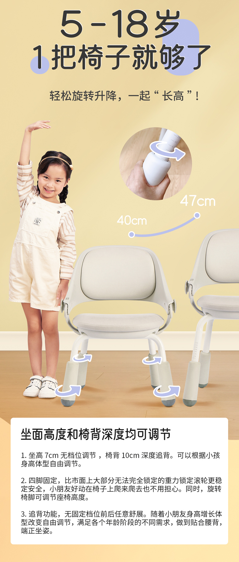 Enrong Tianyue 어린이 학습 의자 쓰기 홈 교정 자세 조정 가능한 리프팅 등받이 책상 좌석 Shen Heng