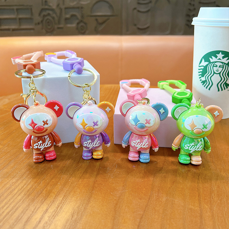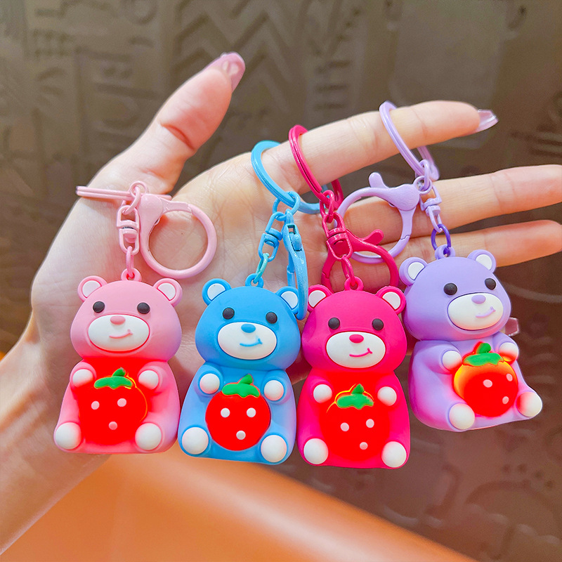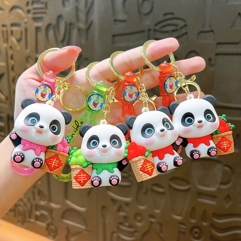 창조적 인 행운 팬더 밤 가벼운 키 체인 귀여운 빛나는 인형 열쇠 고리 가방 펜던트 작은 선물 도매