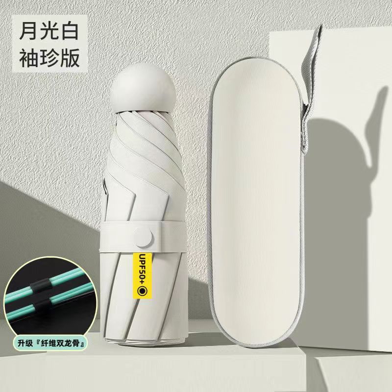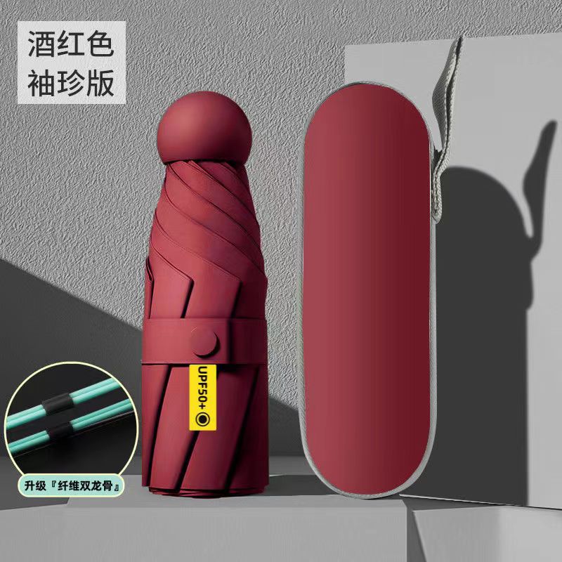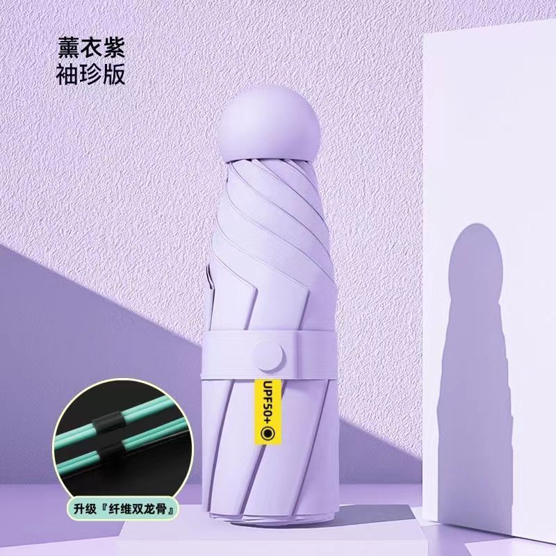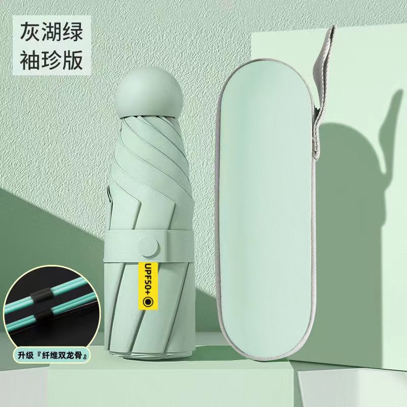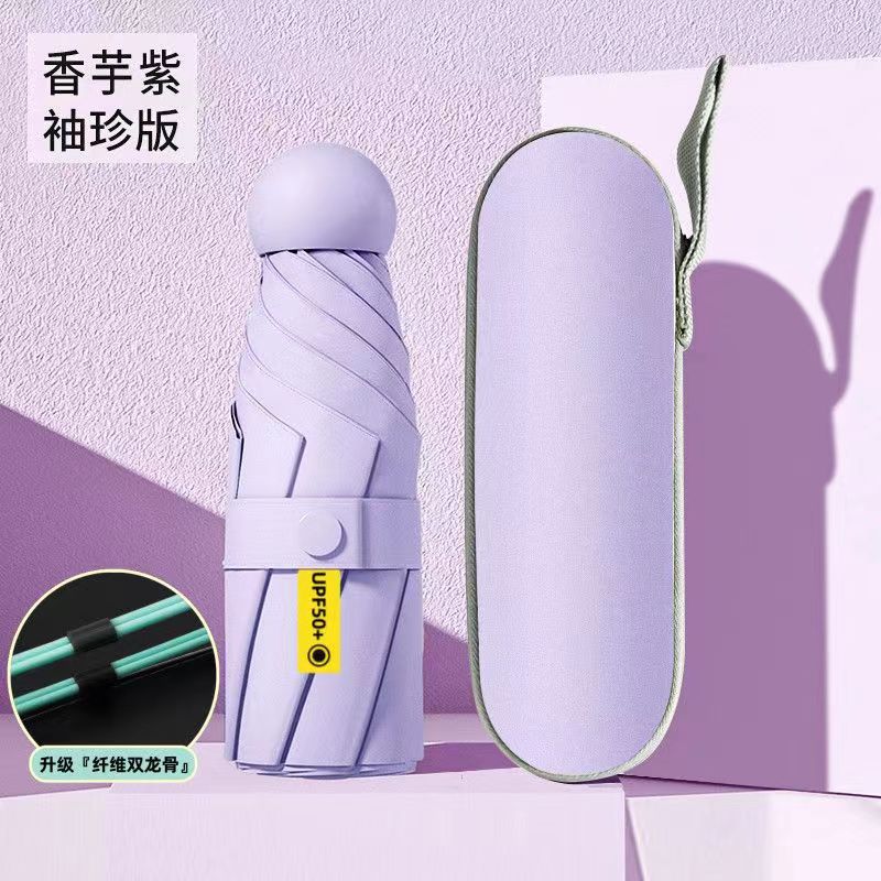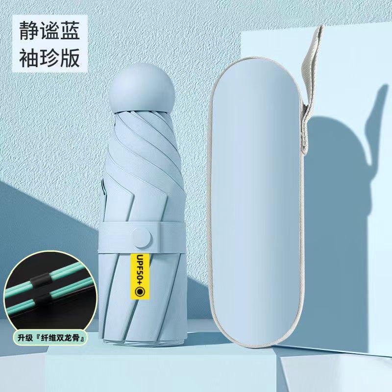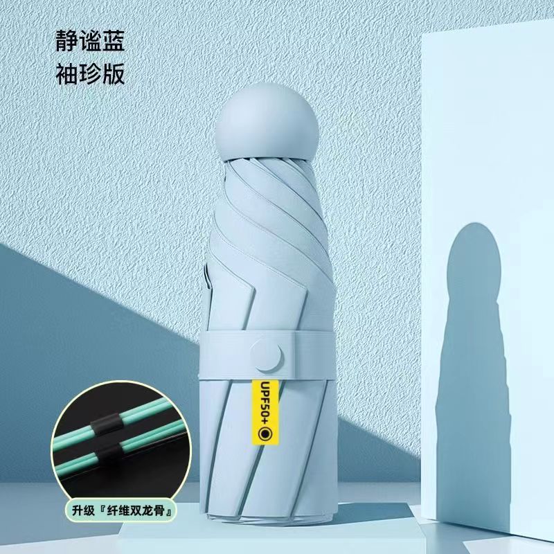 5 배 우산 이중 사용 단단한 학생 태양 우산 여성 태양 보호 UV 보호 미니 작은 캡슐 태양 우산