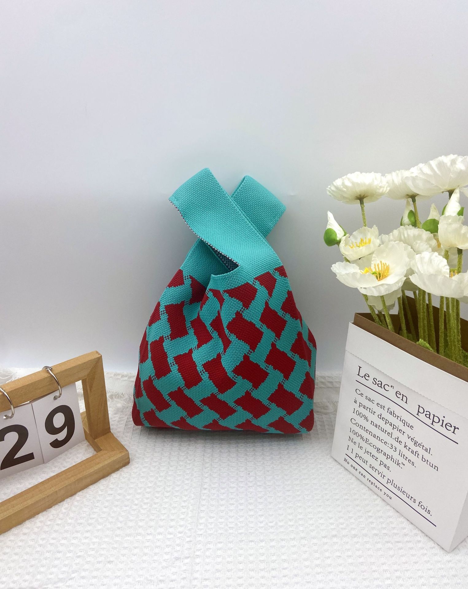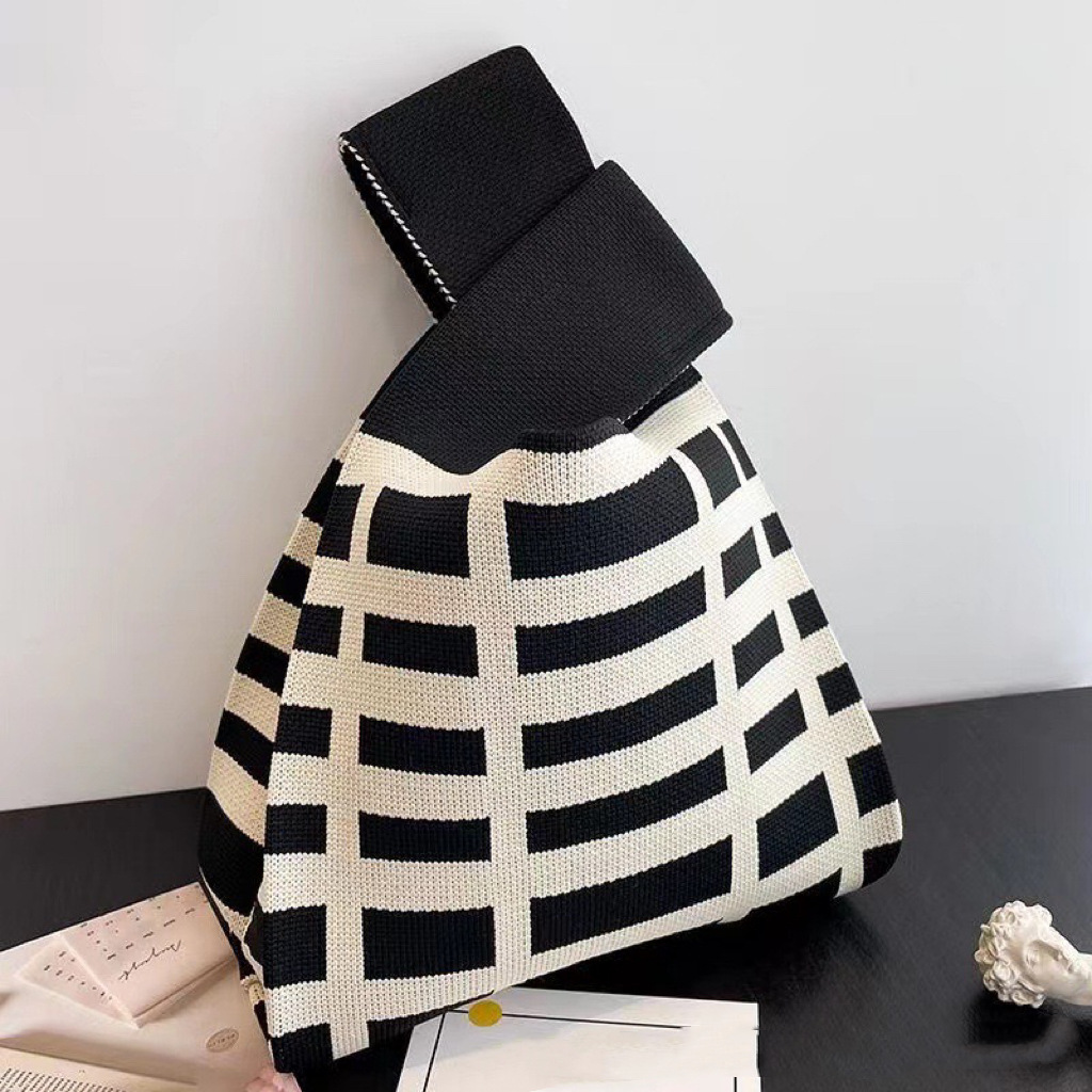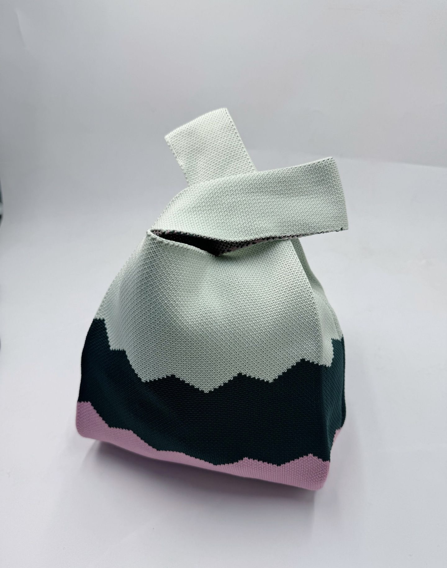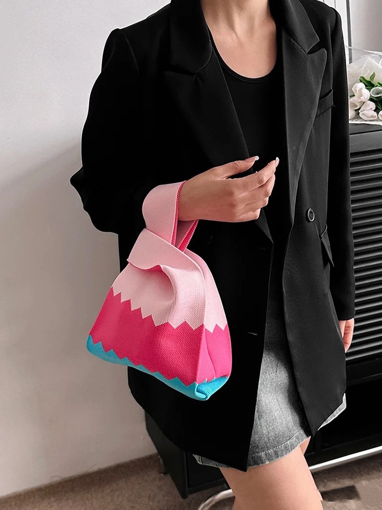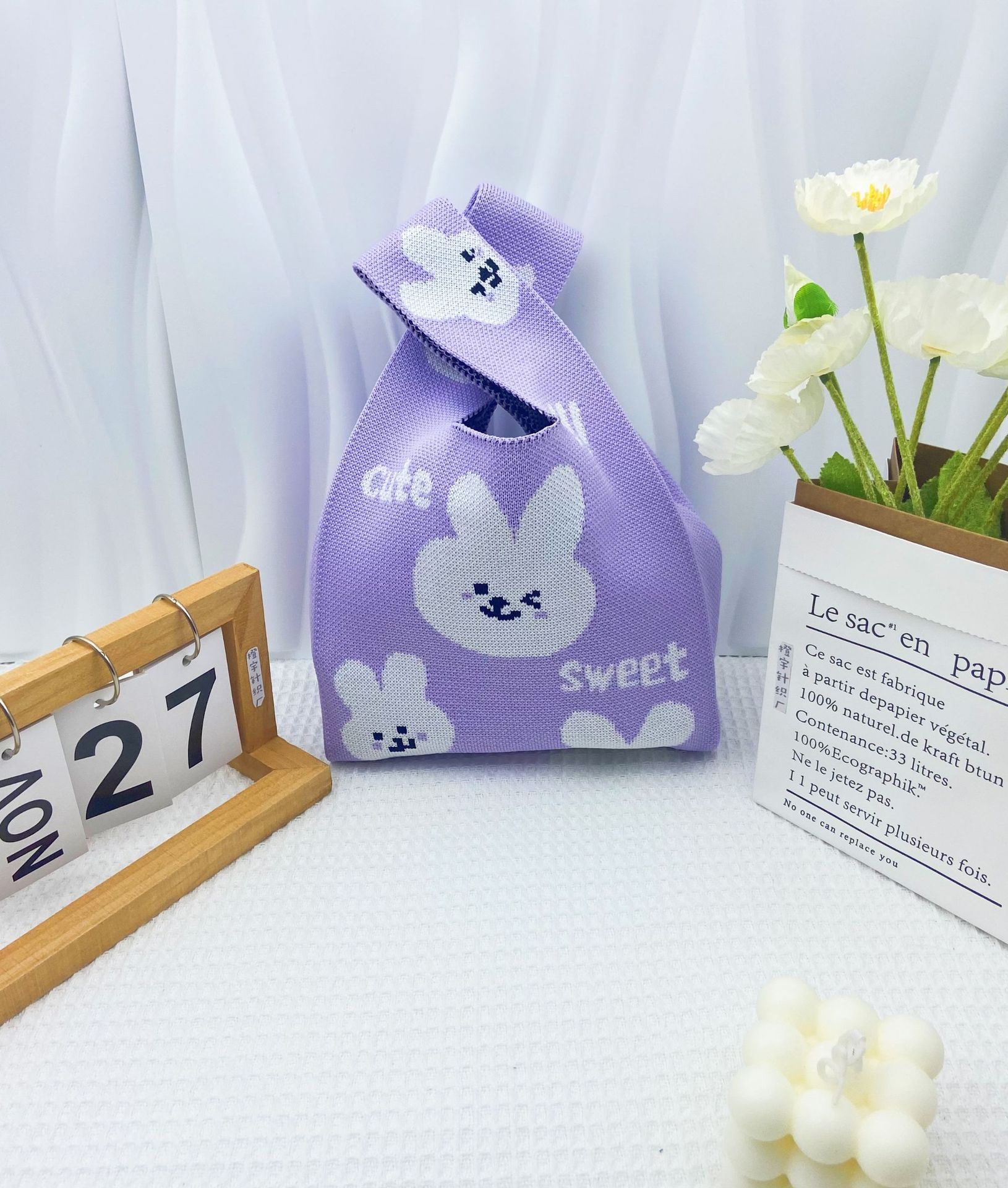 레인보우 웨이브 & 문 토끼 니트 백 핸드백 외출 선물 핸드 백 휴대용 패션 작업 손목 가방스토어 가기