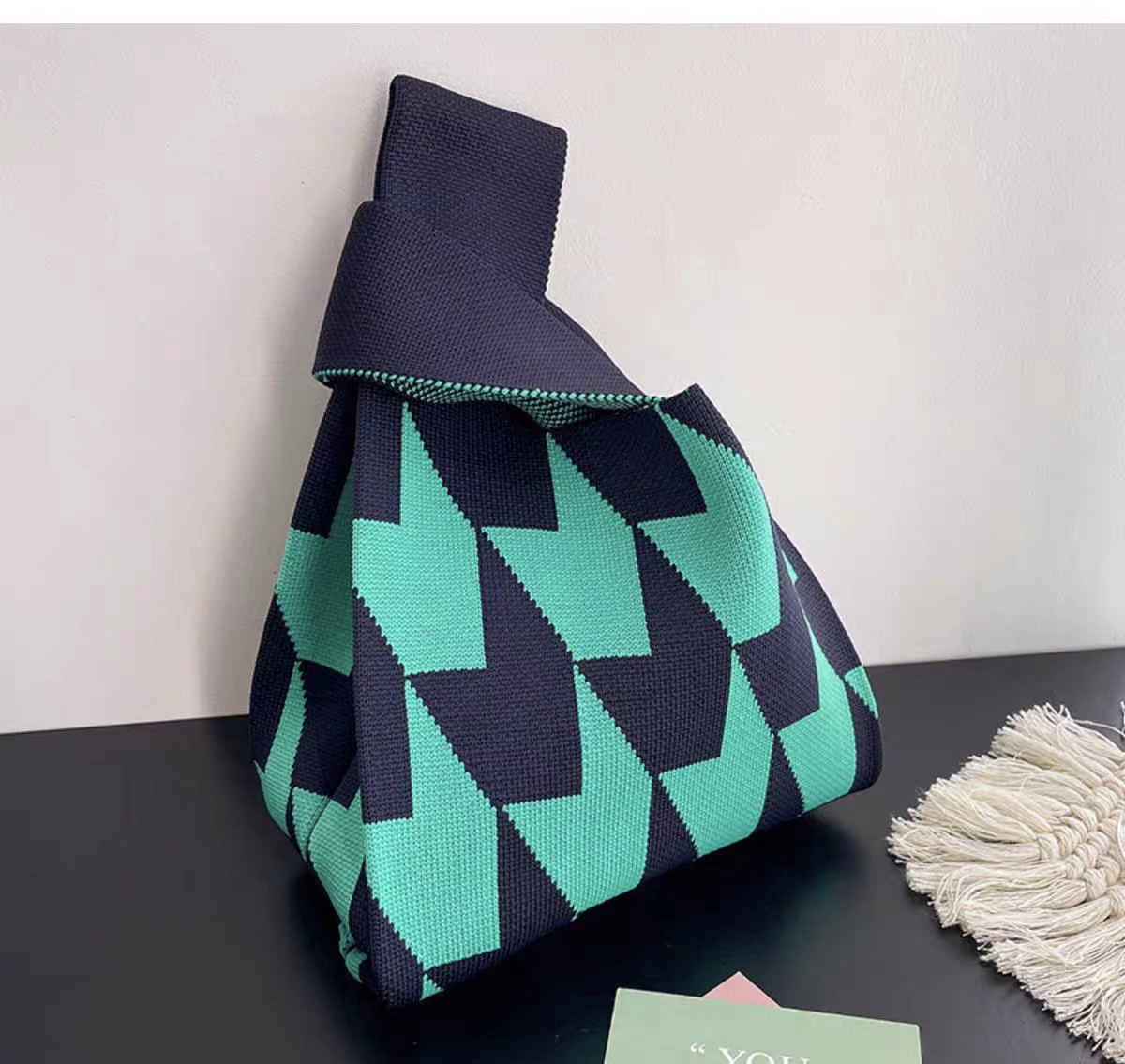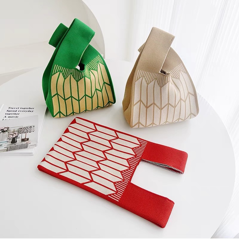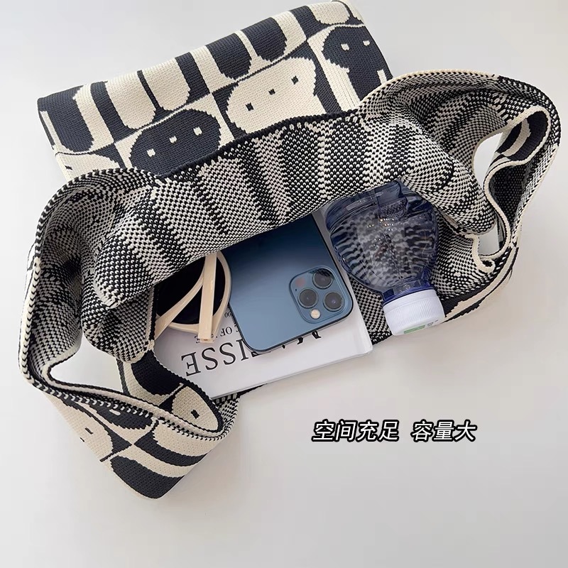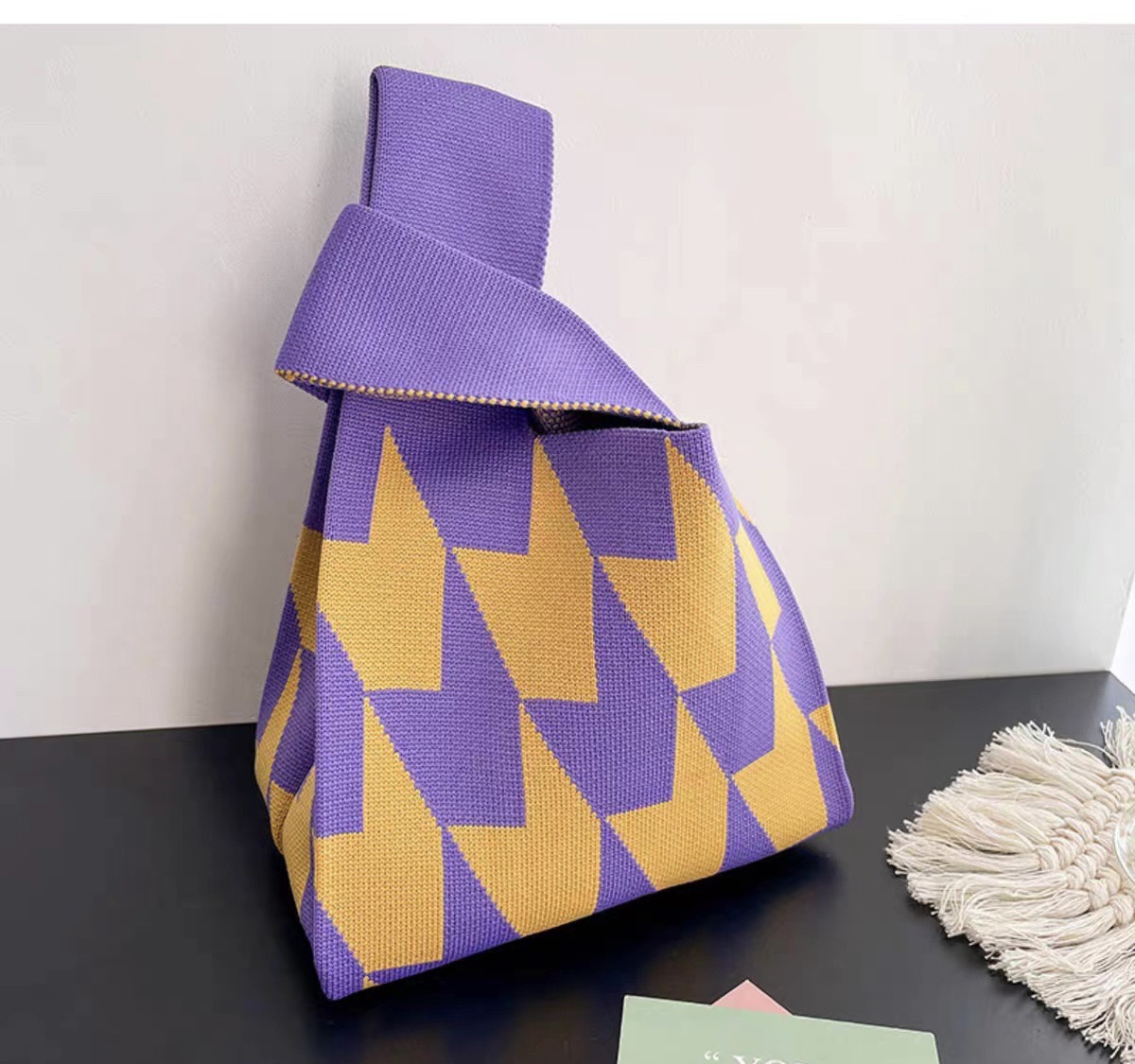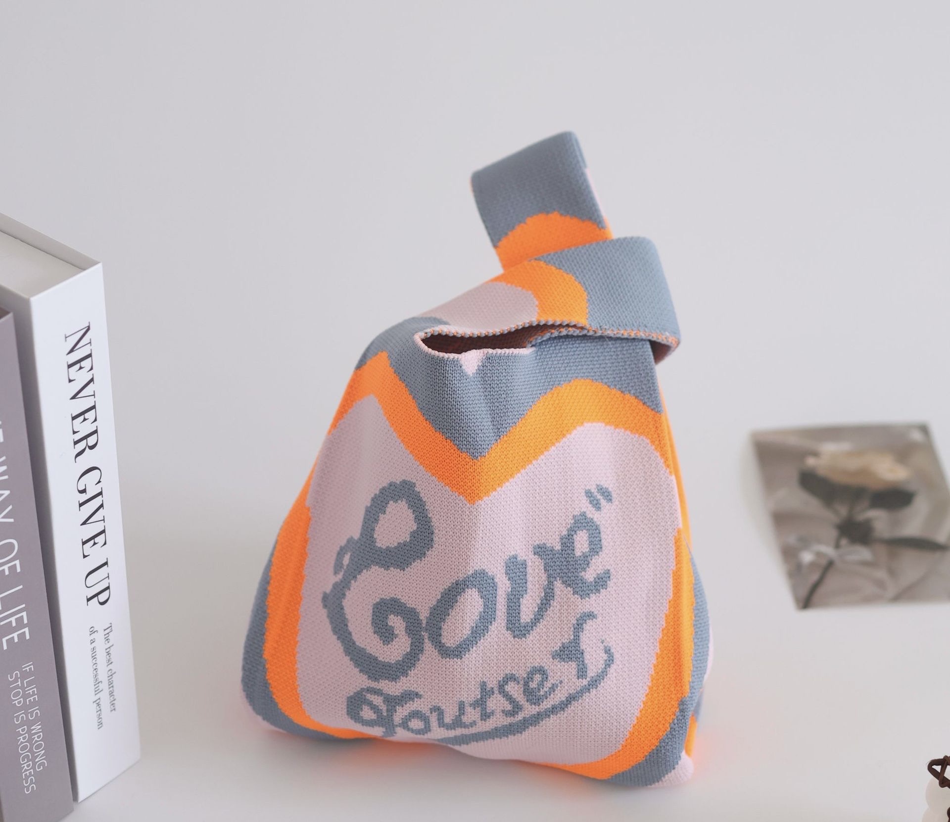 레인보우 웨이브 & 문 토끼 니트 백 핸드백 외출 선물 핸드 백 휴대용 패션 작업 손목 가방스토어 가기