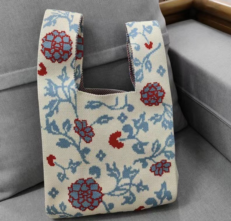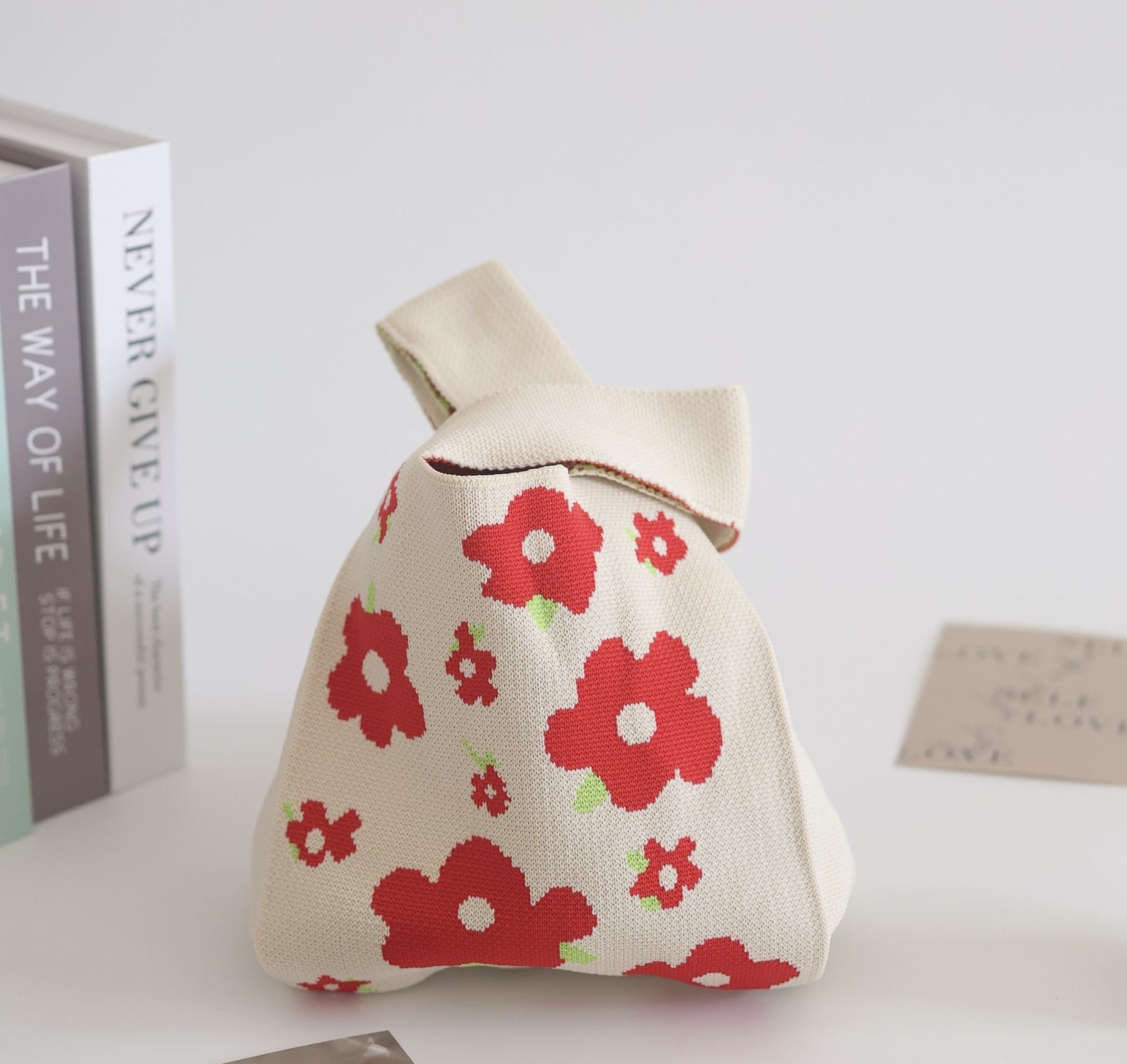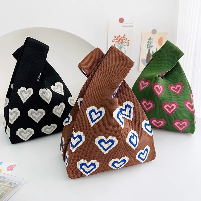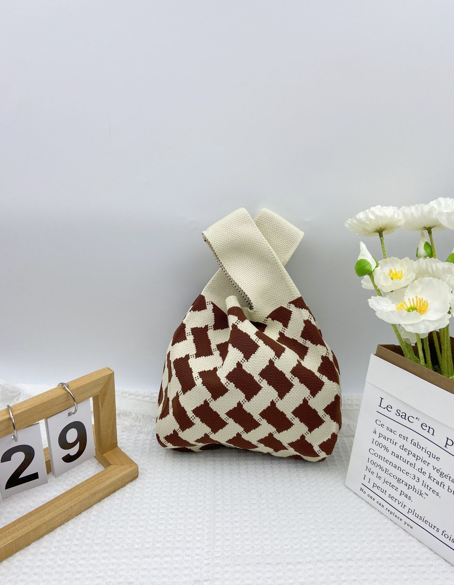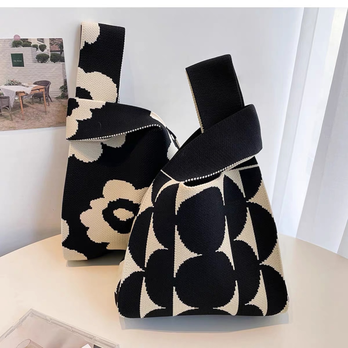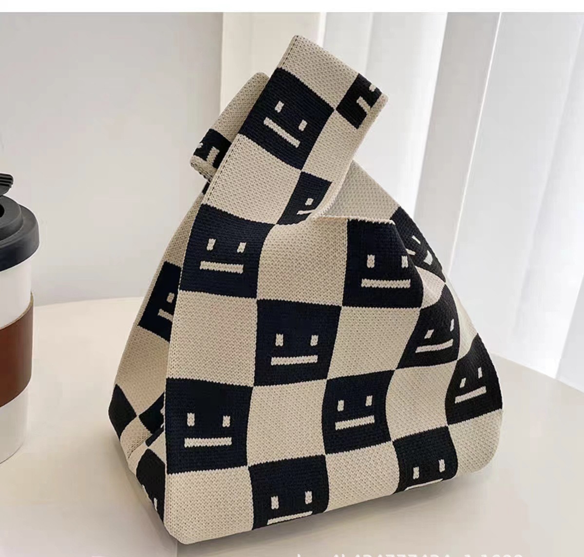 레인보우 웨이브 & 문 토끼 니트 백 핸드백 외출 선물 핸드 백 휴대용 패션 작업 손목 가방스토어 가기