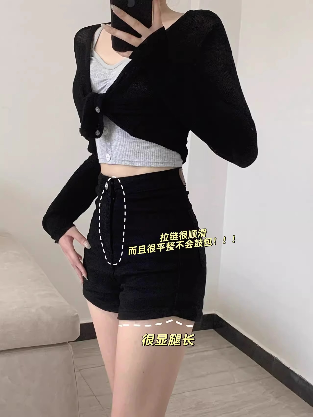 순수한 욕망 스타일 검은 스트레치 데님 반바지 핫 팬츠 뜨거운 소녀 A 라인 하이 허리 슬리밍 스포츠 댄스 레깅스 아우터 웨어