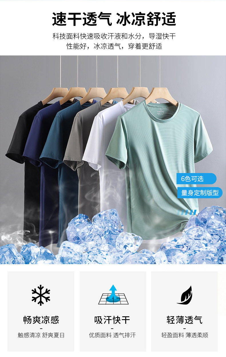 남성용 여름 아이스 실크 빠른 건조 반팔 티셔츠 남성용 플러스 사이즈 빠른 건조 옷 시원한 통기성 스포츠 캐주얼 인쇄 가능한 로고
