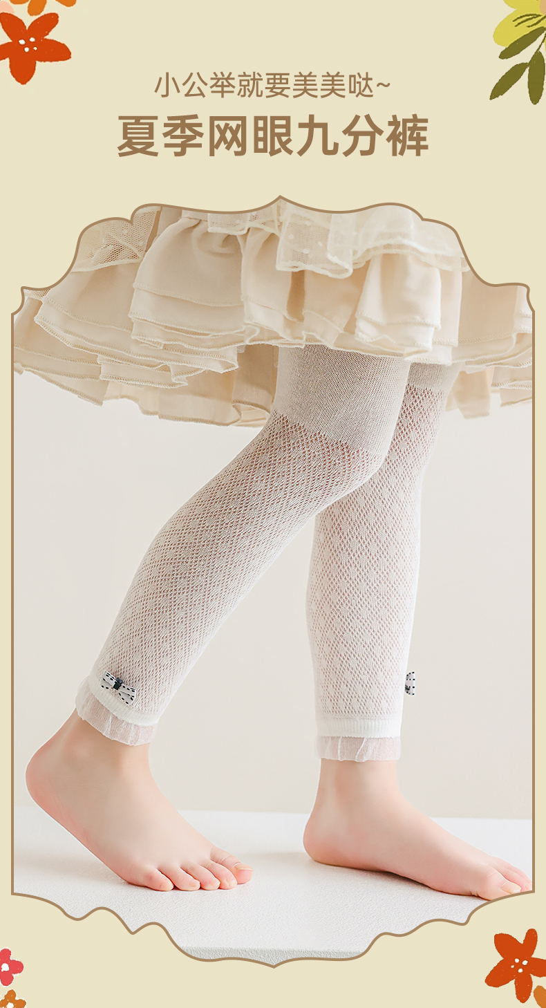 봄과 여름 새로운 소녀의 다이아몬드 메쉬 통기성 유아 레깅스 어린이 레이스 활 자른 바지