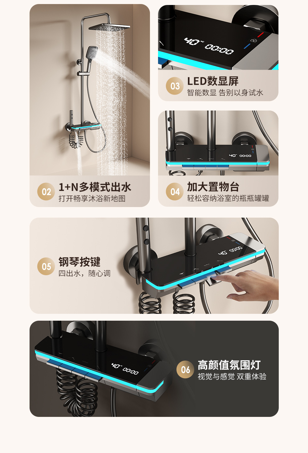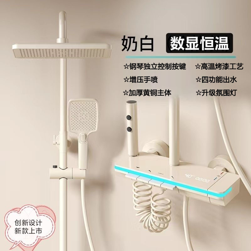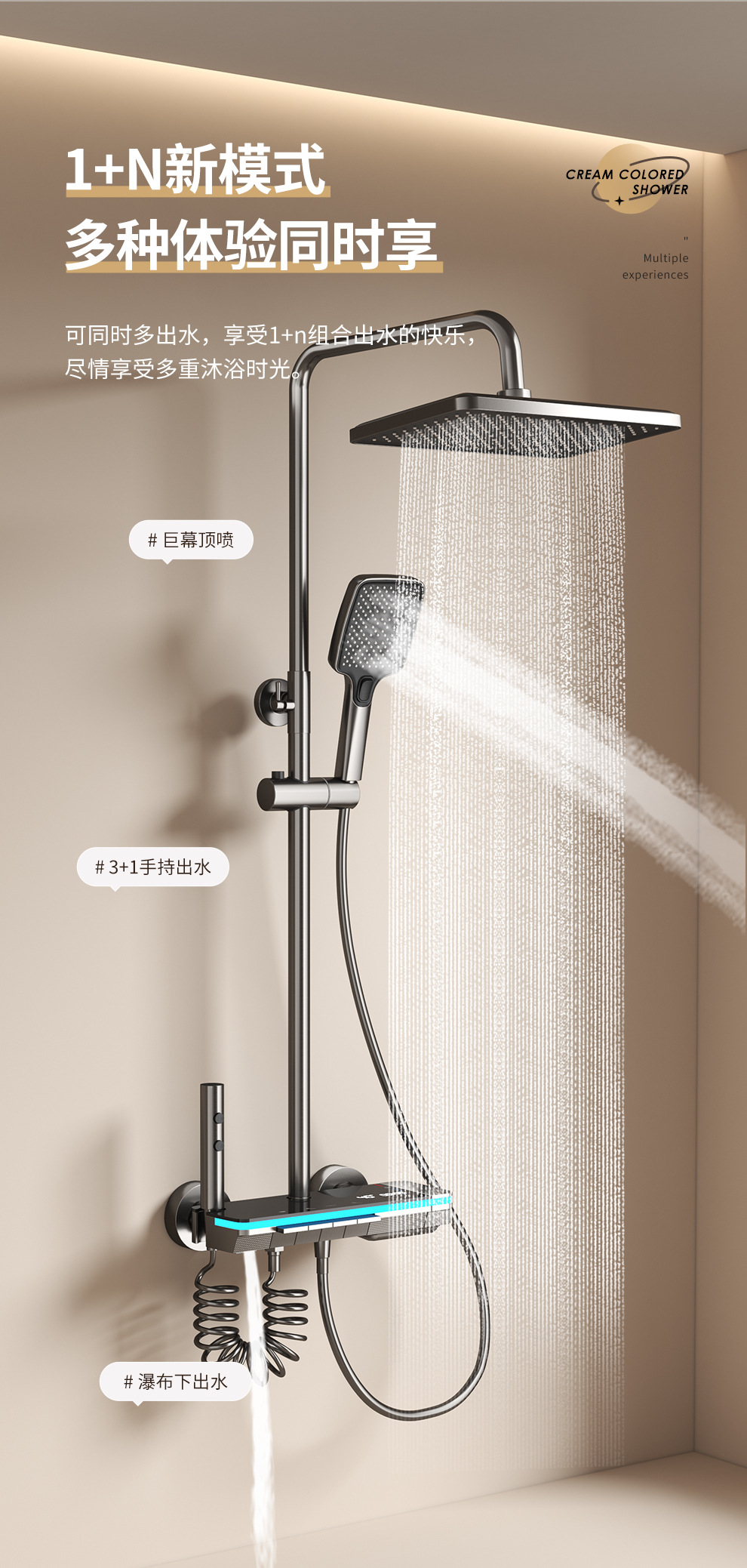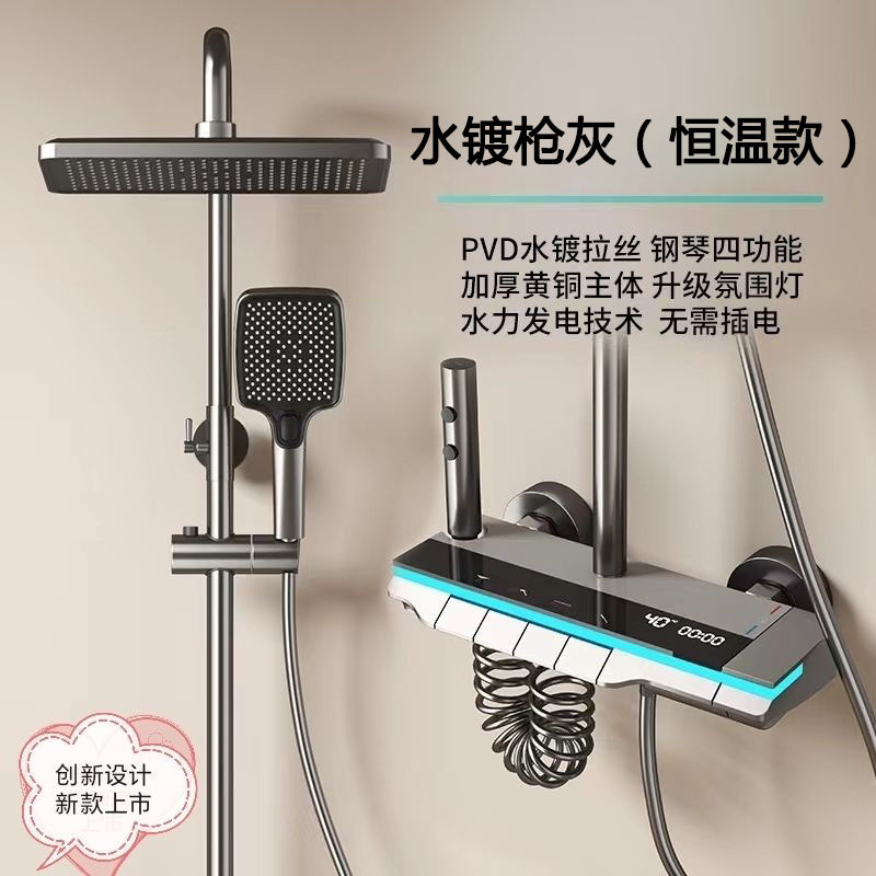 샤워 헤드 세트 건 회색 구리 샤워 헤드 가정용 일정한 온도 가압 노즐 욕실 샤워스토어 가기
