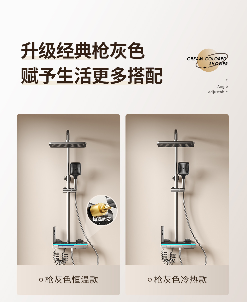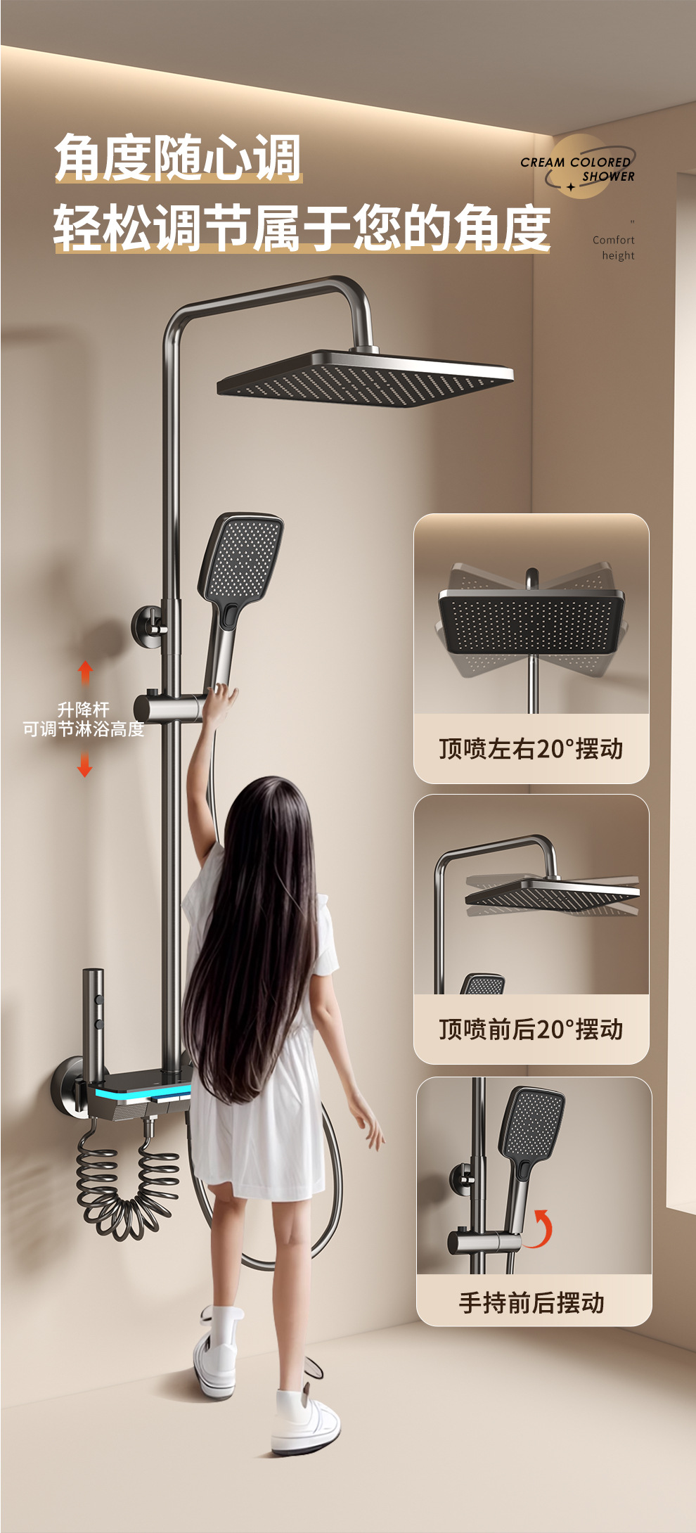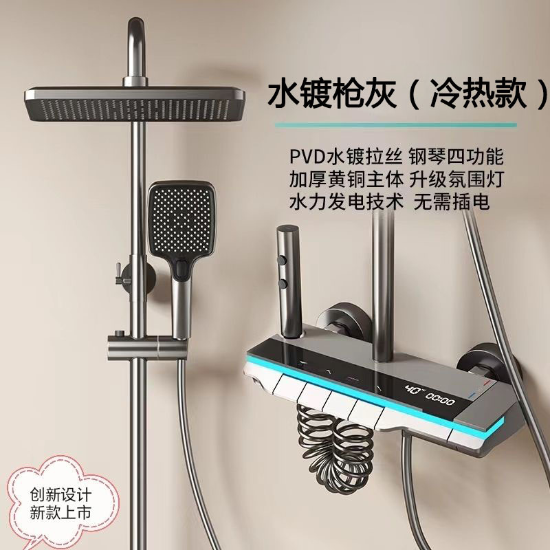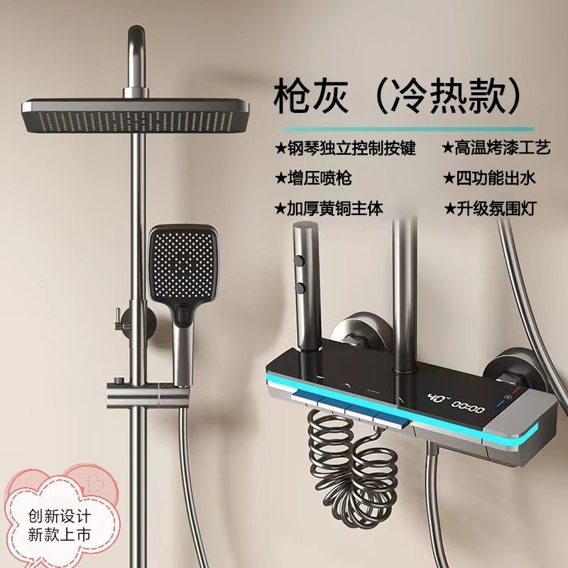 샤워 헤드 세트 건 회색 구리 샤워 헤드 가정용 일정한 온도 가압 노즐 욕실 샤워