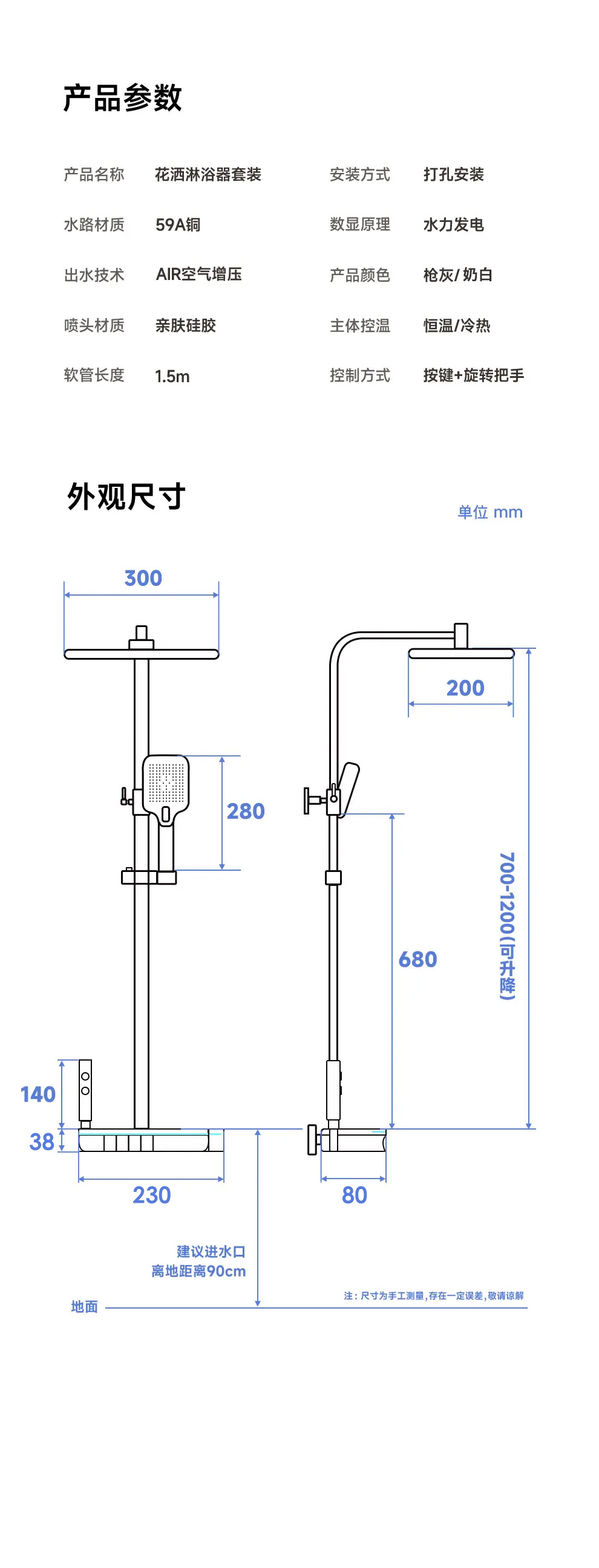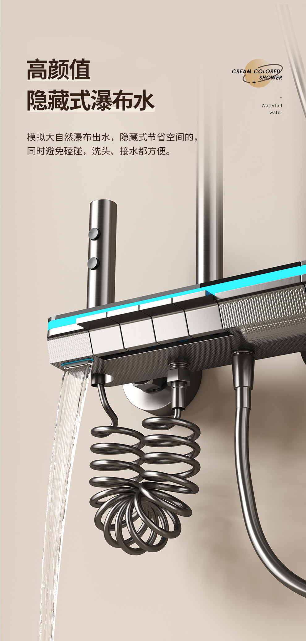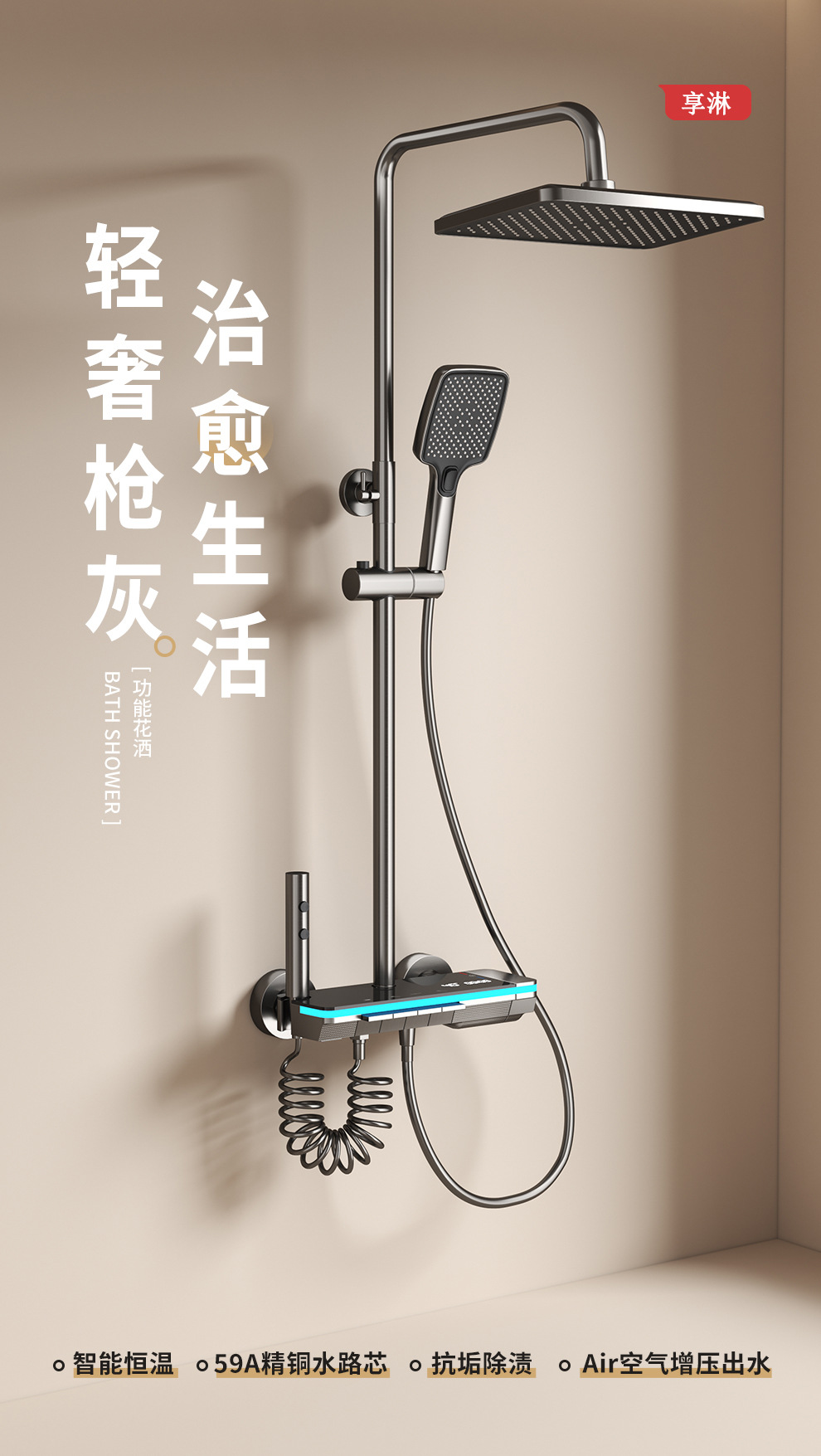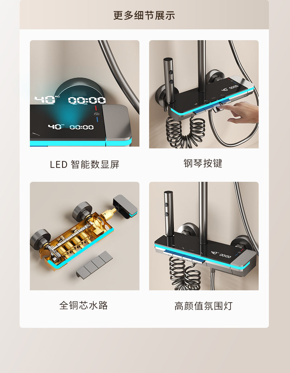 샤워 헤드 세트 건 회색 구리 샤워 헤드 가정용 일정한 온도 가압 노즐 욕실 샤워
