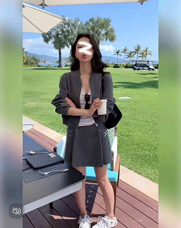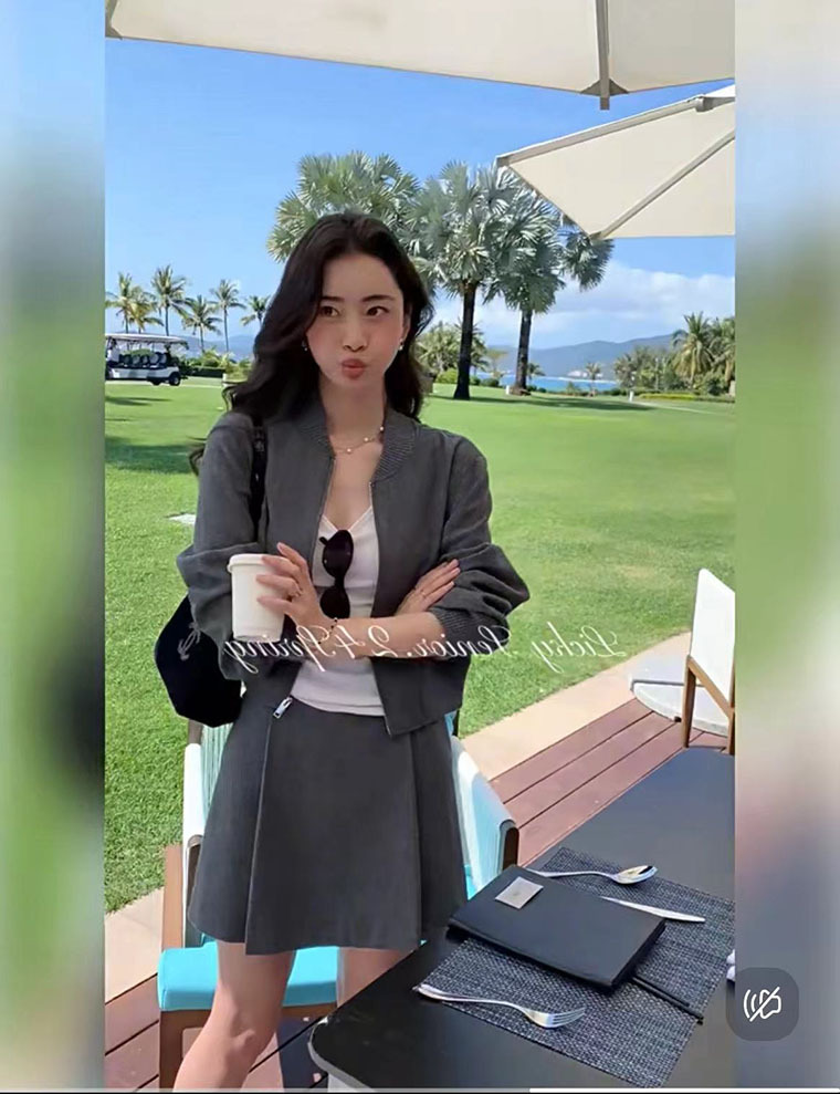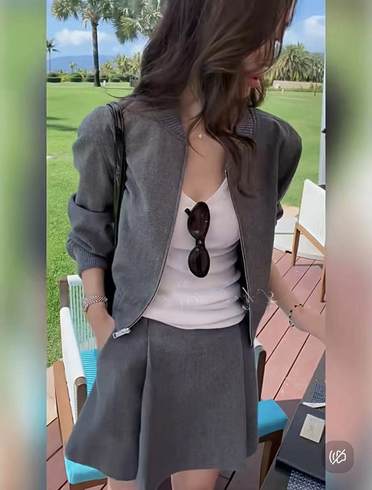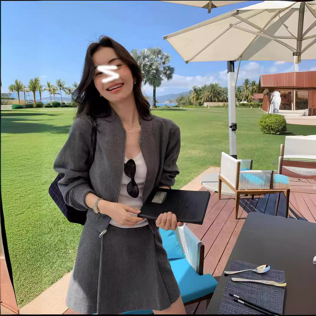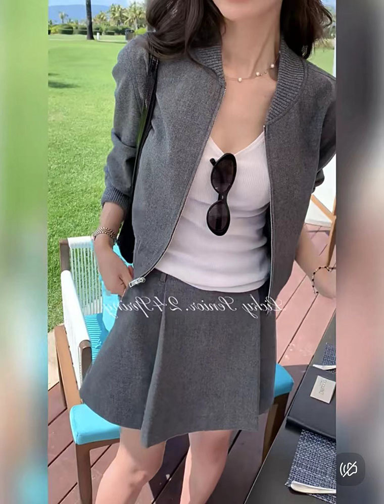 새로운 양모 여성용 세트 코트 스커트 투피스 세트 새로운 회색 모직 평면 짠 작은 코트스토어 가기