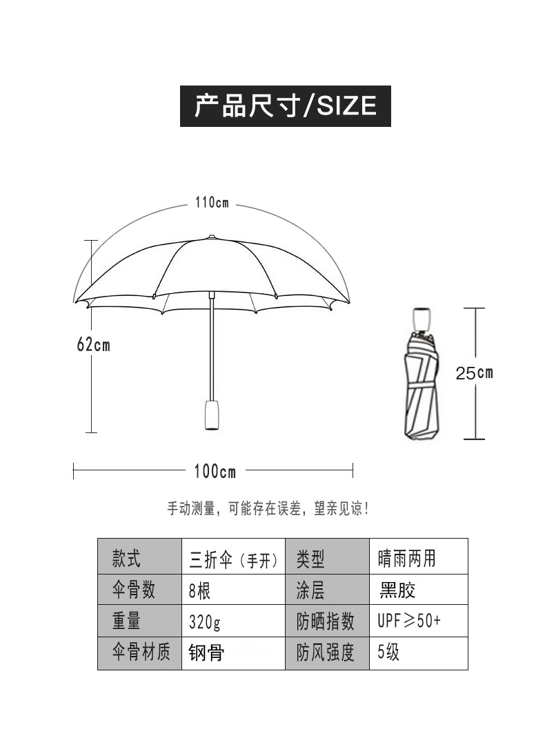 국가 스타일 더블 레이어 우산 블랙 접착제 강화 비 이중 사용 복고풍 코트 3 접이식 휴대용 신선한 학생 우산 차양