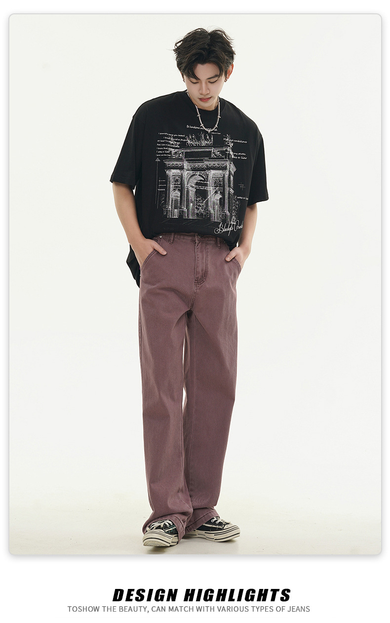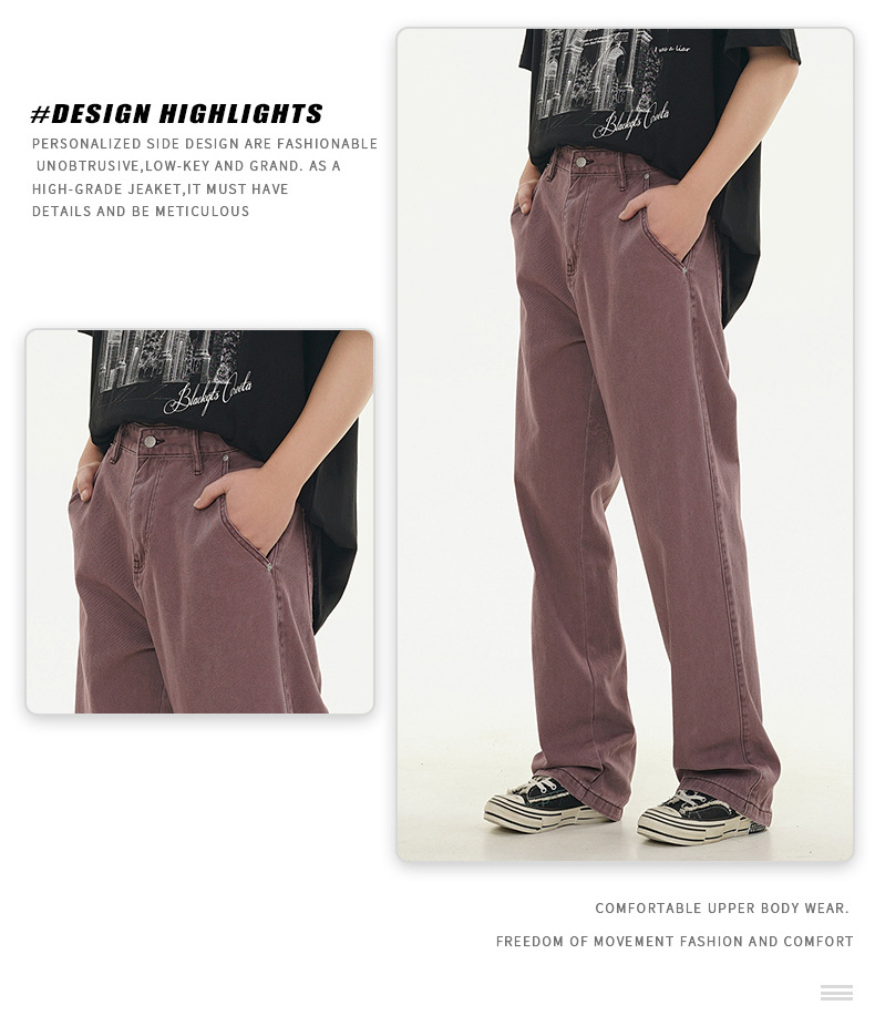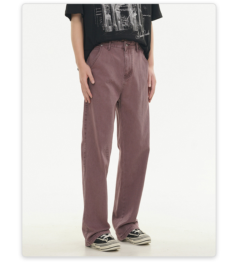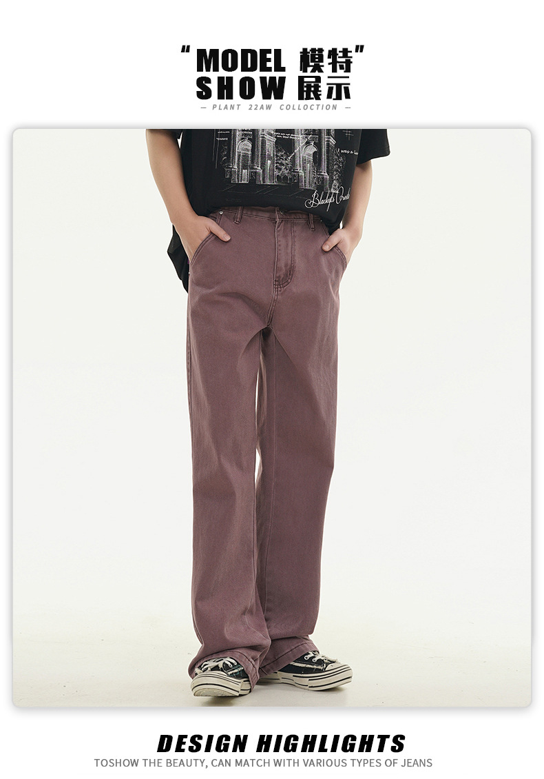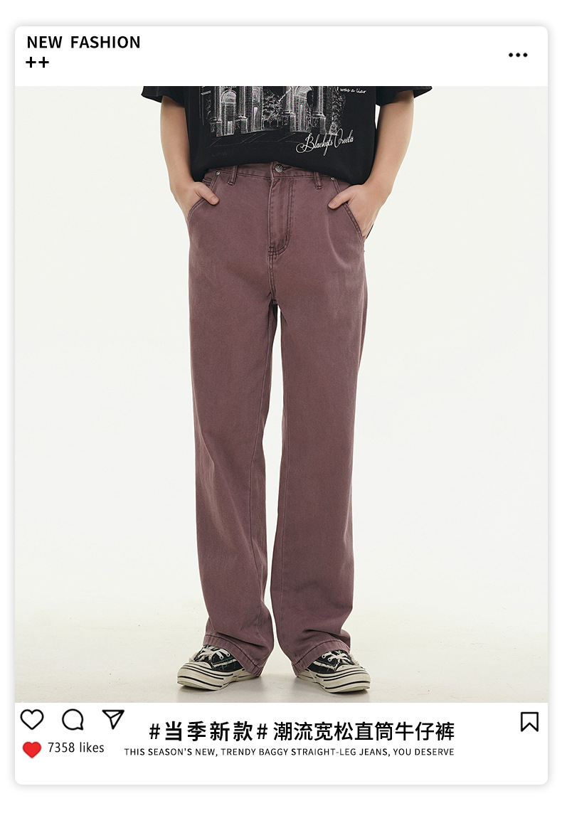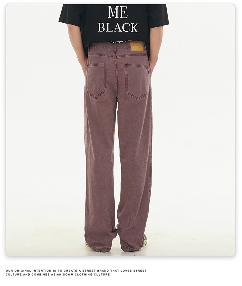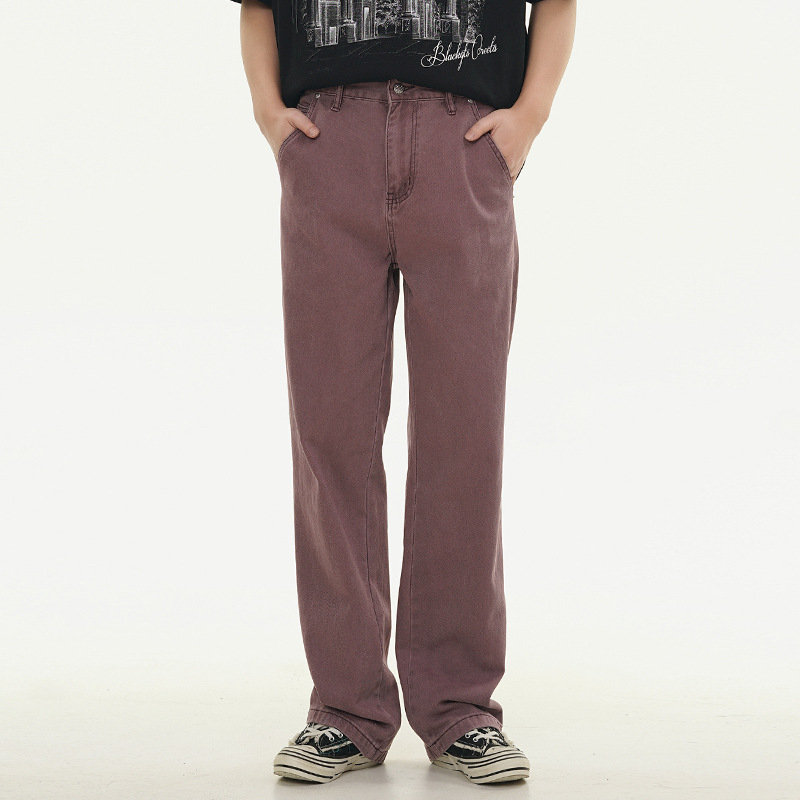 Muqiu 남성복 ∠ 퍼플 하이 스트리트 클렌핏 청바지 남성 하이 레벨 스타일 아메리칸 스타일 루즈 스트레이트 바지스토어 가기