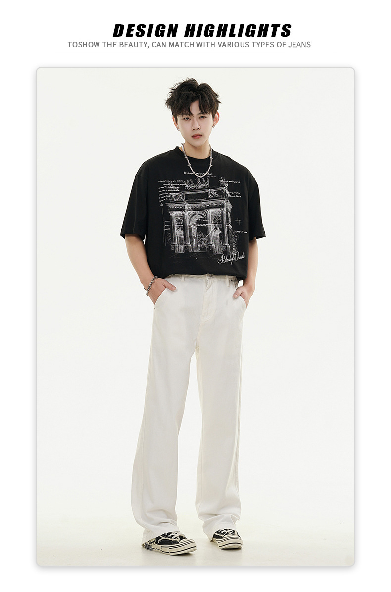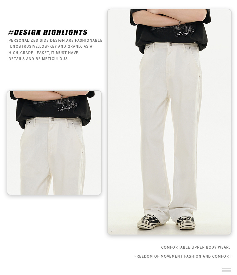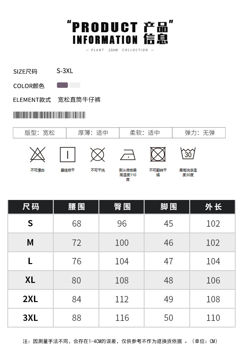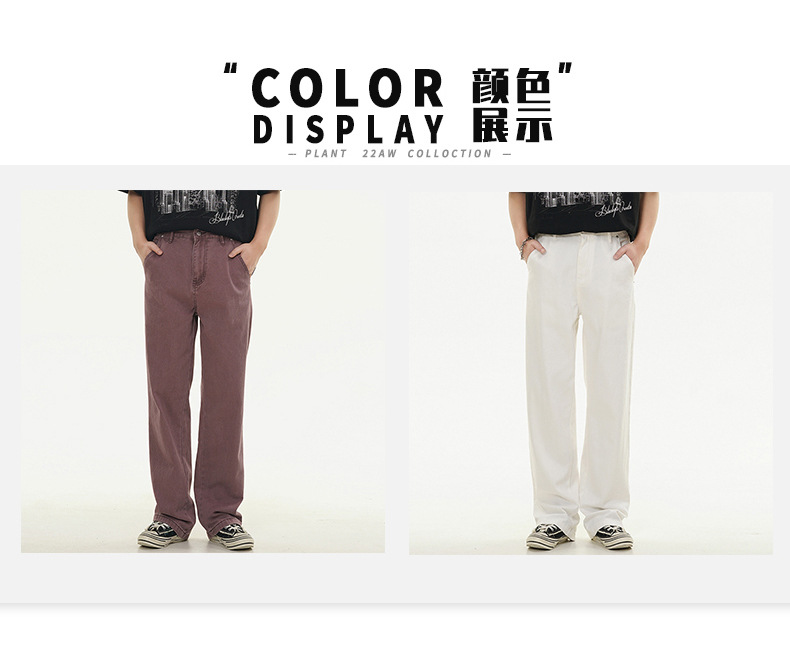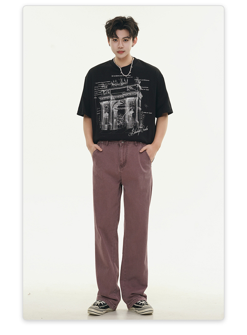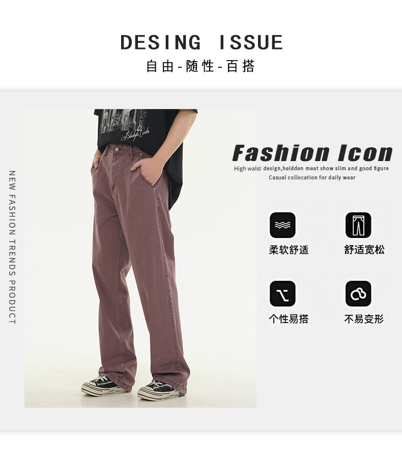 Muqiu 남성복 ∠ 퍼플 하이 스트리트 클렌핏 청바지 남성 하이 레벨 스타일 아메리칸 스타일 루즈 스트레이트 바지스토어 가기