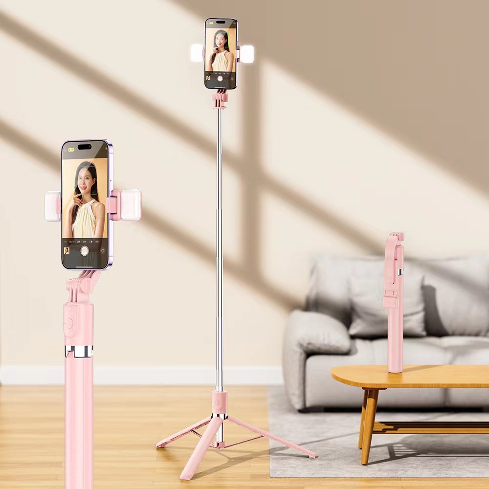 휴대 전화 셀카 스틱 연장 블루투스 통합 아름다움 채우기 조명 원격 제어 다기능 데스크톱 삼각대 라이브
