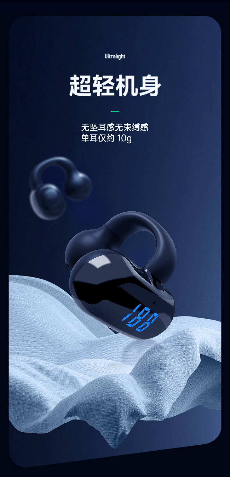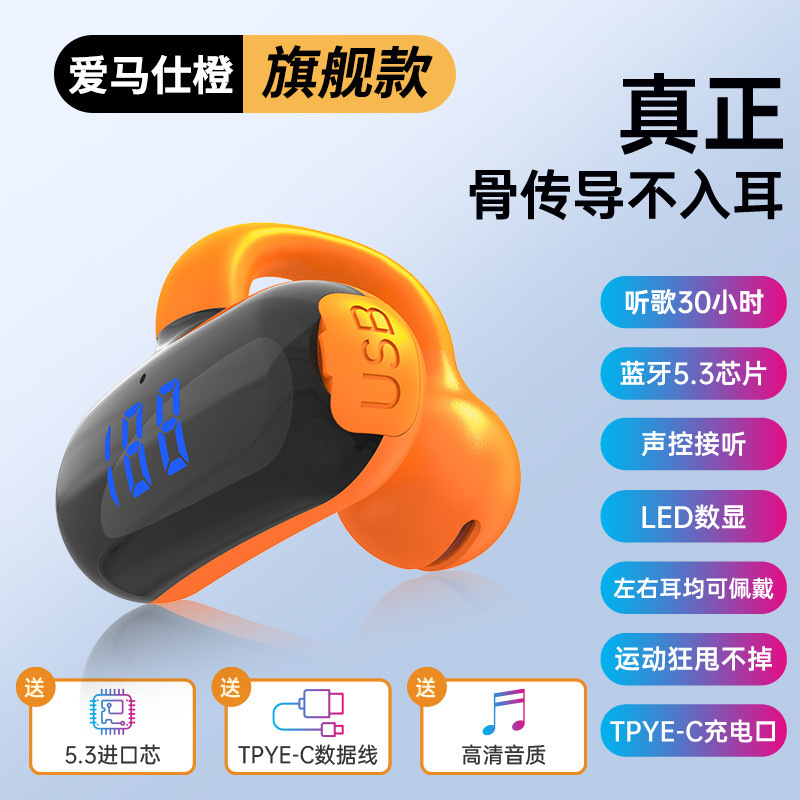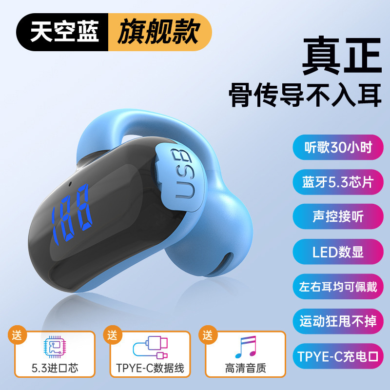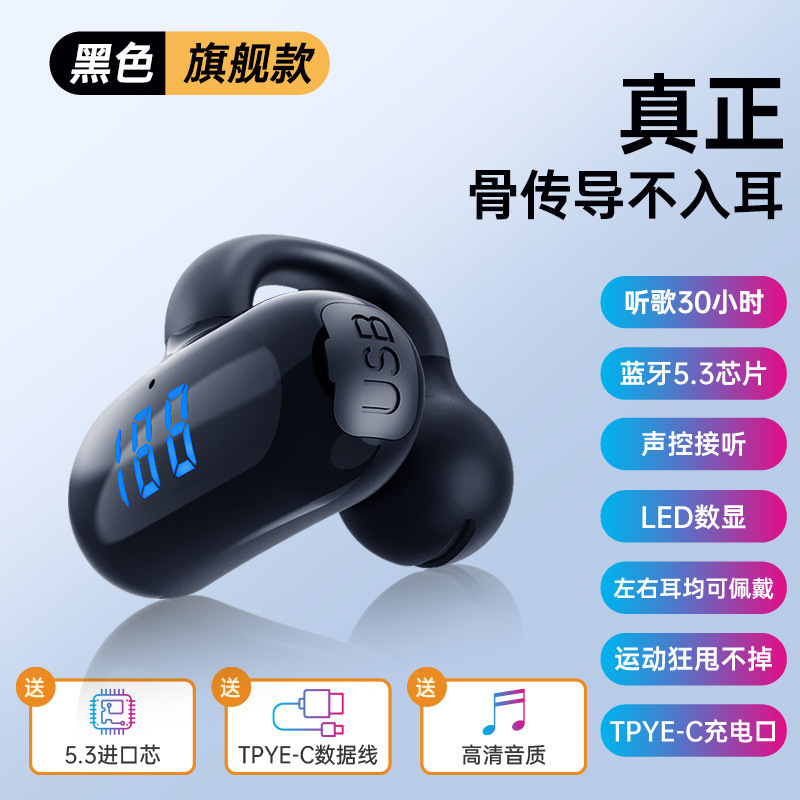 2024 무선 뼈 전도 블루투스 헤드셋 비 귀 고용량 디지털 디스플레이 무통 스포츠 클립-귀 긴 내구성스토어 가기