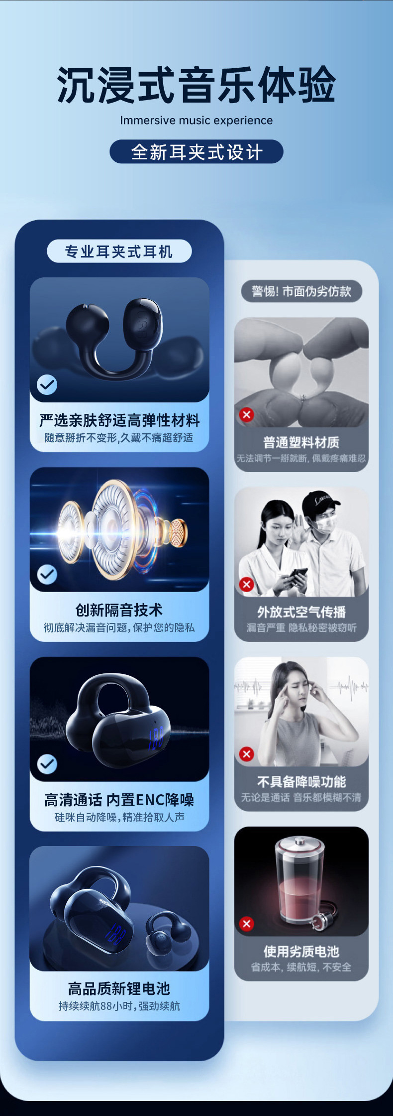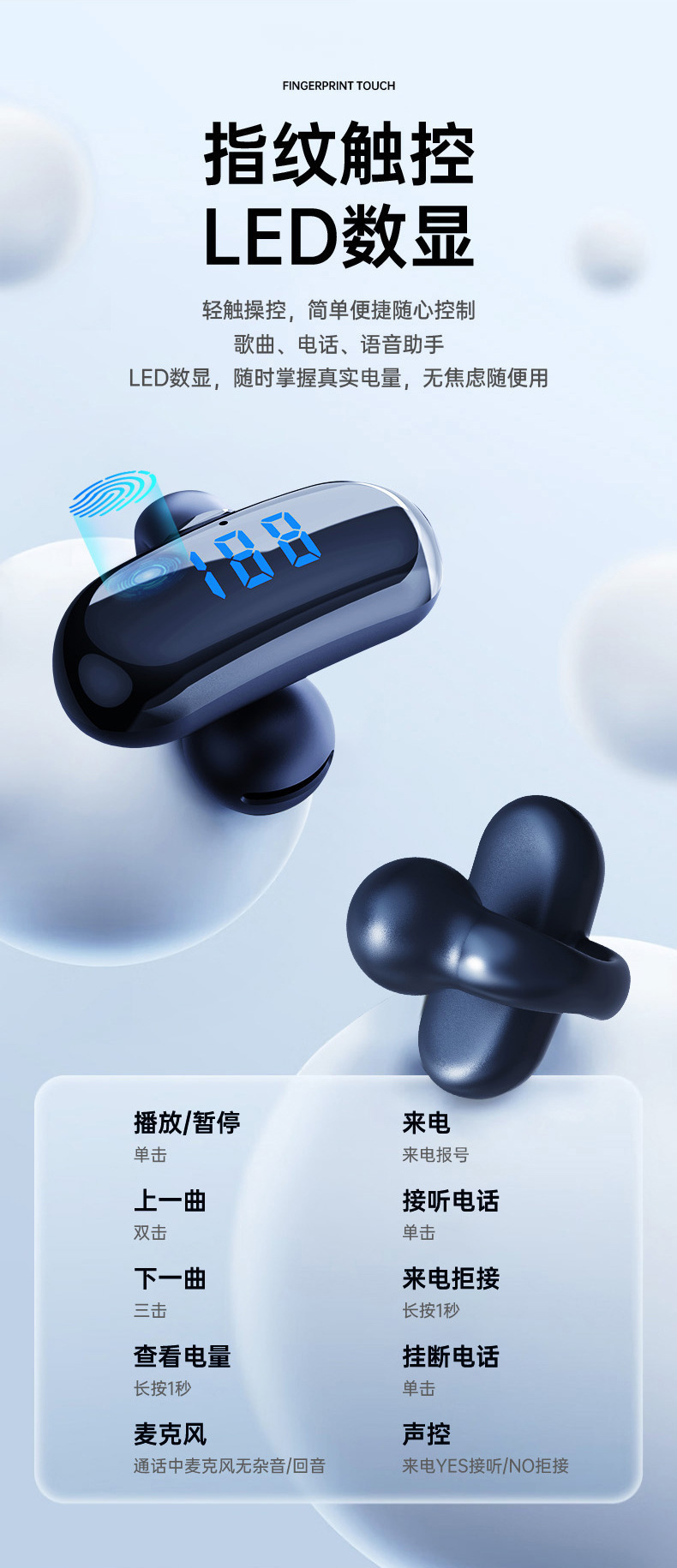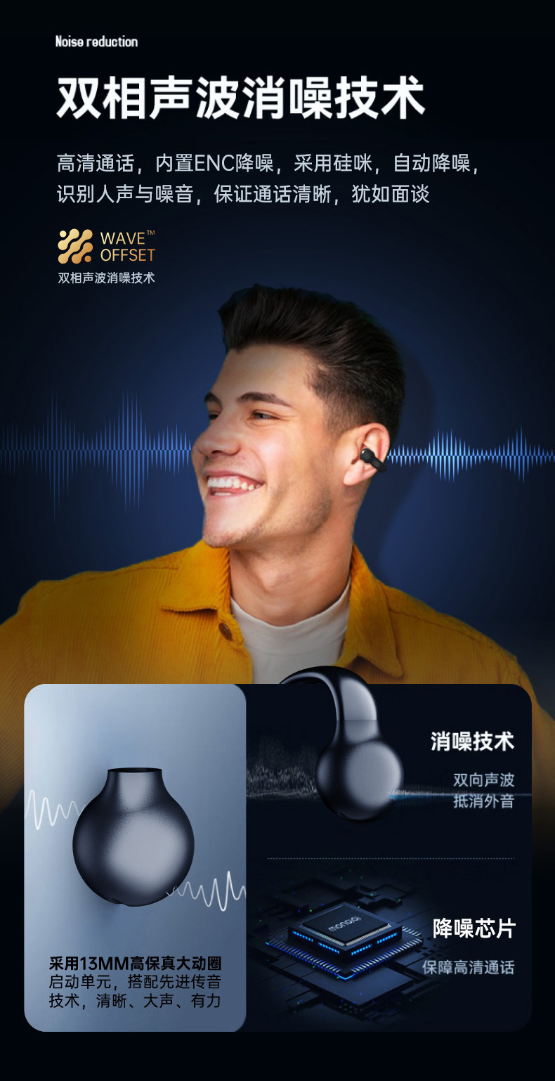 2024 무선 뼈 전도 블루투스 헤드셋 비 귀 고용량 디지털 디스플레이 무통 스포츠 클립-귀 긴 내구성스토어 가기