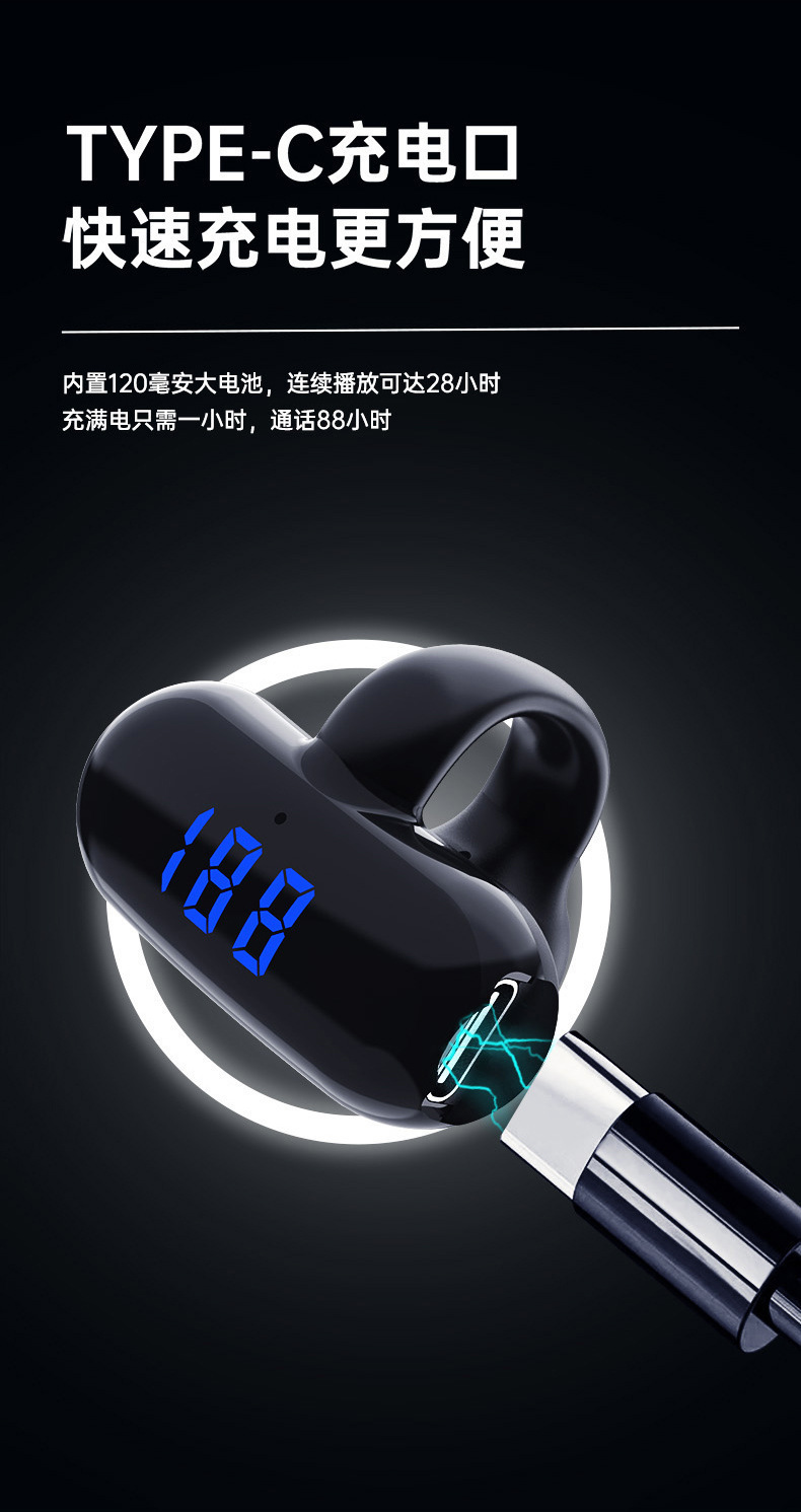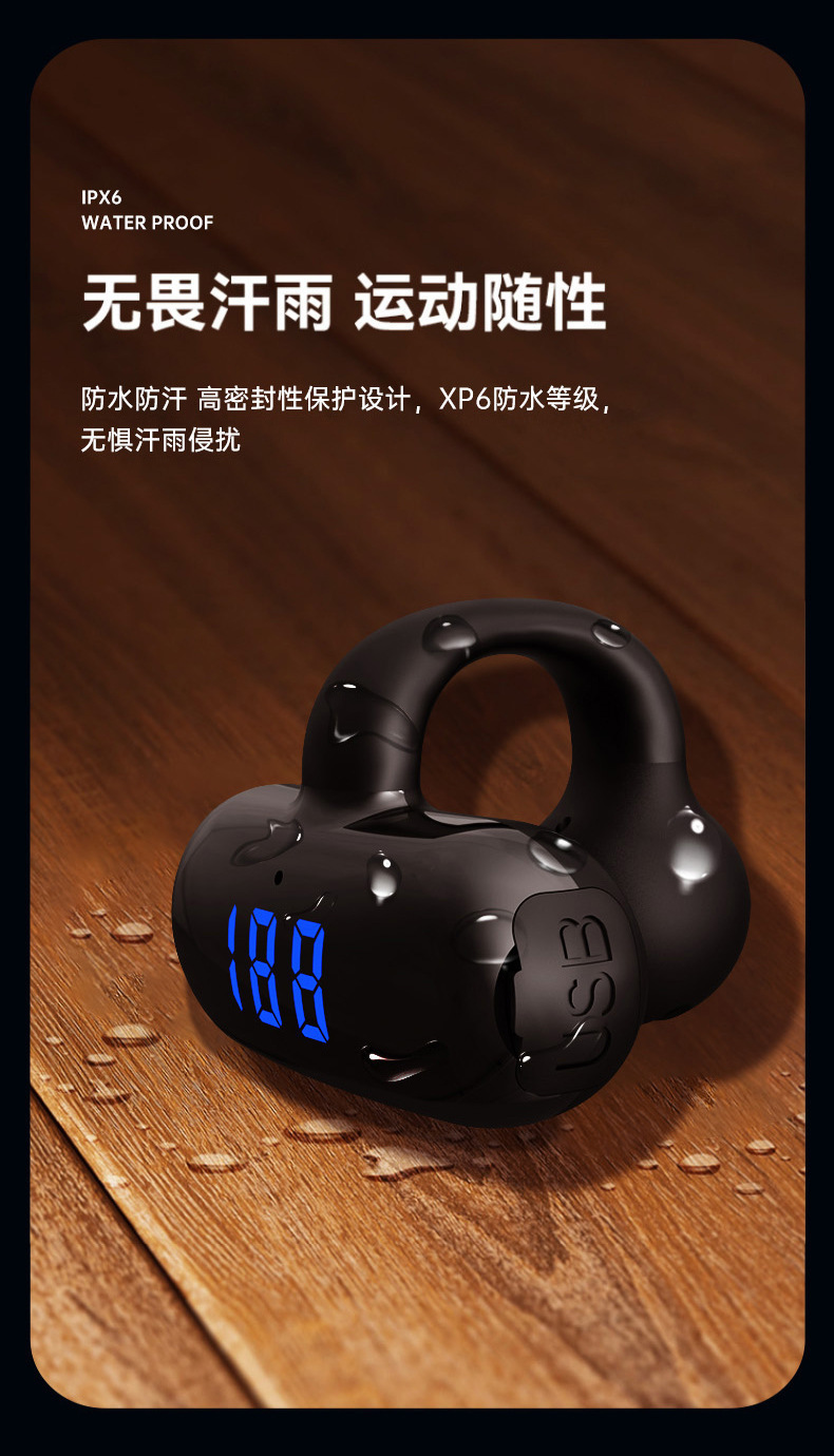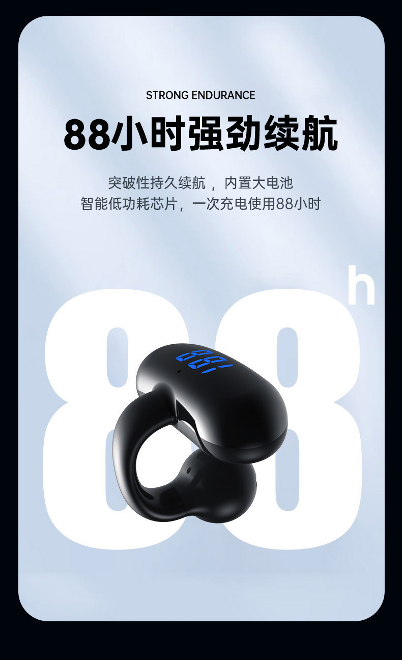 2024 무선 뼈 전도 블루투스 헤드셋 비 귀 고용량 디지털 디스플레이 무통 스포츠 클립-귀 긴 내구성