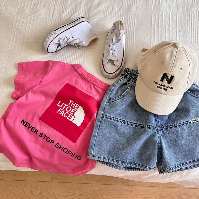 어린이 면화 편지 인쇄 반팔 티셔츠 여름 소년 소녀 패션 올 매치 탑 아기 반팔 여름복스토어 가기