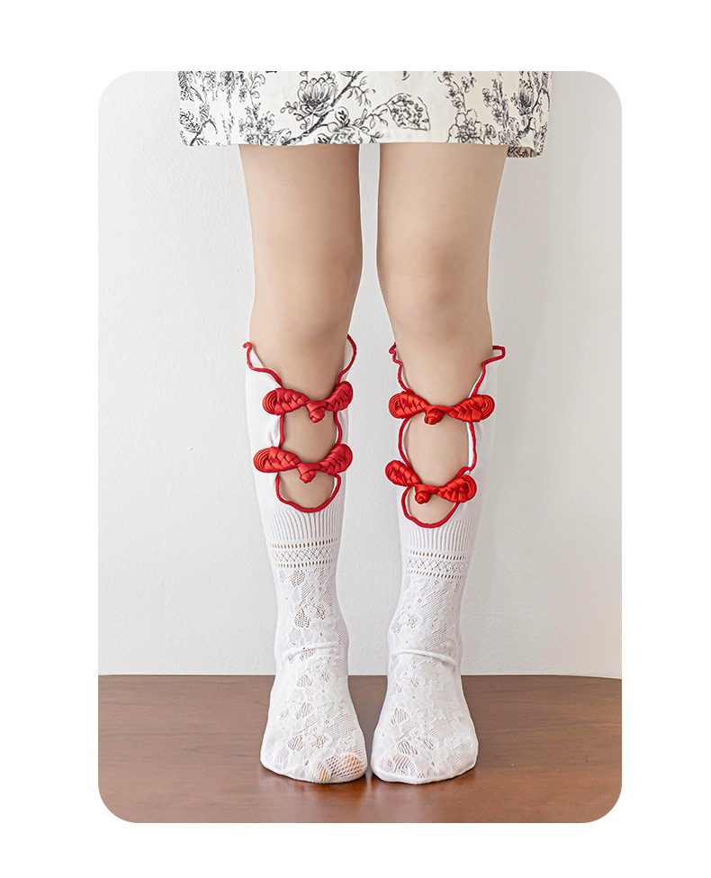 부츠용 면 소재 여아 양말, 봄 여름 얇은 스타일의 주름 양말, 복고풍 치파오 스타일의 버클이 달린 귀여운 롱 양말, 공장 도매스토어 가기