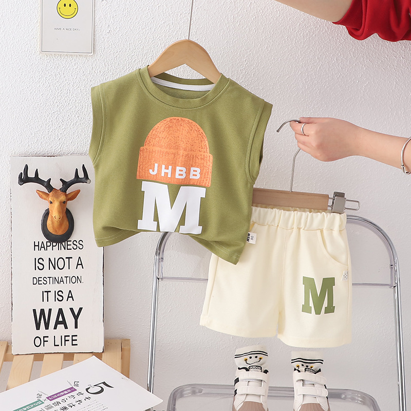 소년의 여름 조끼 세트 새로운 서양식 아기 소년의 얇은 반팔 반바지 투피스 세트 아기 아이들의 여름 패션스토어 가기