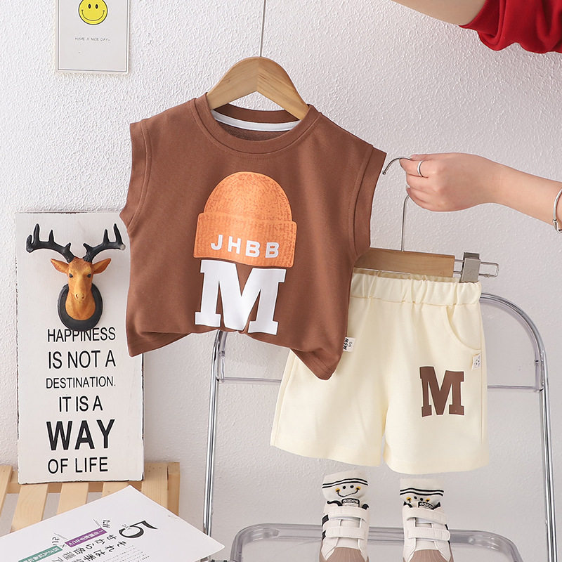 소년의 여름 조끼 세트 새로운 서양식 아기 소년의 얇은 반팔 반바지 투피스 세트 아기 아이들의 여름 패션