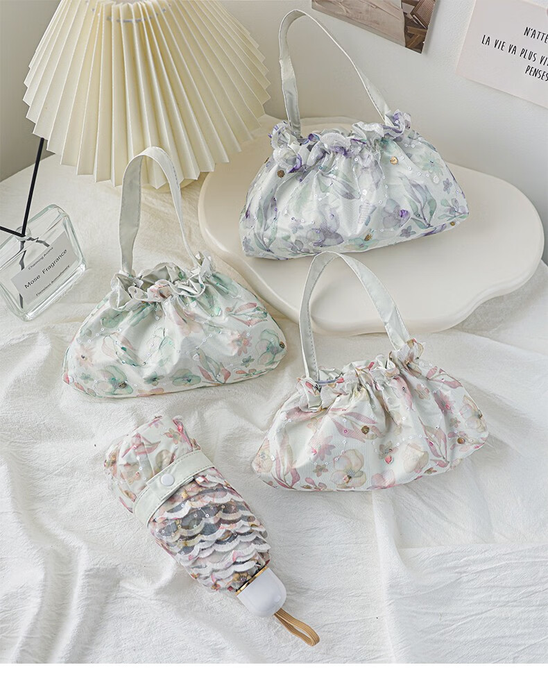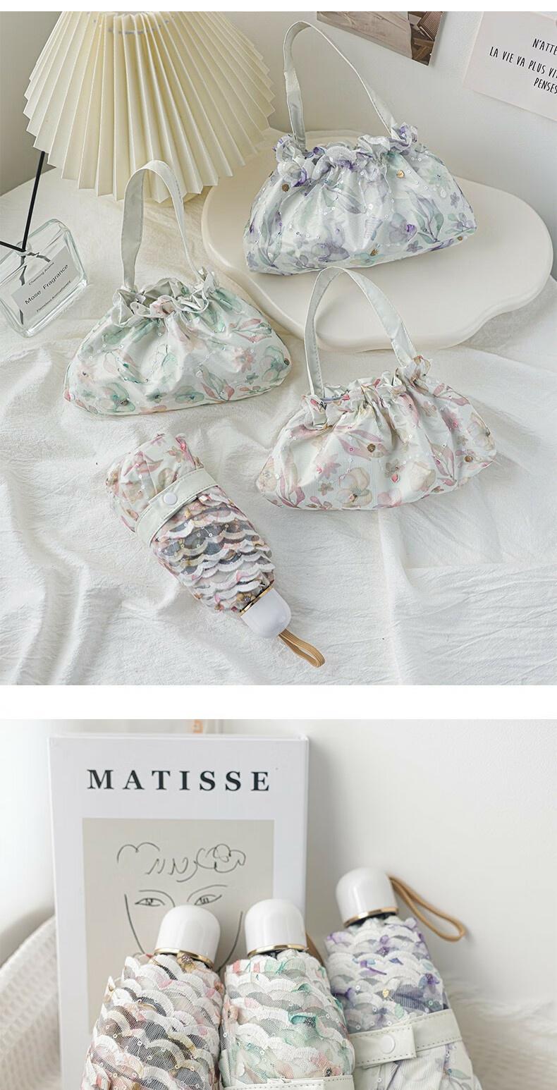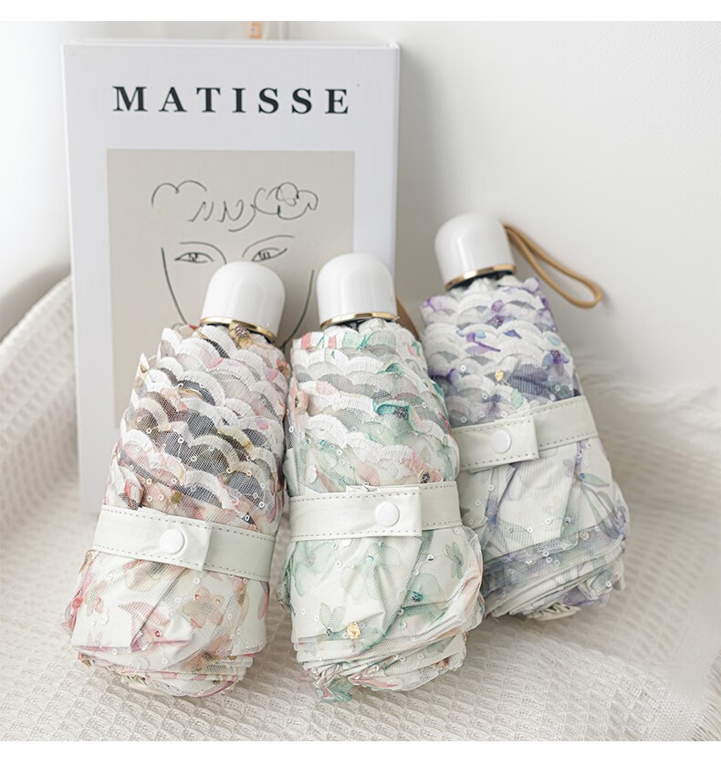 레이스 우산 더블 레이어 자외선 방지 50% 휴대용 블랙 접착제 차양 백 우산 커버 비와 비 이중 사용 태양 우산스토어 가기