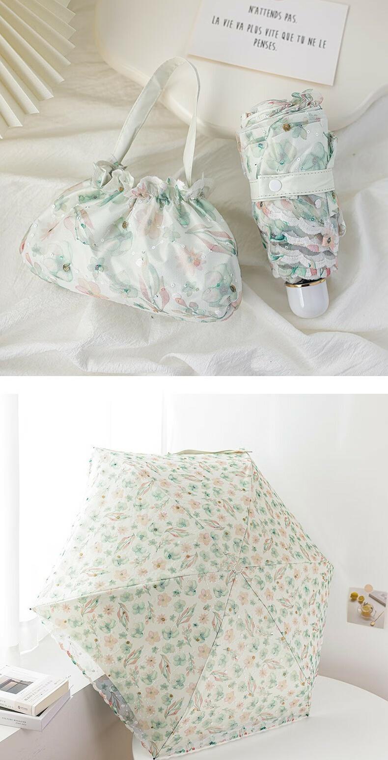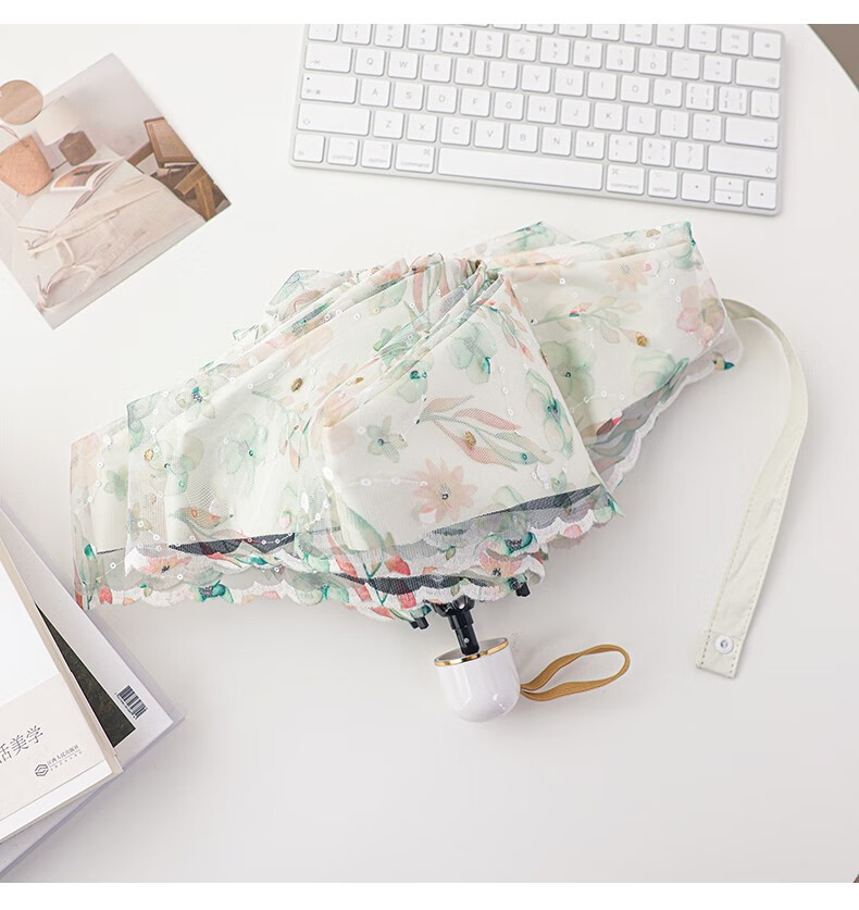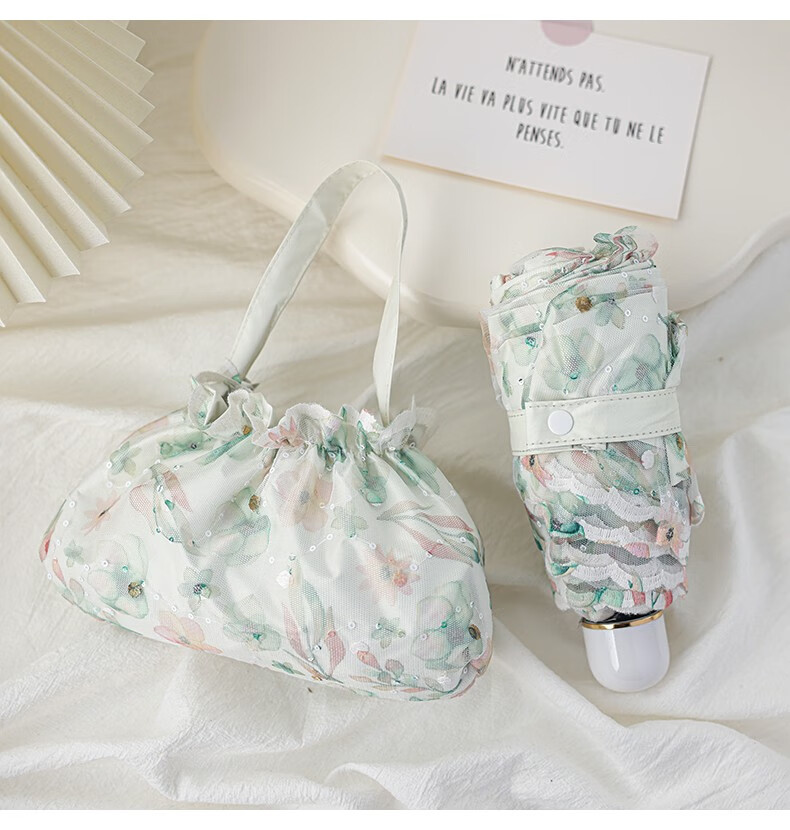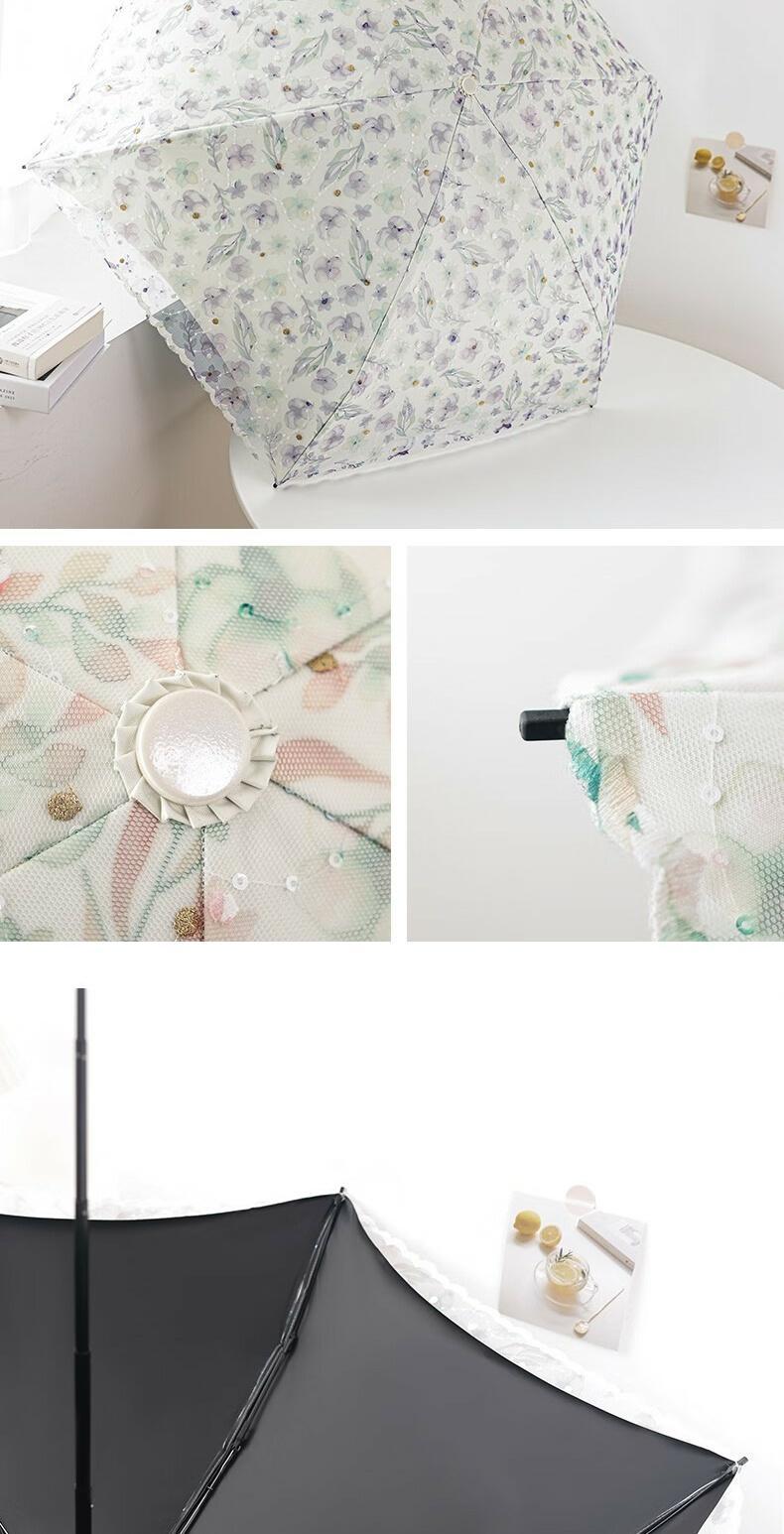 레이스 우산 더블 레이어 자외선 방지 50% 휴대용 블랙 접착제 차양 백 우산 커버 비와 비 이중 사용 태양 우산