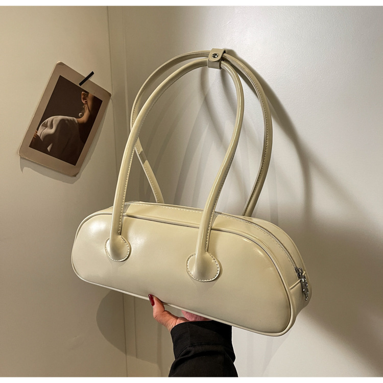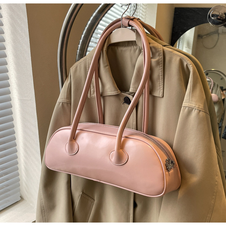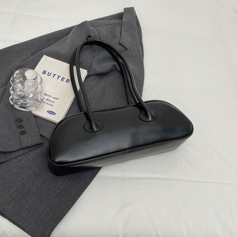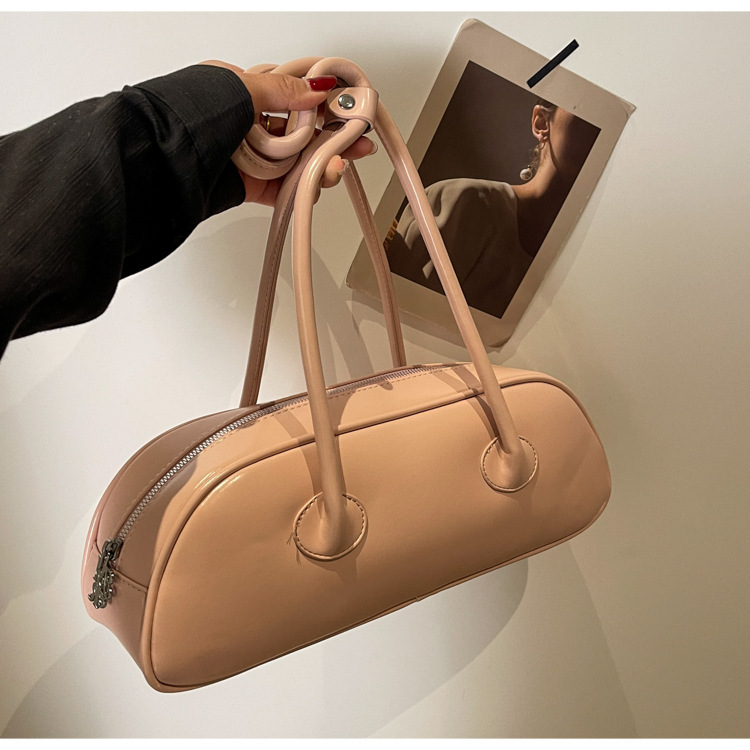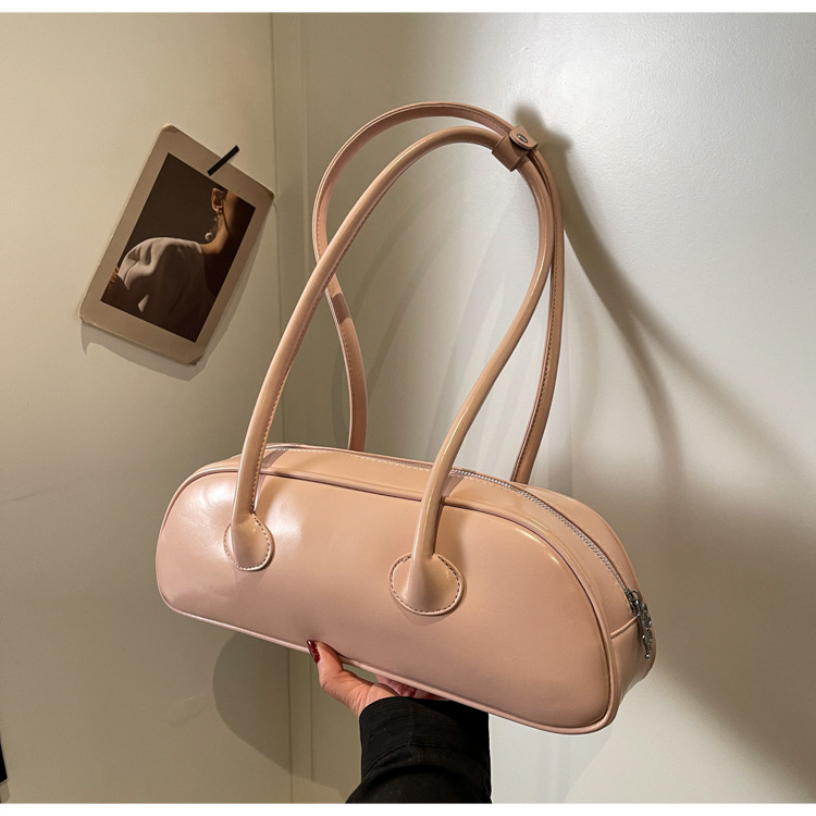 패션 가방 여성의 새로운 광택 프랑스 스틱 가방 여성 2024 여름 틈새 겨드랑이 숄더백 캐주얼 베개 가방