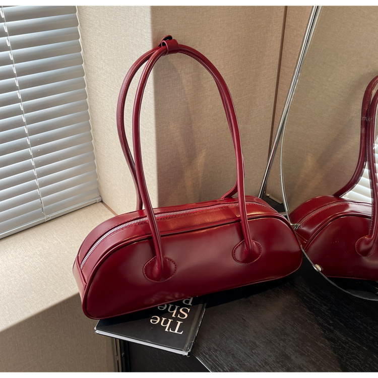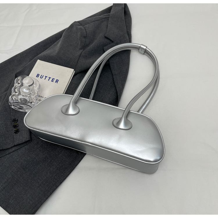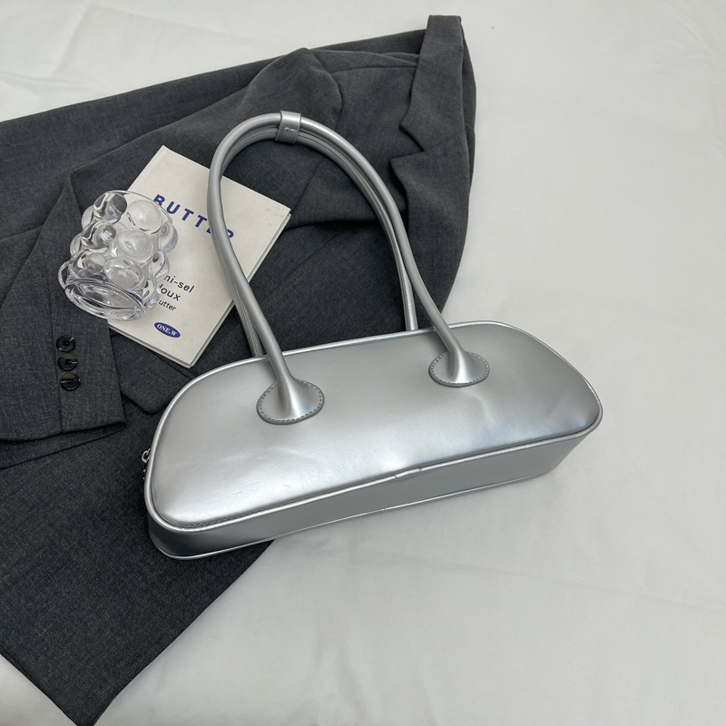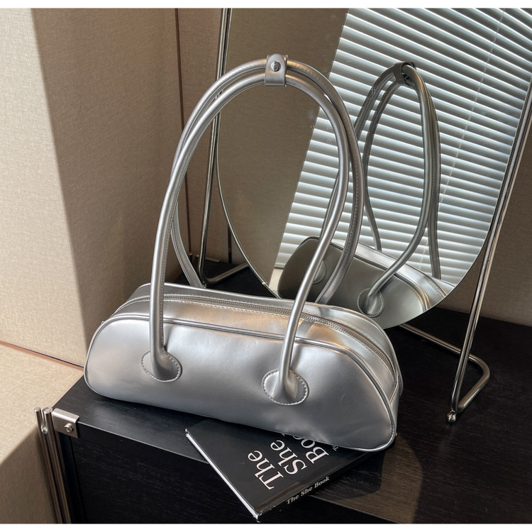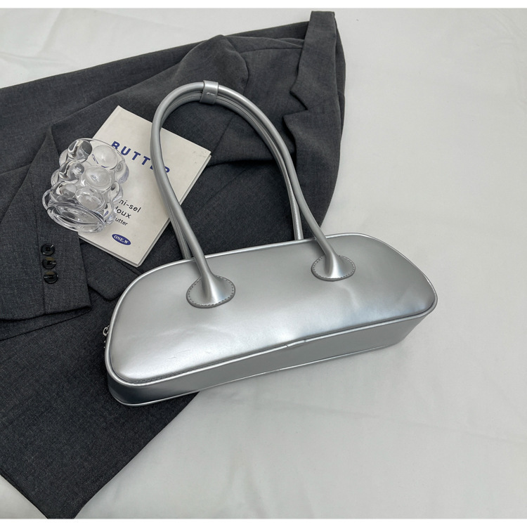패션 가방 여성의 새로운 광택 프랑스 스틱 가방 여성 2024 여름 틈새 겨드랑이 숄더백 캐주얼 베개 가방스토어 가기