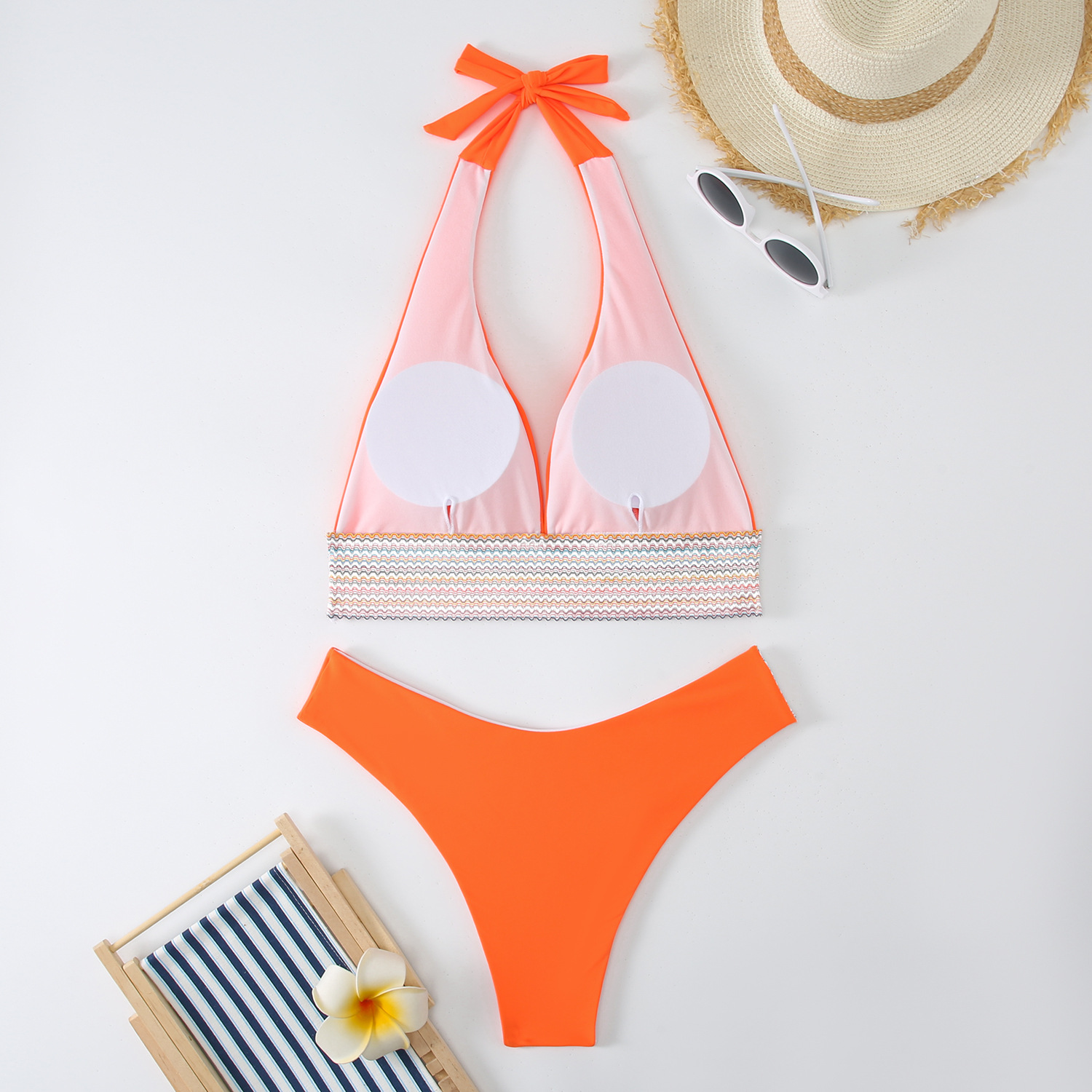 2025 신상 유럽 및 미국 수출용 수영복 단색 섹시 홀터넥 여성용 분리형 다색 비키니 수영복스토어 가기