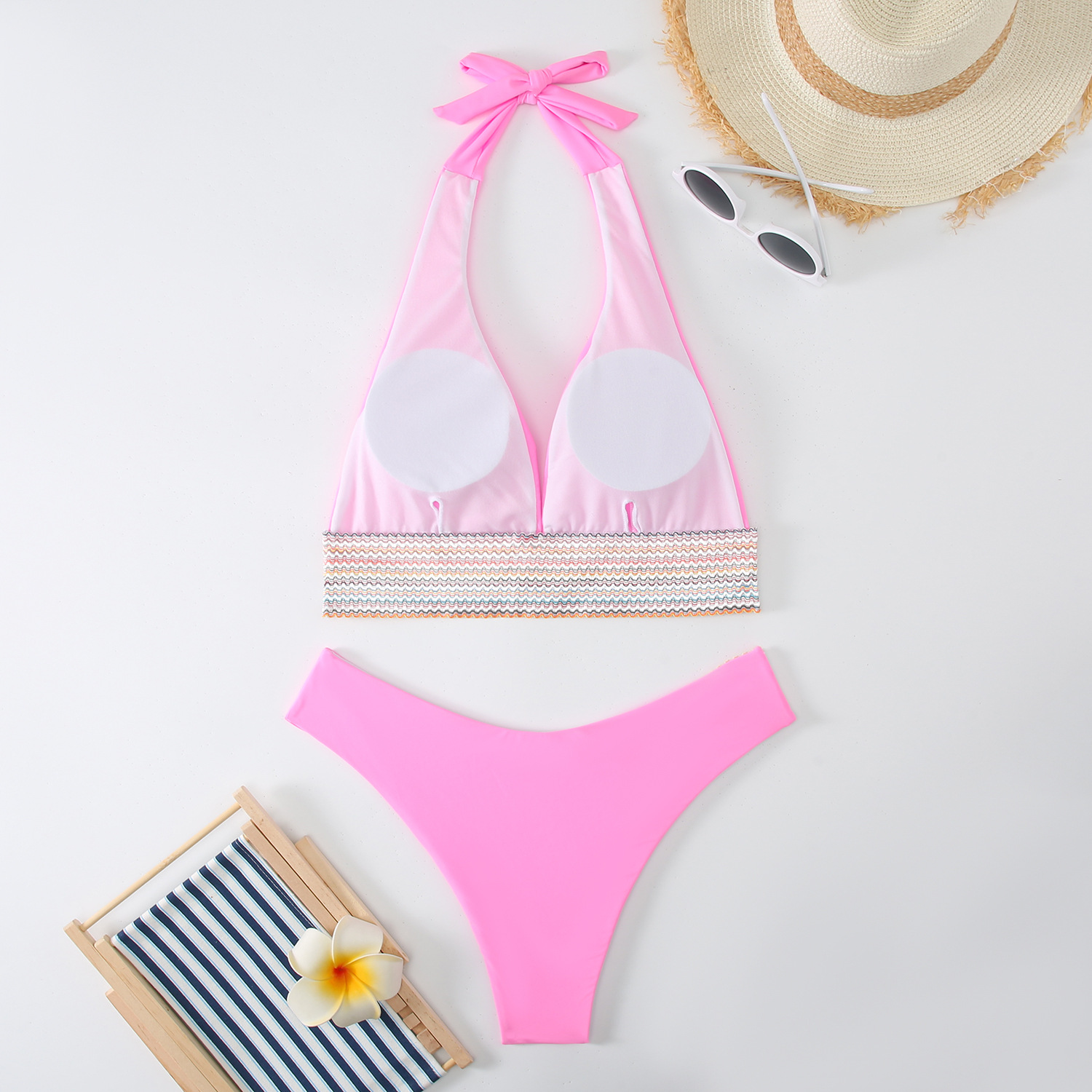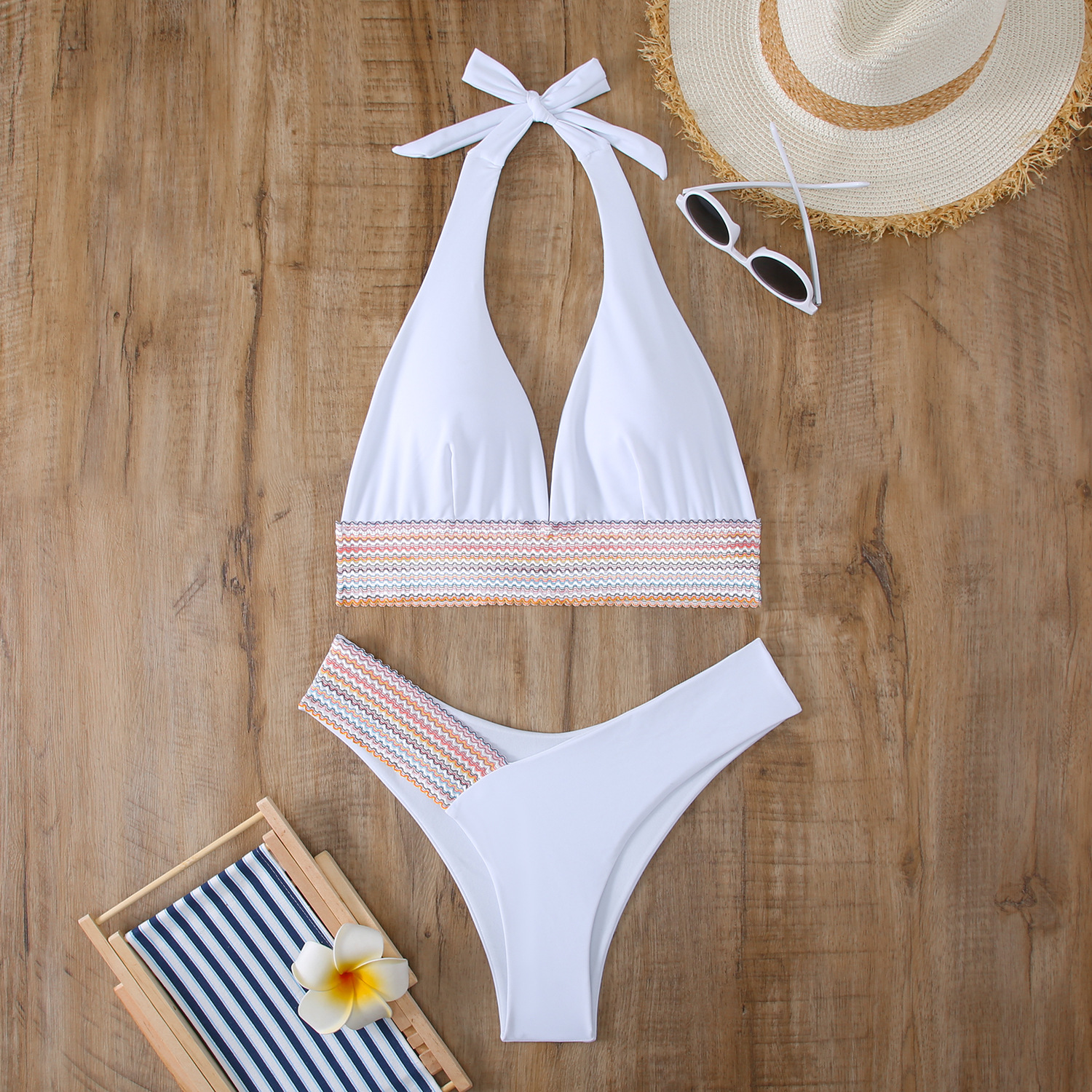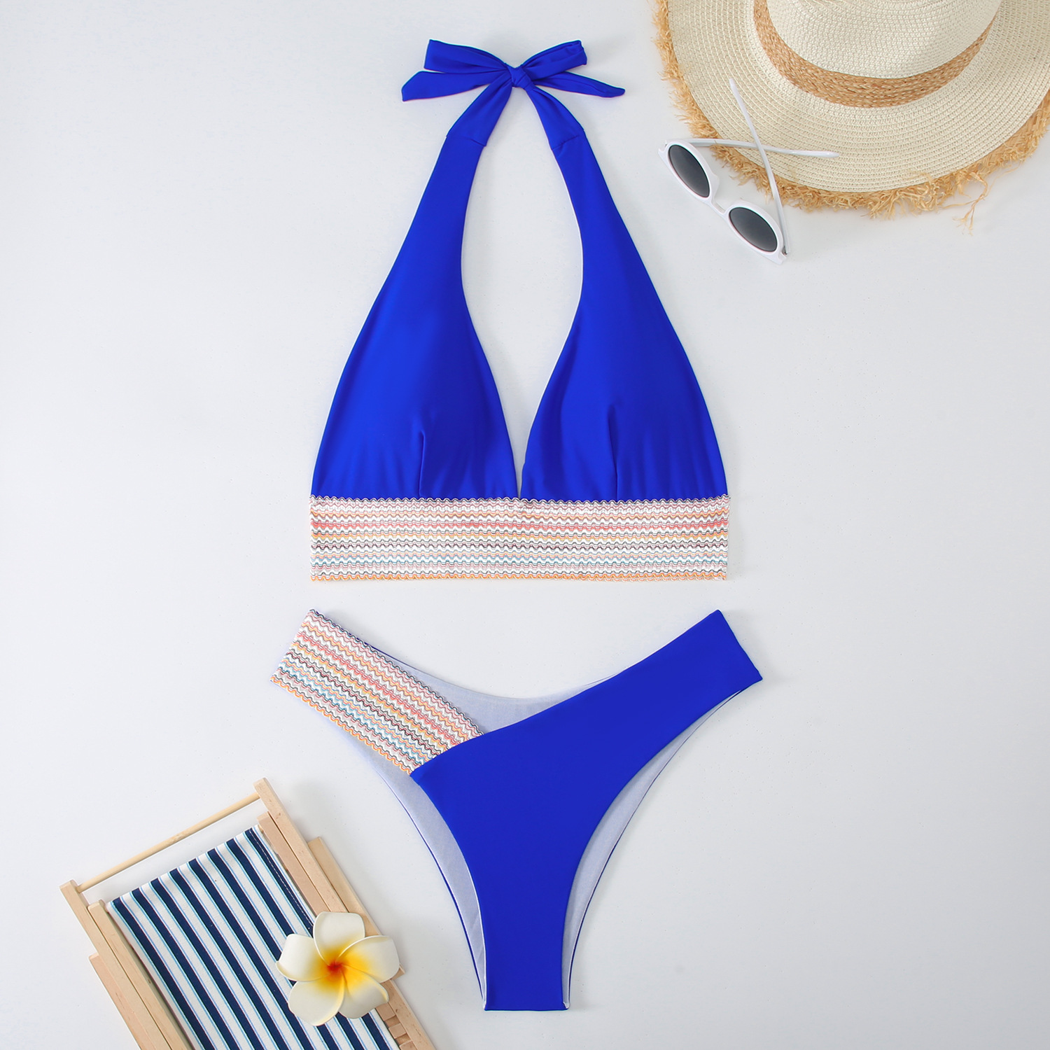 2025 신상 유럽 및 미국 수출용 수영복 단색 섹시 홀터넥 여성용 분리형 다색 비키니 수영복