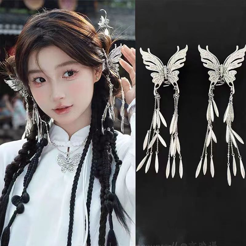 새로운 중국 스타일 나비 술 헤어 클립 고급 틈새 헤어 상어 클립 복고풍 민족 스타일 머리 장식 헤어 액세서리 클립