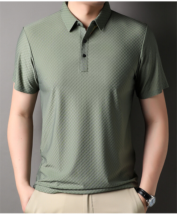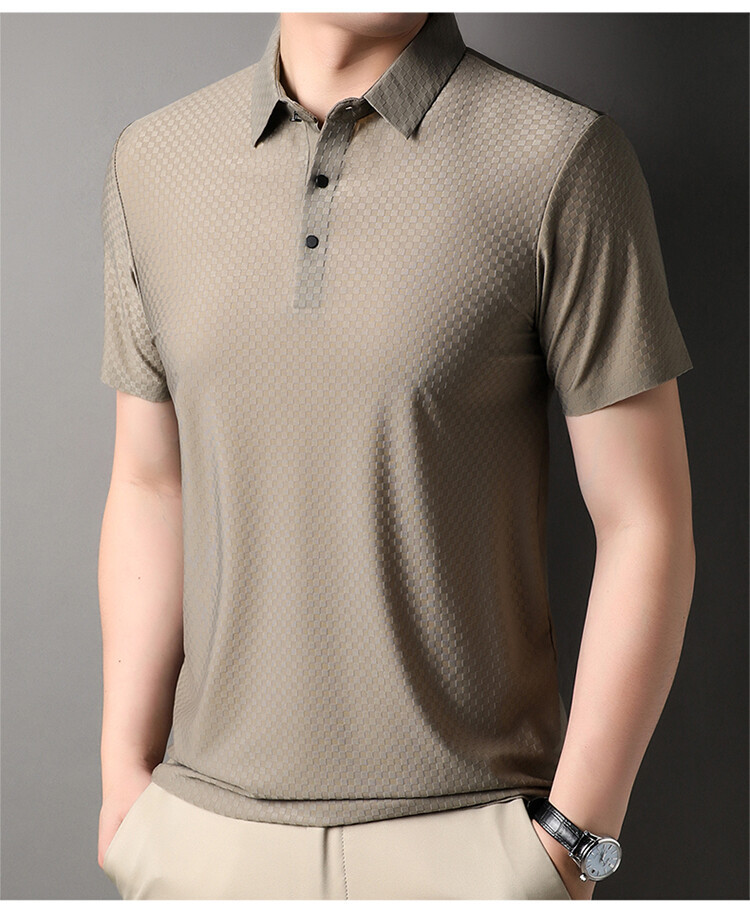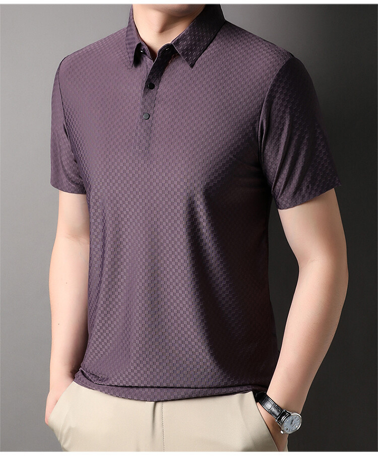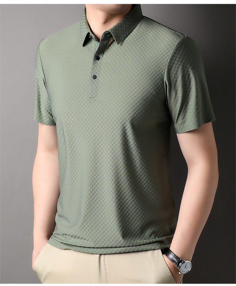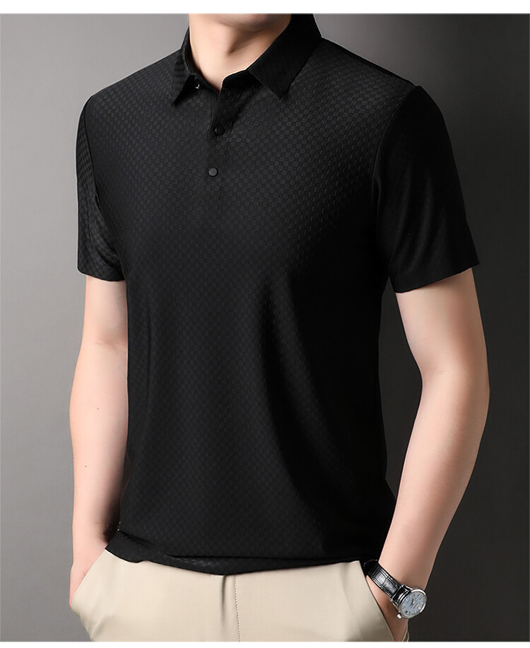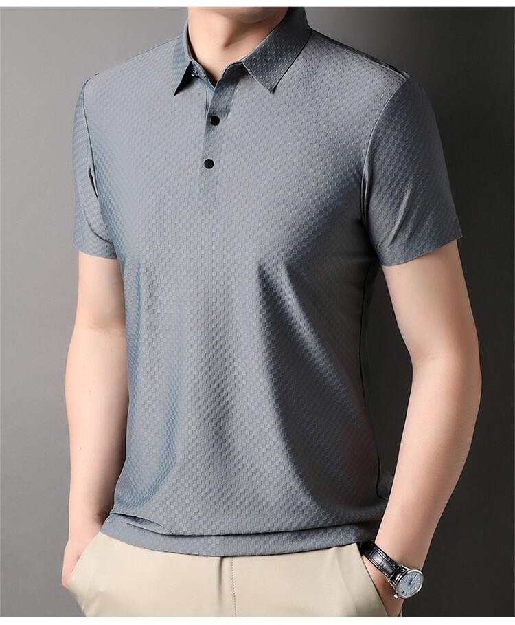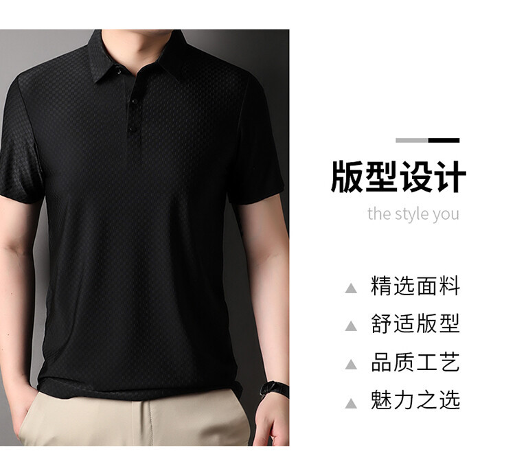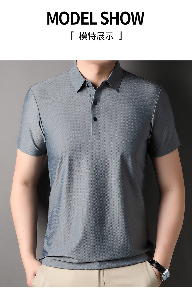 젊고 중년의 새로운 여름 티셔츠 남성용 반팔 단색 옷깃 자카드 비즈니스 캐주얼 원활한 폴로 셔츠 탑