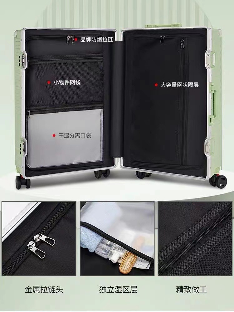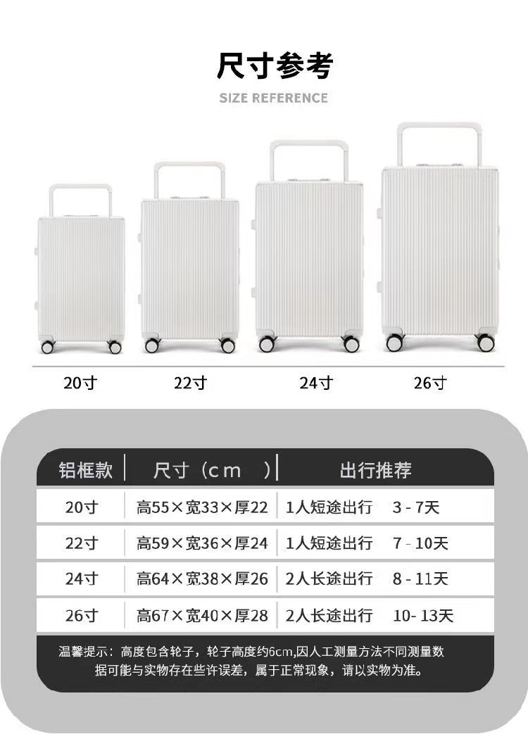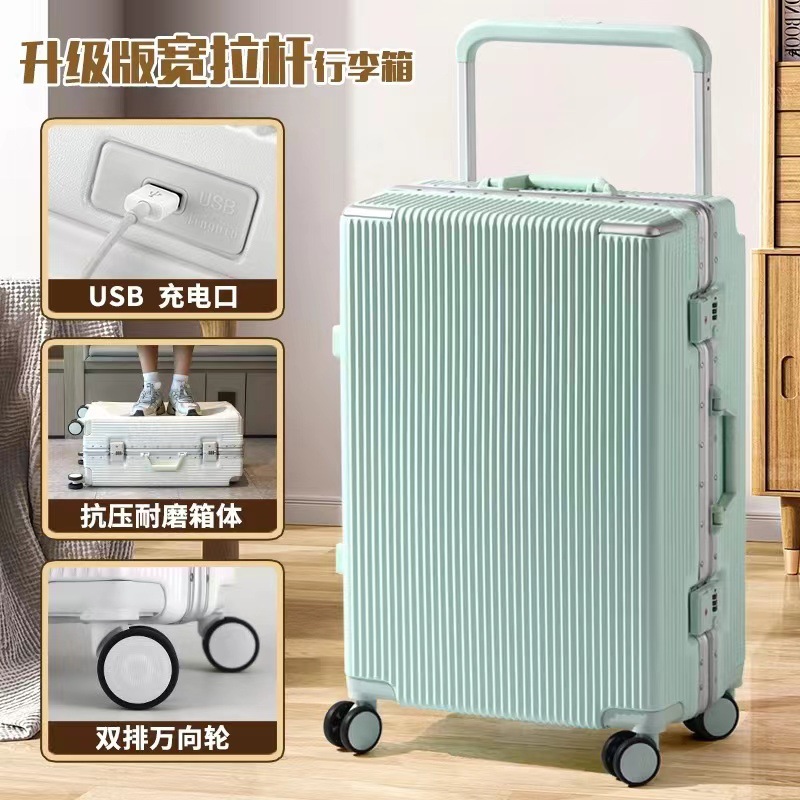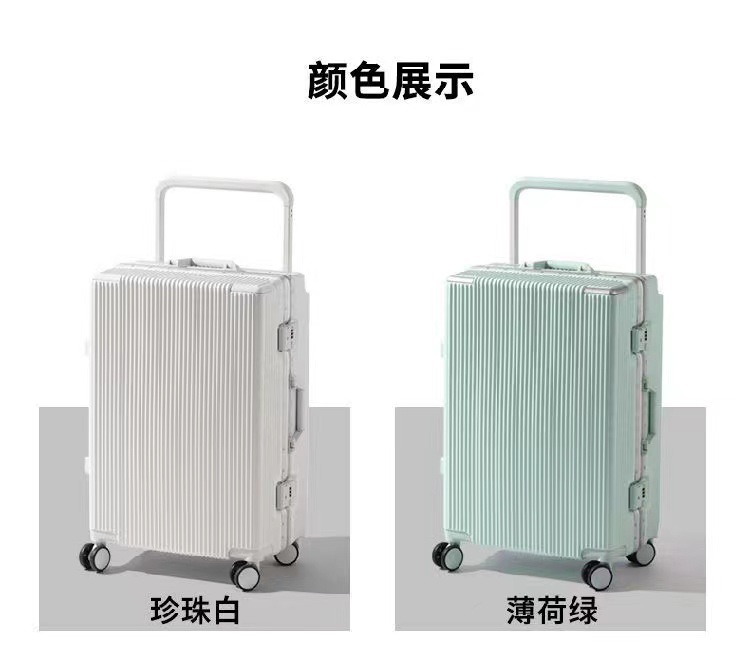새로운 넓은 트롤리 남성 및 여성 학생 알루미늄 프레임 수하물 대용량 범용 휠 암호 상자 두꺼운 내구성 여행 가방