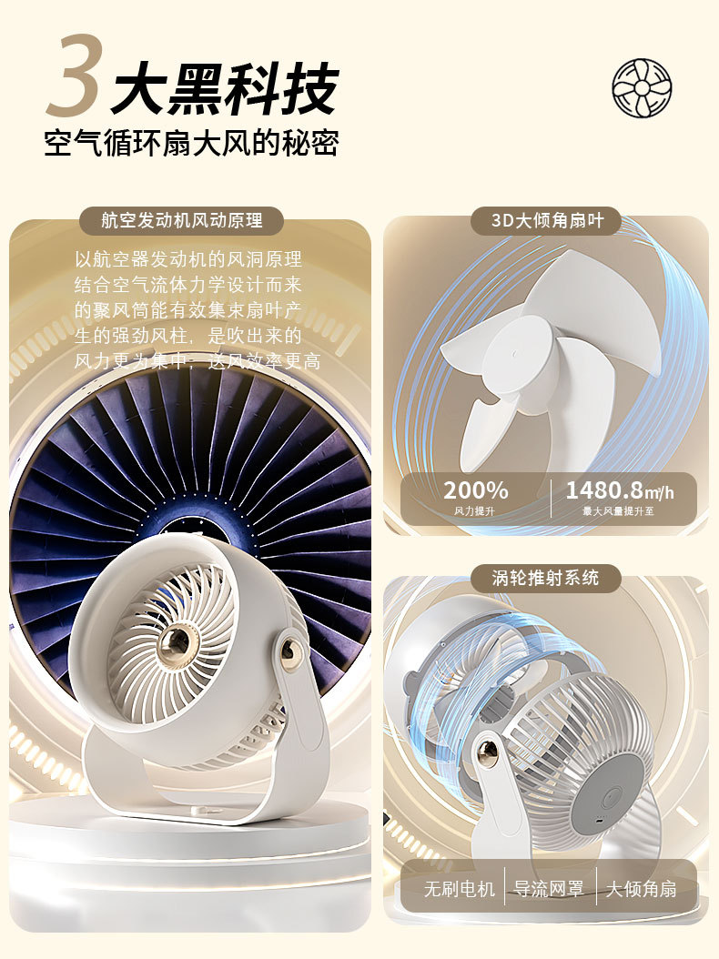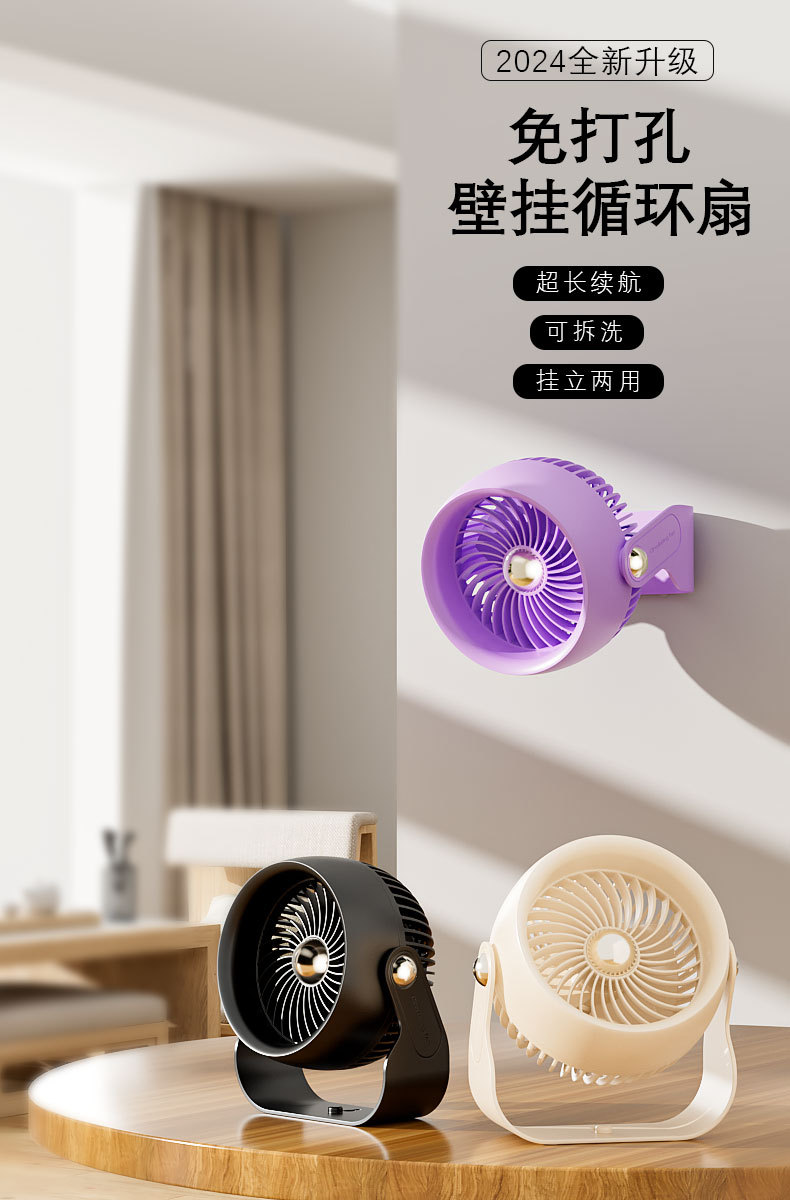 2024 새로운 순환 팬 긴 내구성 주방 벽 교수형 욕실 침실 데스크탑 휴대용 대용량 충전 팬