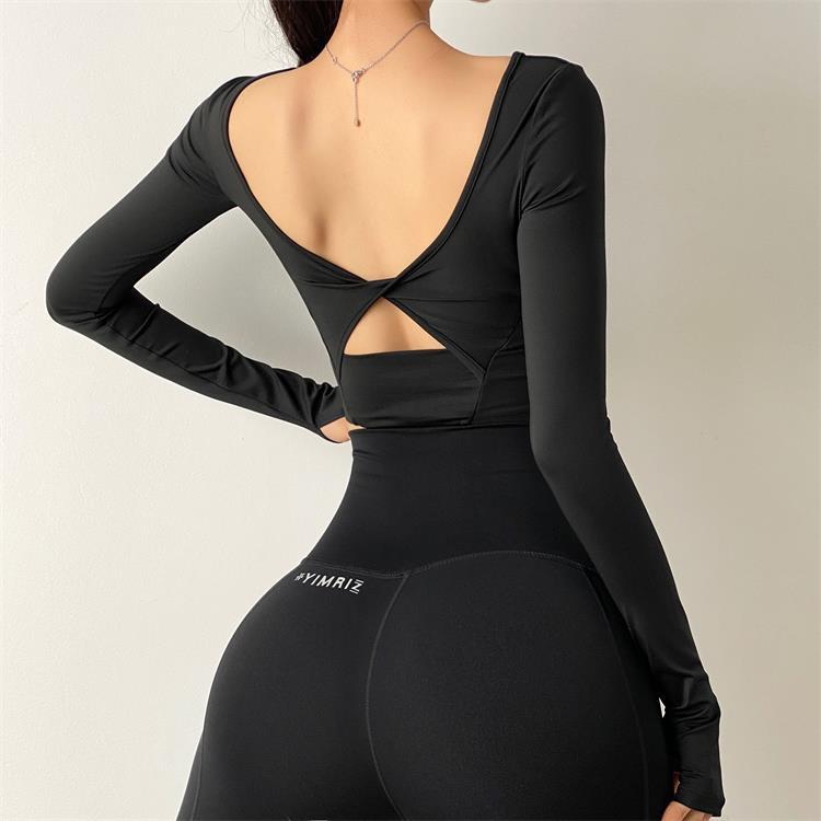 가슴 패드 긴팔 티셔츠가있는 요가 옷 여성 타이트한 스포츠 달리기 피트니스 인터넷 유명인 섹시한 속이 빈 뷰티 백 탑