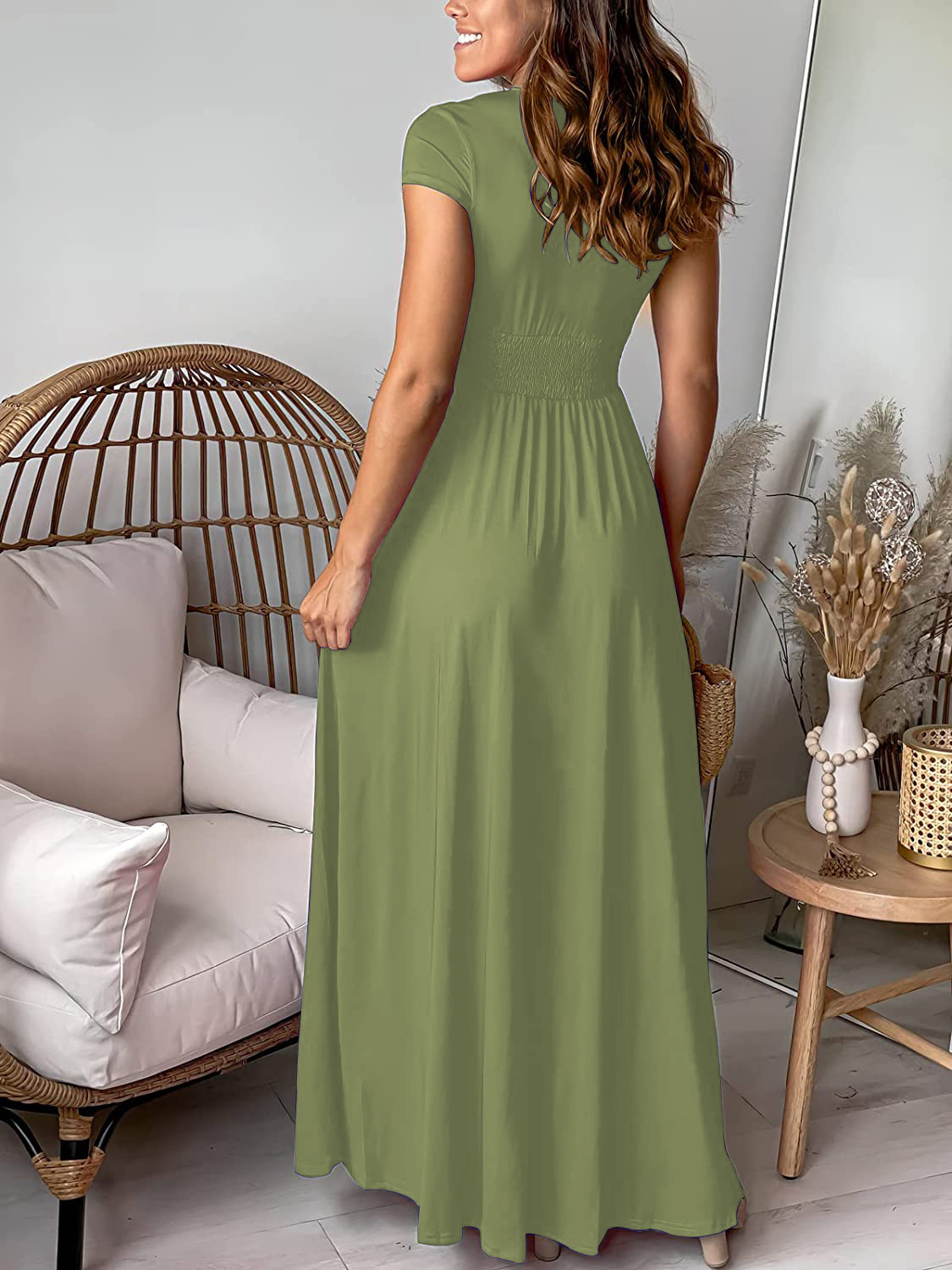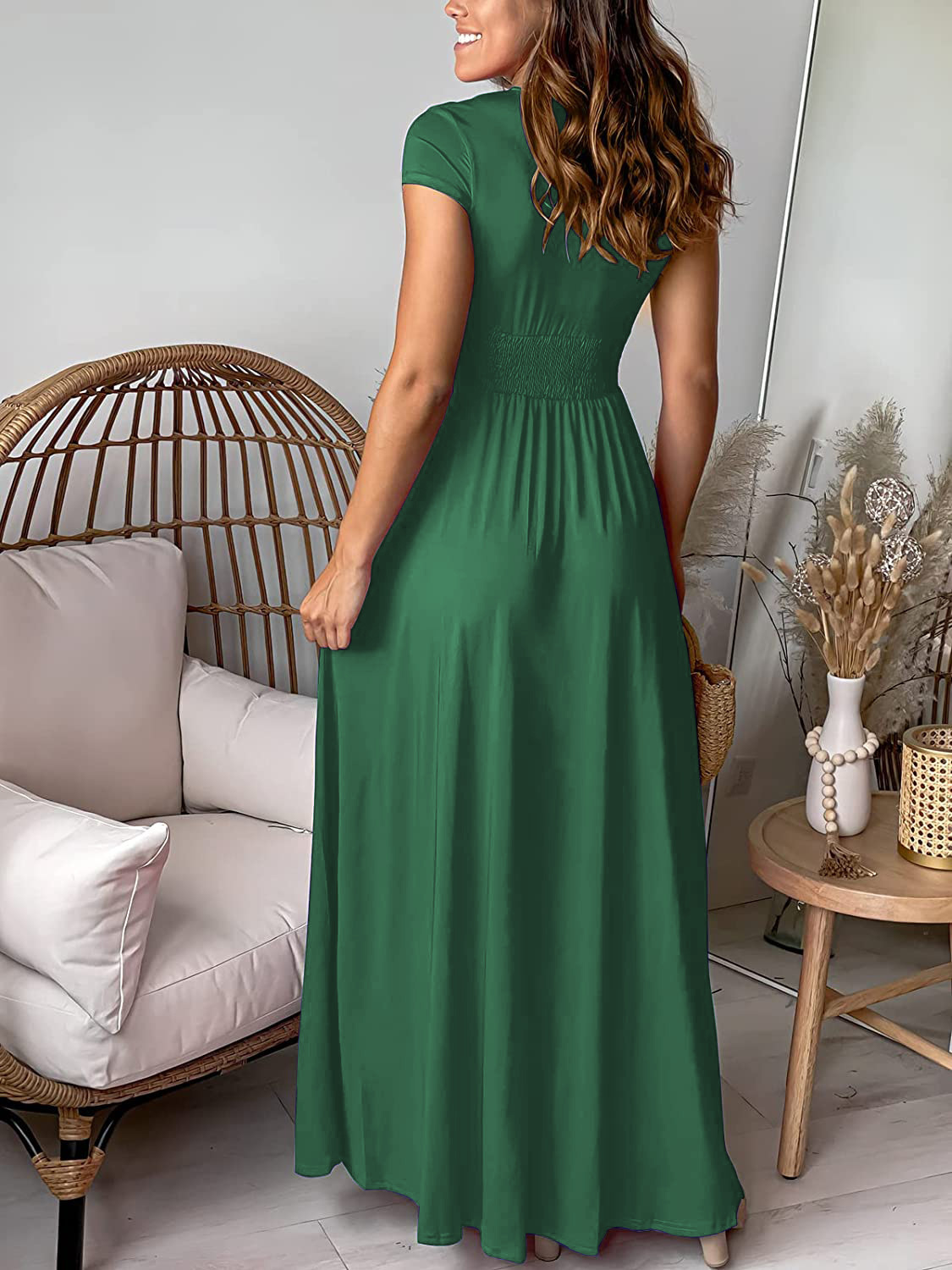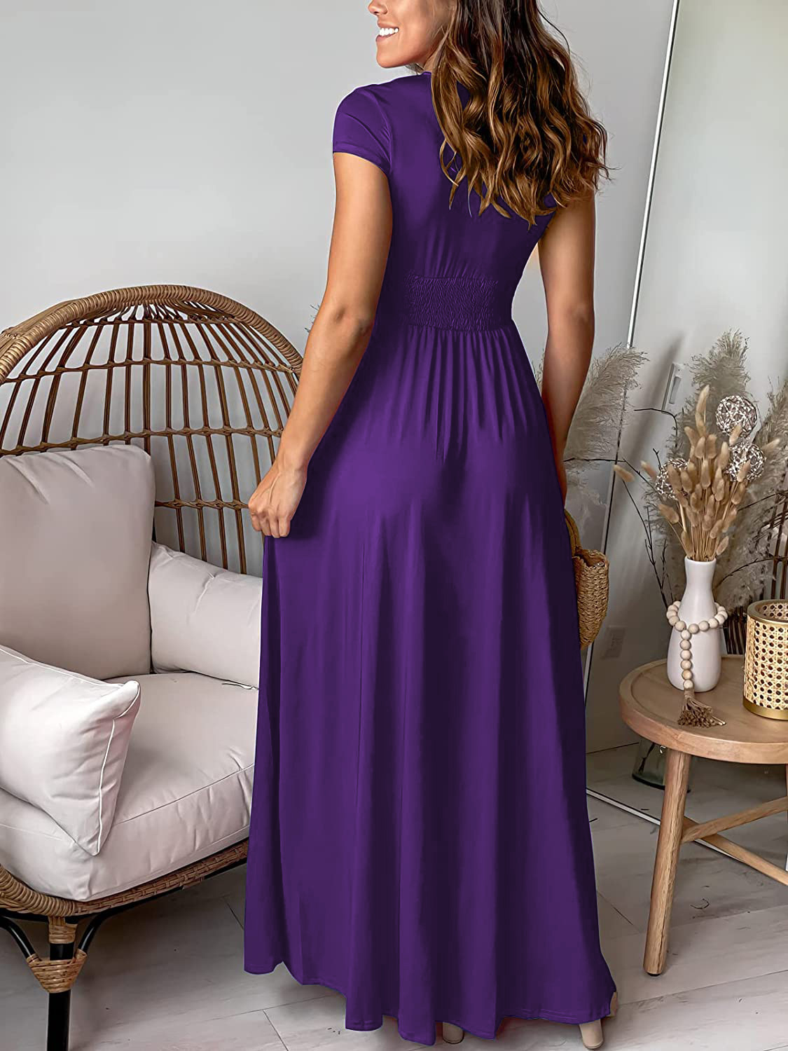 2024 여자 깊은 V-목 반팔 긴 원피스 높은 허리 분할 클럽 파티 저녁 원피스 단색
