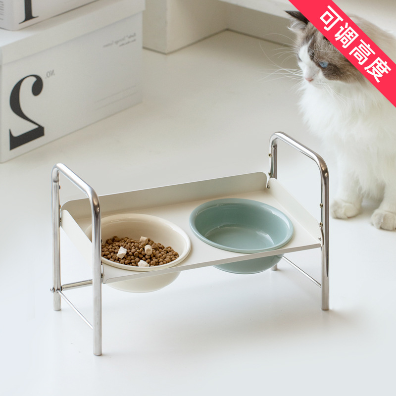세라믹 고양이 그릇 고양이 음식 그릇 높은 다리 고양이 음식 그릇 안티 노크 개 그릇 대용량 마시는 그릇 더블 그릇 자궁 경부 지원스토어 가기