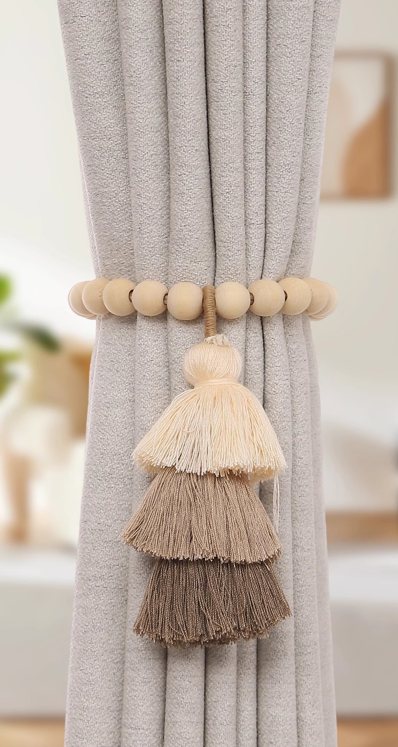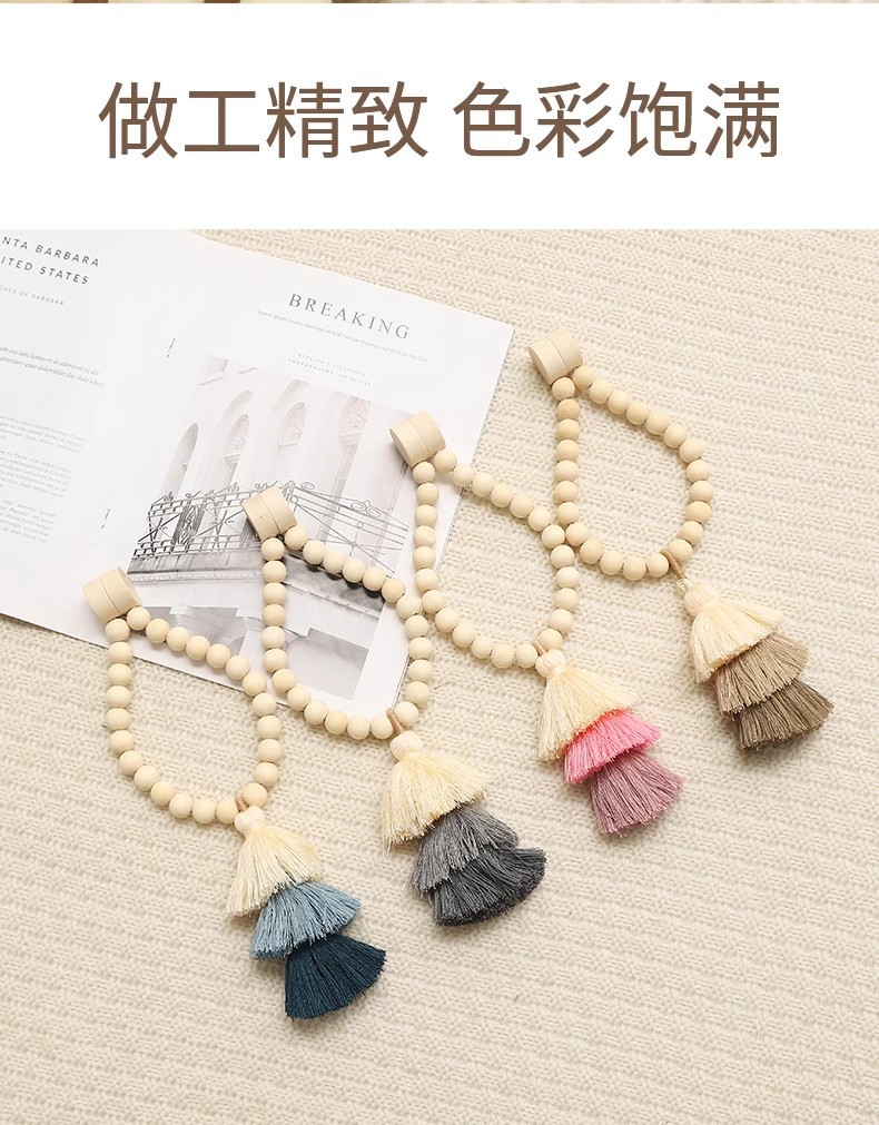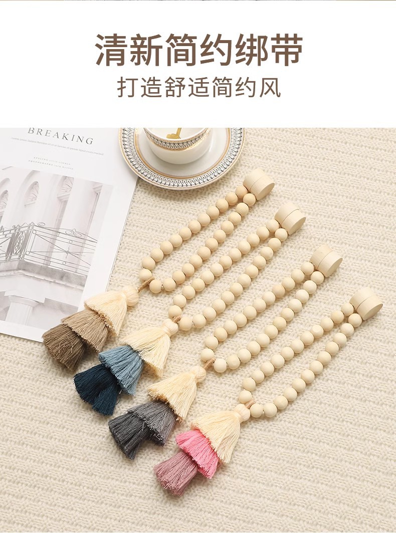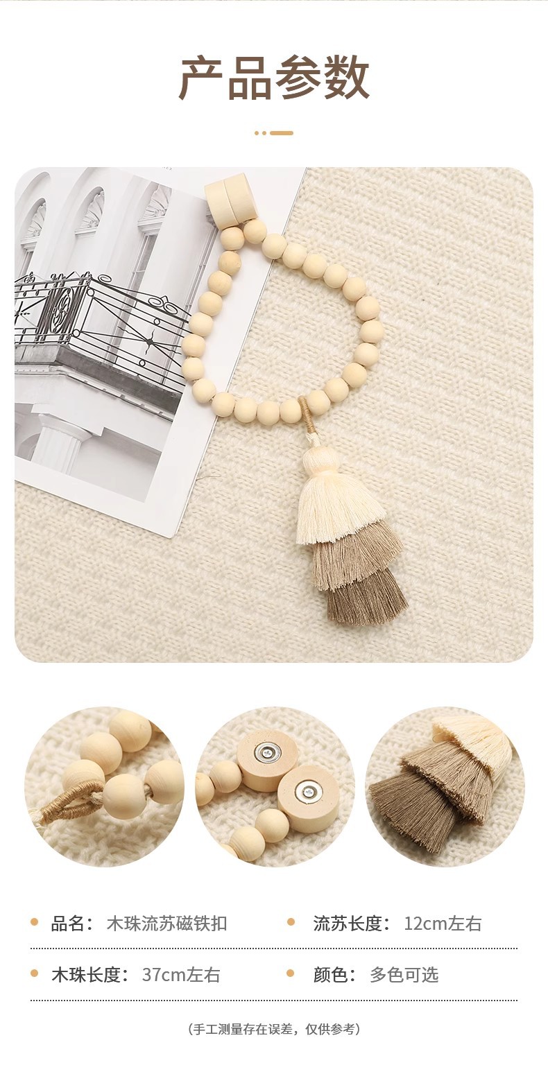 INS 윈드 커튼 타이 펀치 프리 수제 마그네틱 나무 공 타이 벨트 커튼 쥬얼리 스토리지 로프 타이 로프 페어스토어 가기