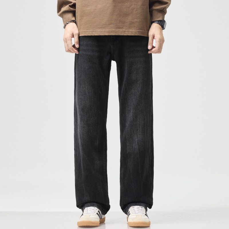 Muqiu 남성복 | 2025 가을 겨울 신상 블랙 꽃무늬 워싱 청바지 남성 아메리칸 하이 스트리트 스트레이트 롱 팬츠스토어 가기