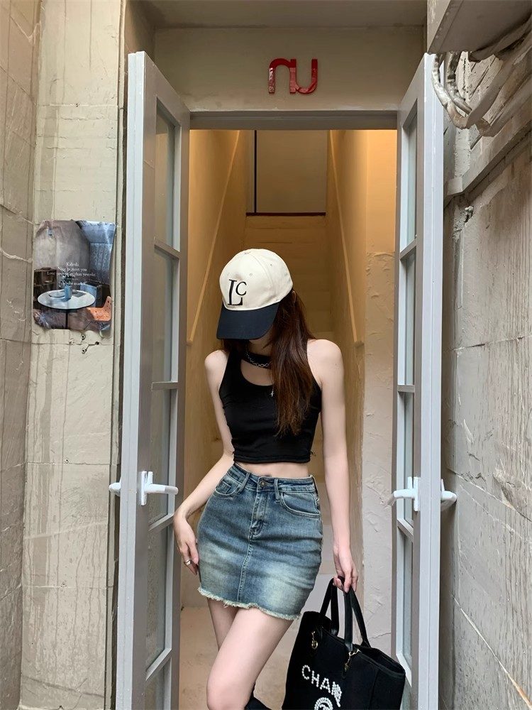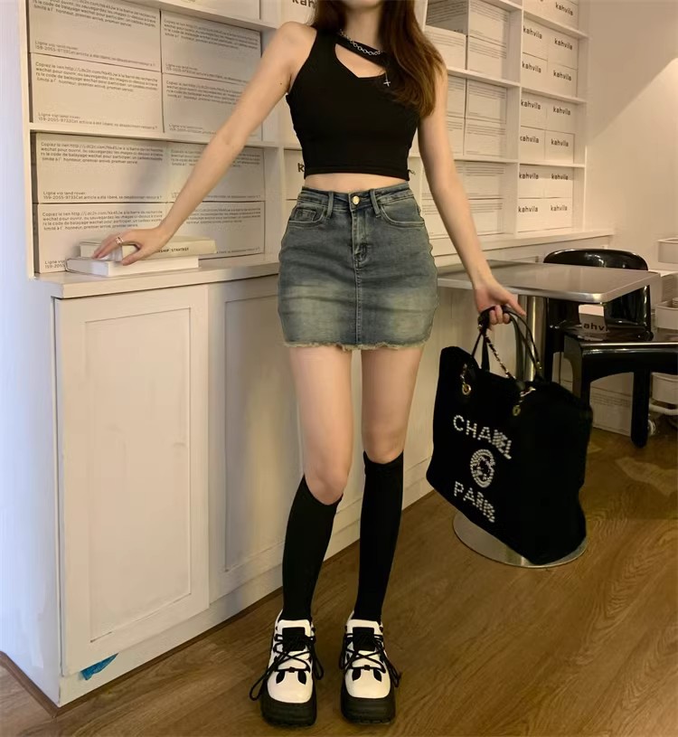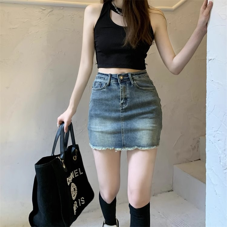 러스트 데님 엉덩이 치마 타이트 스커트 여성 여름 섹시한 높은 허리 스트레치 슬리밍 스파이스 걸 A-라인 쇼트 스커트스토어 가기