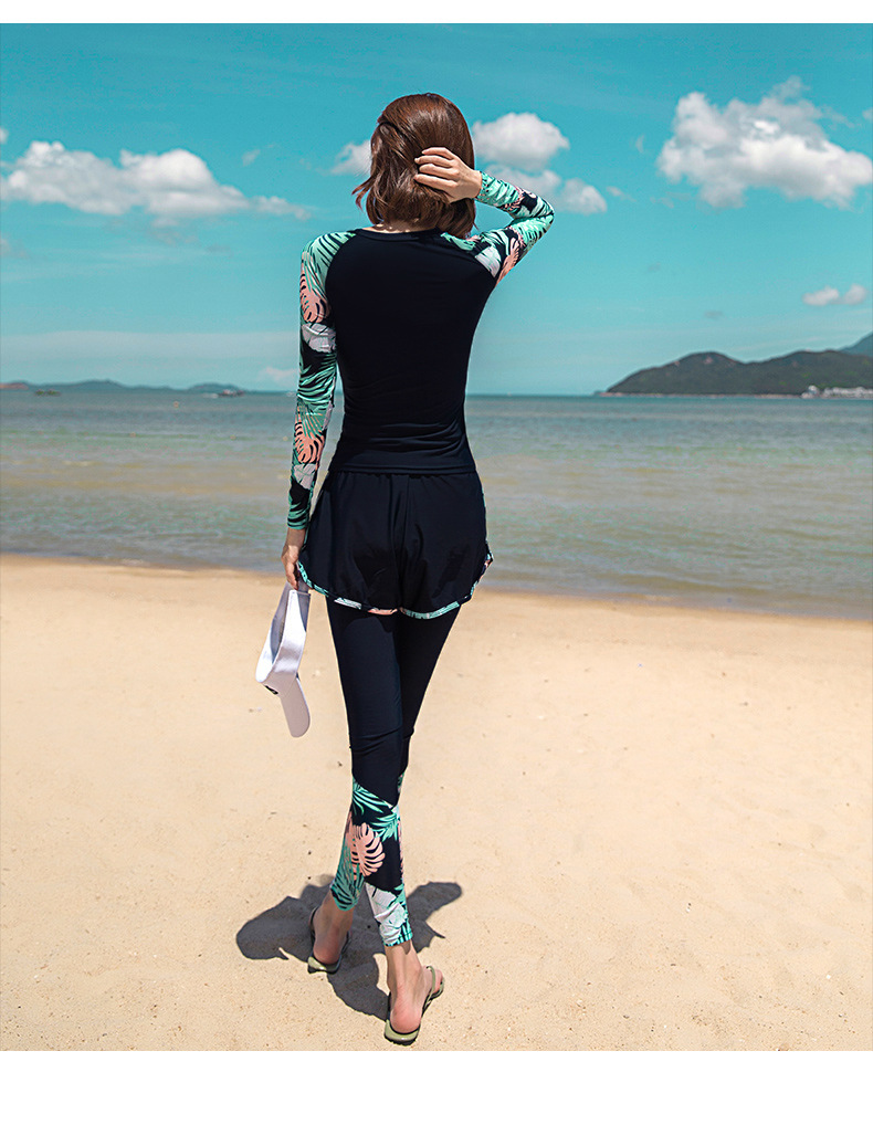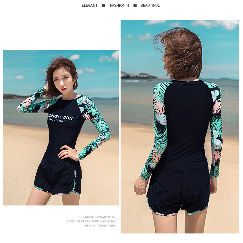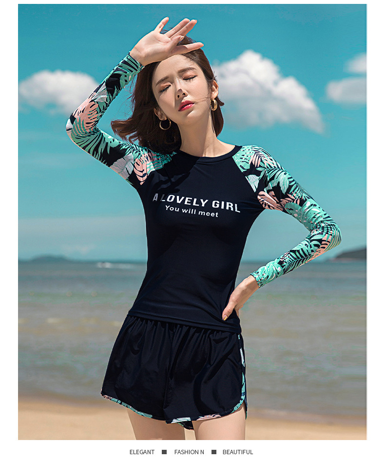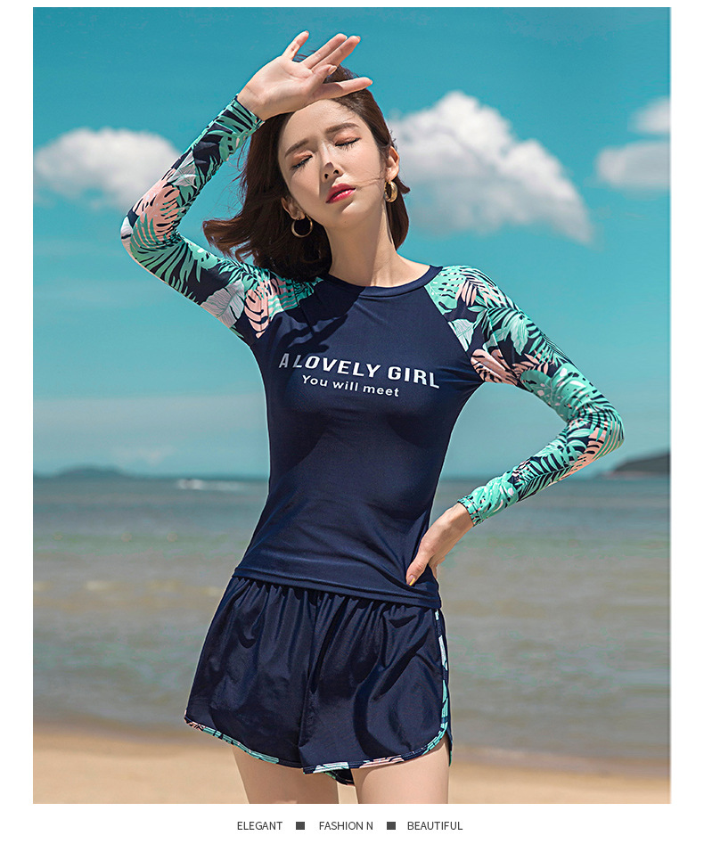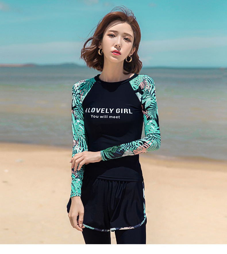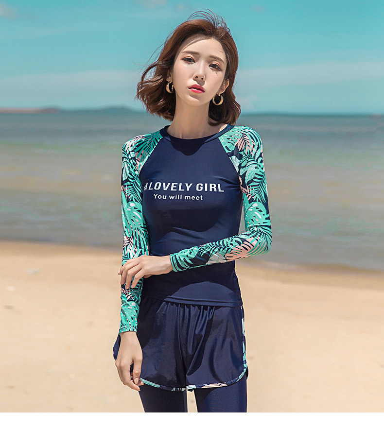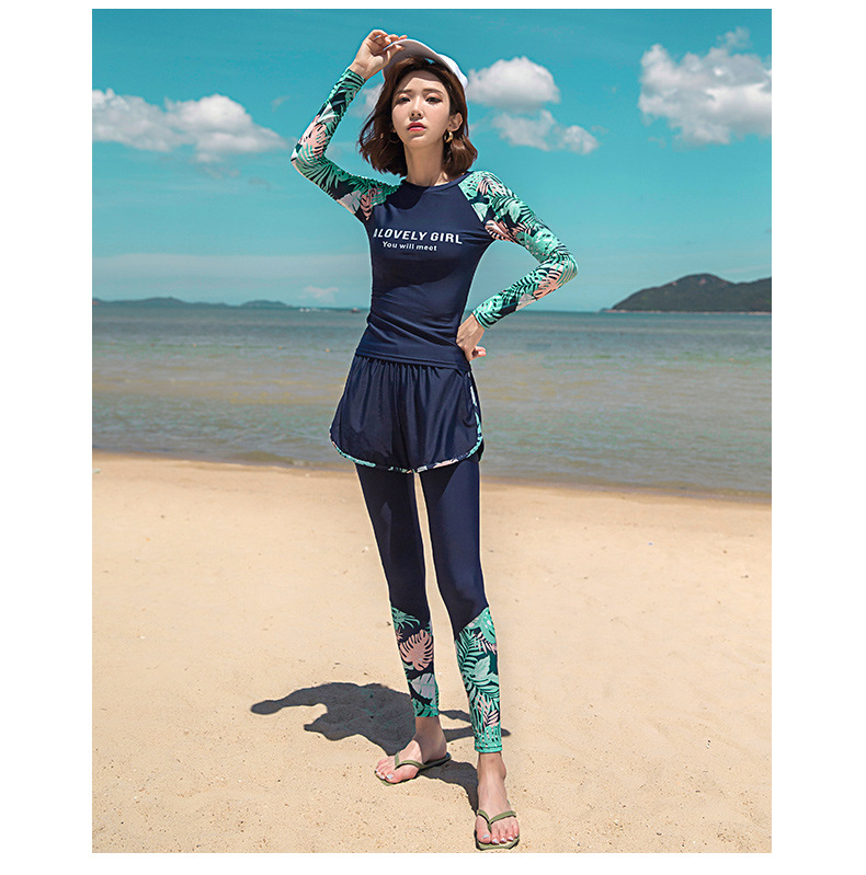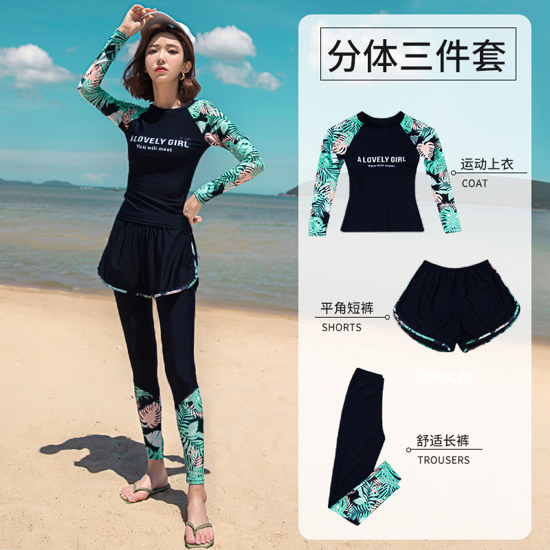 분할 수영복 여성 한국 국경 폭발 보수적 인 긴팔 바지 3 종 세트 슬리밍 배를 덮는 다이빙 온천 서핑스토어 가기