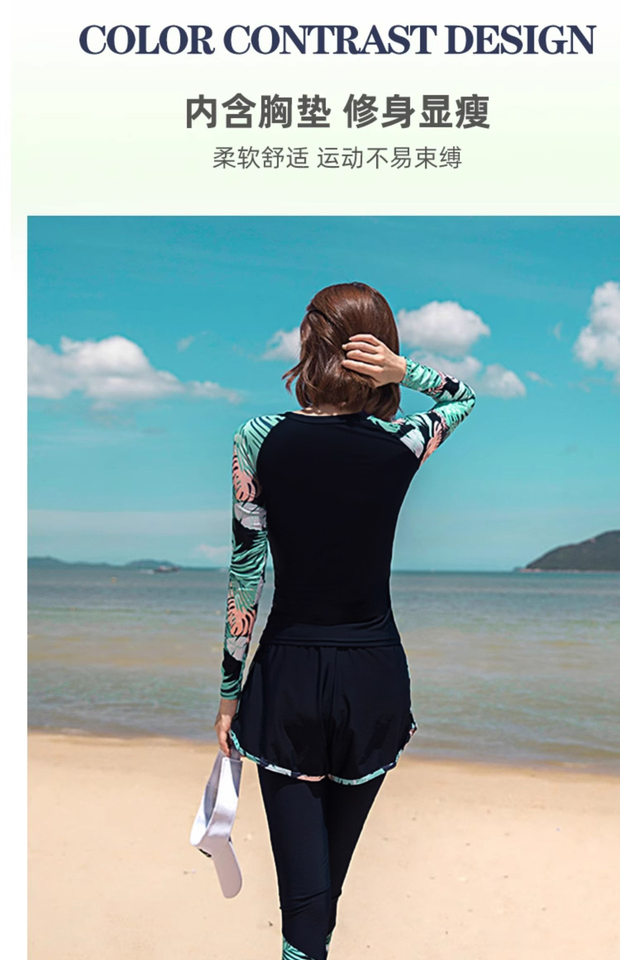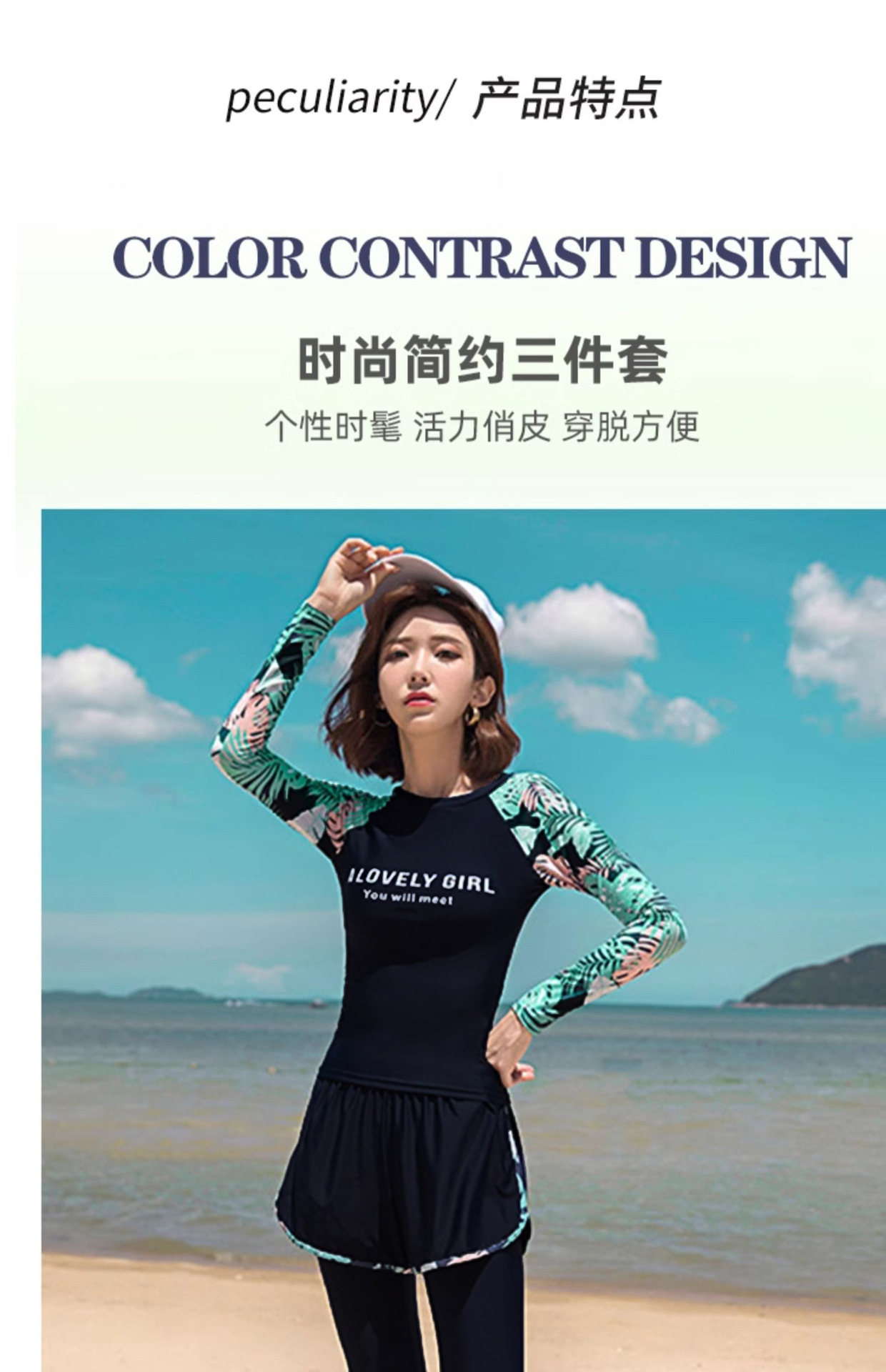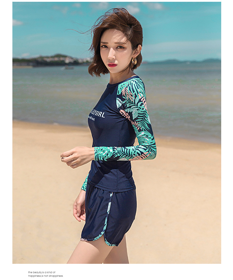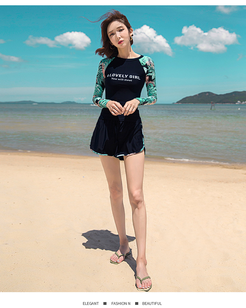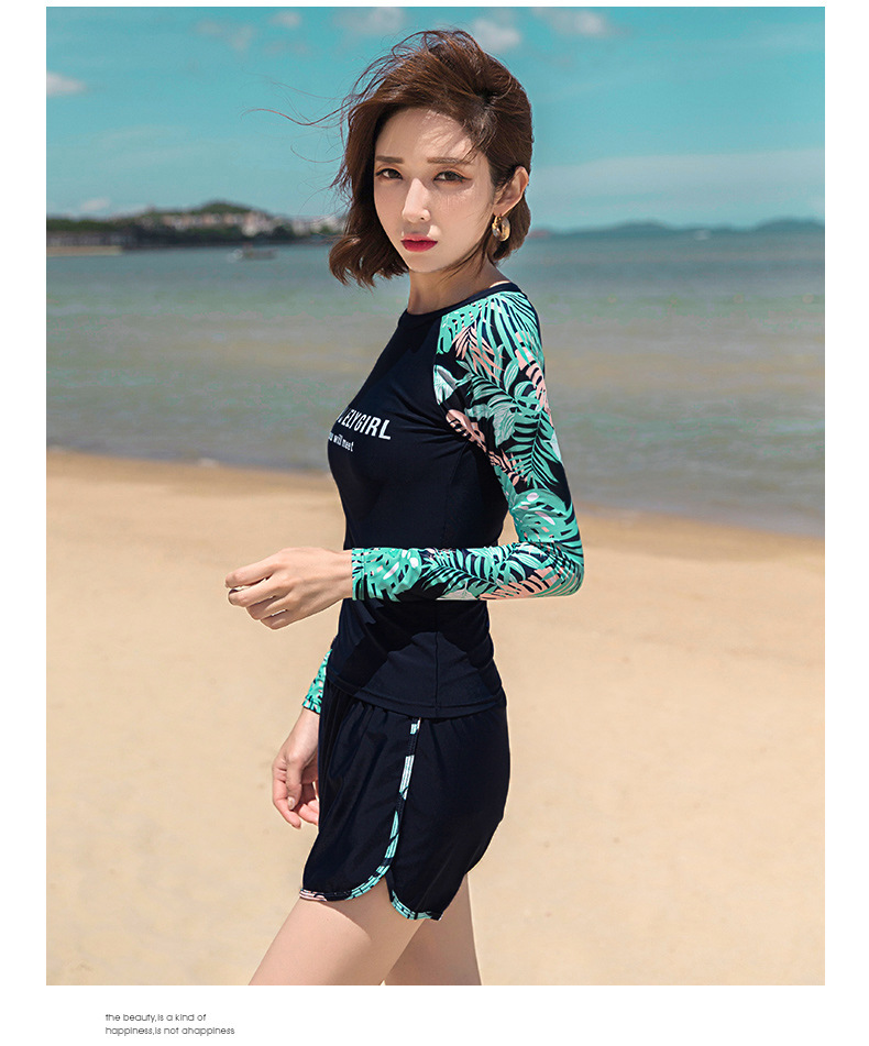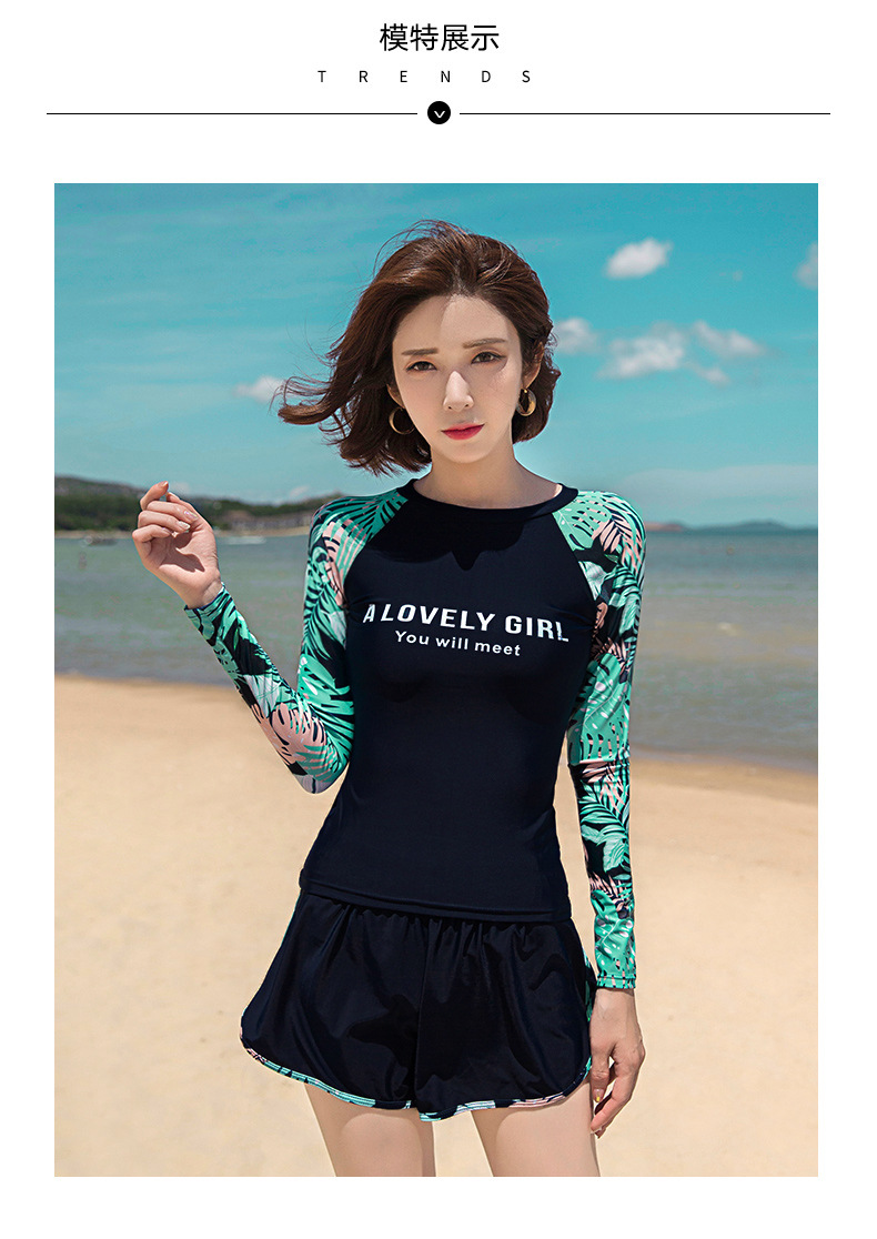 분할 수영복 여성 한국 국경 폭발 보수적 인 긴팔 바지 3 종 세트 슬리밍 배를 덮는 다이빙 온천 서핑스토어 가기