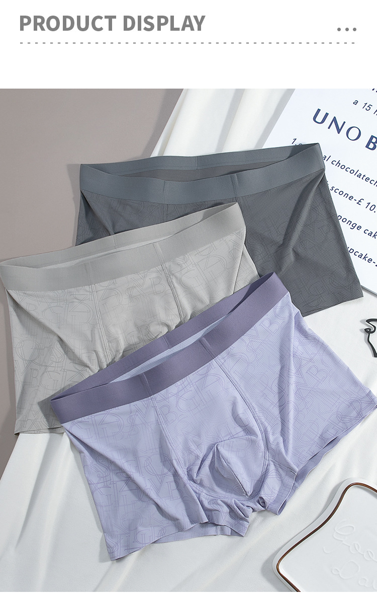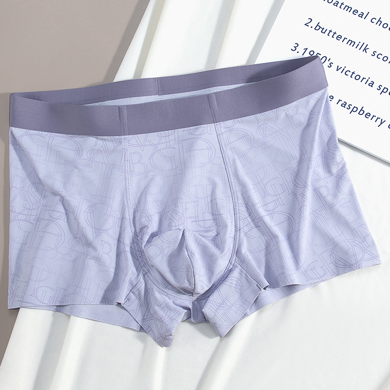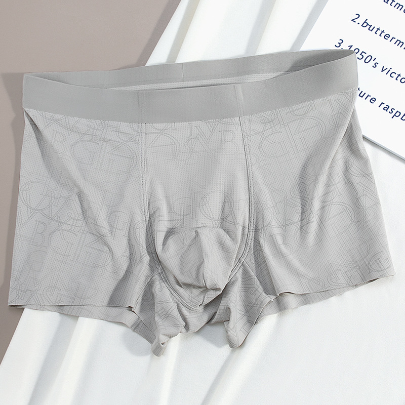 원활한 아이스 실크 남성 속옷 여름 통기성 메쉬 인쇄 새 2024 소년 복서 반바지 헤드 복서